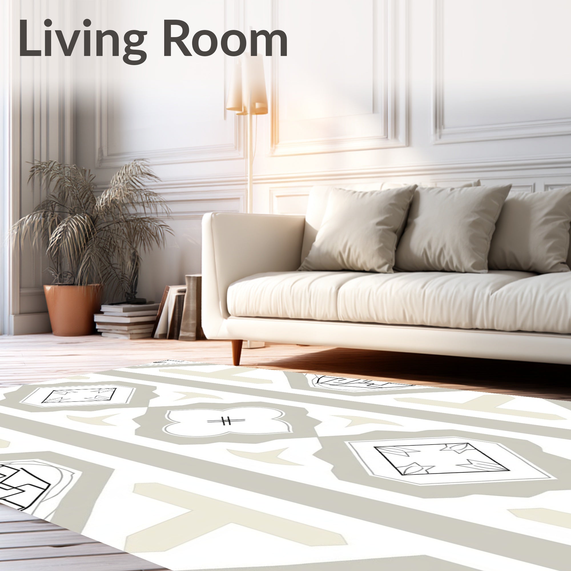 Flatwoven High Traffic Area Rug, Art Medallion with Crisp Neutral Contrasts, Non Slip, Stain Resistant, Washable Area Rugs for Living Room, Bedroom (White) Overview: