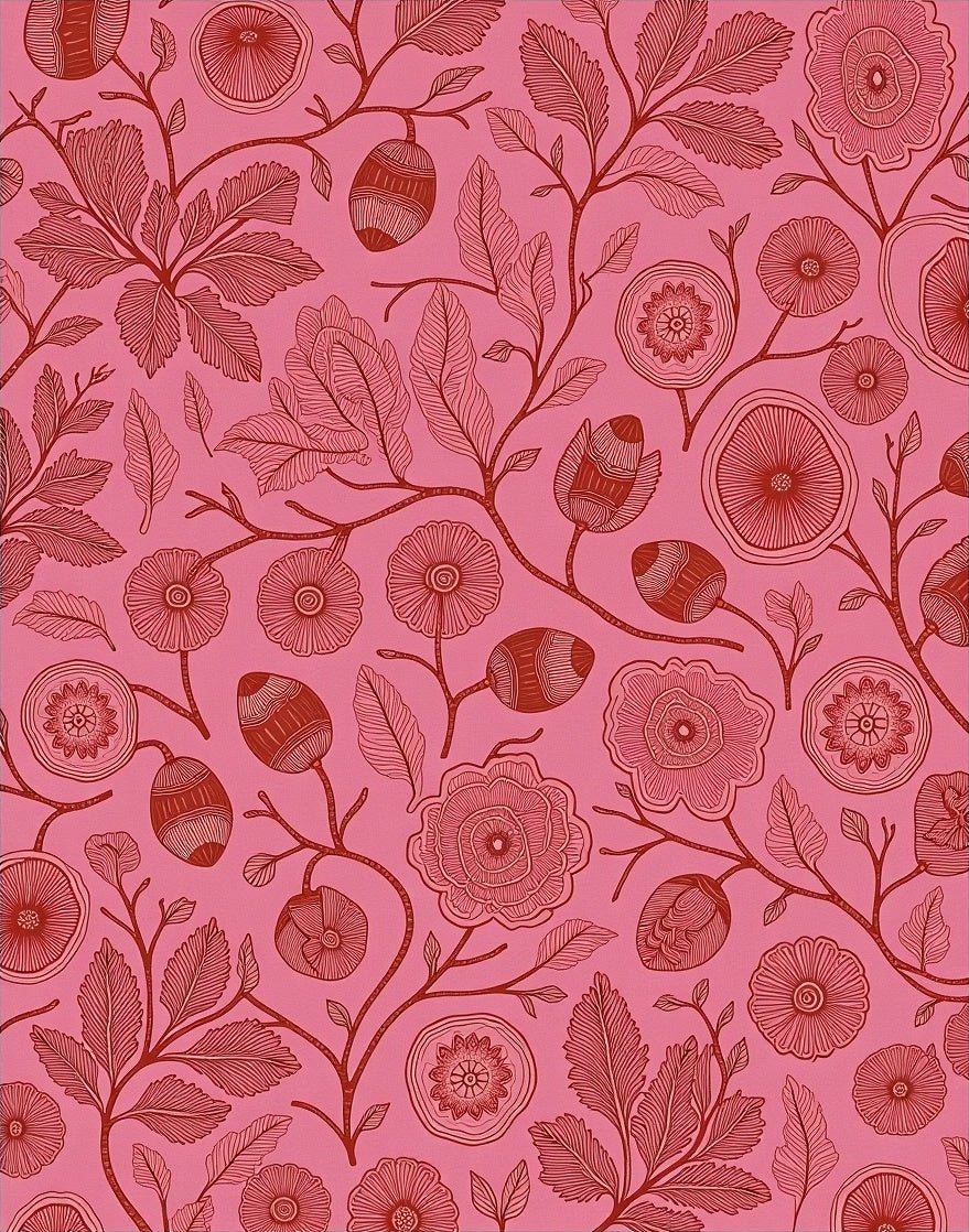 Art Nouveau Forest Canopy with Flourishing Acorn Details(Pink)