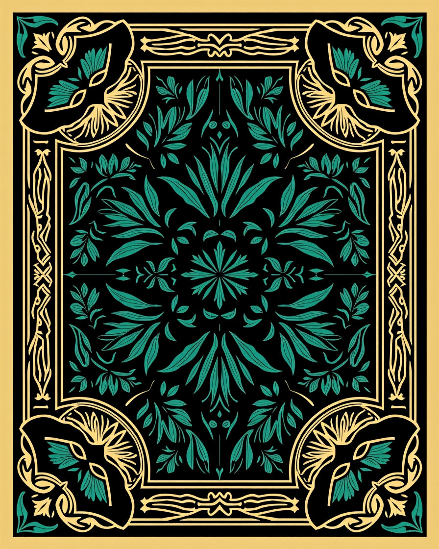 Art Nouveau Inspired Botanical Elegance with Moody Leaf Motifs(Black)