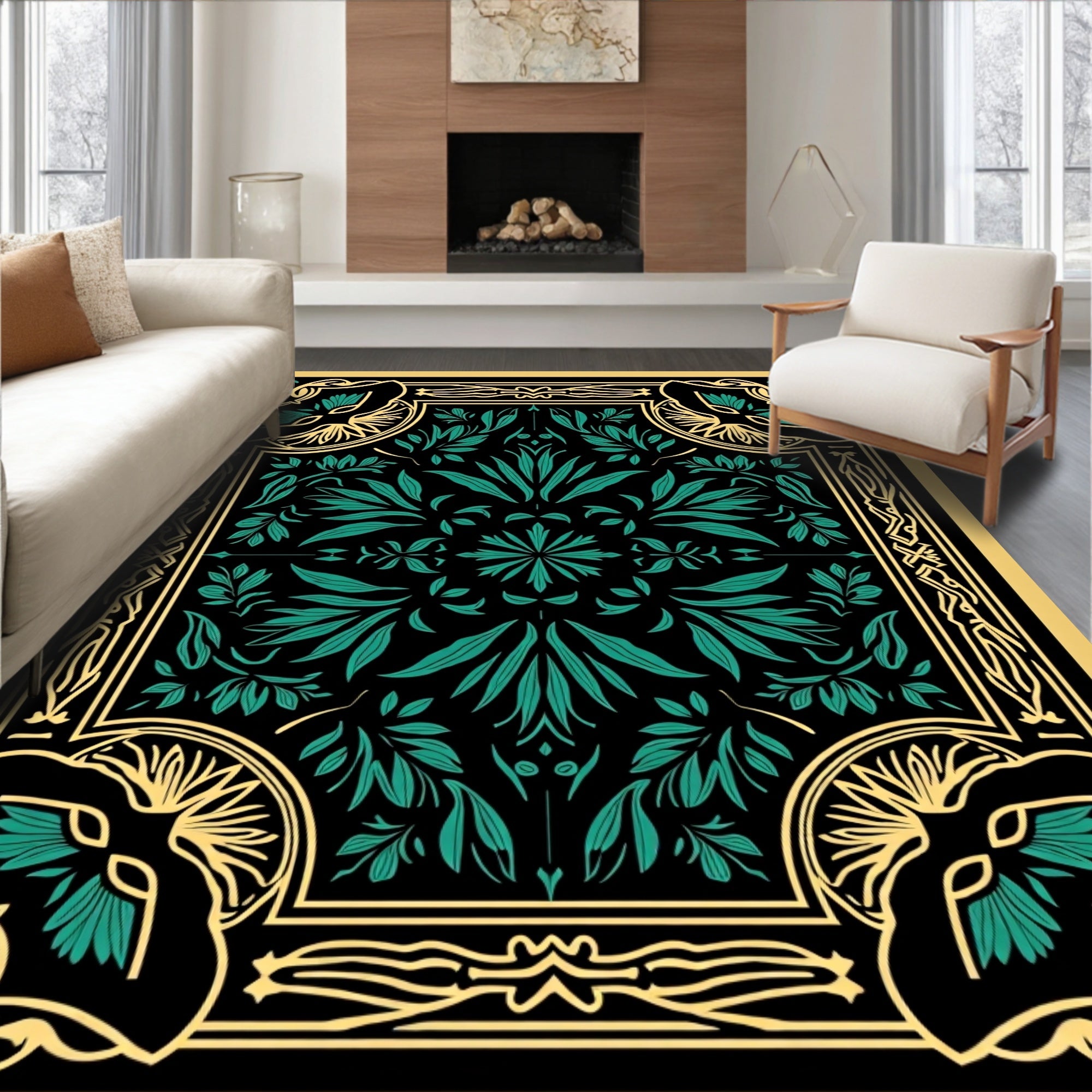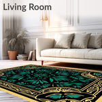 Flatwoven High Traffic Area Rug, Art Nouveau Inspired Botanical Elegance with Moody Leaf Motifs, Non Slip, Stain Resistant, Washable Area Rugs for Living Room, Bedroom (Black) Overview: