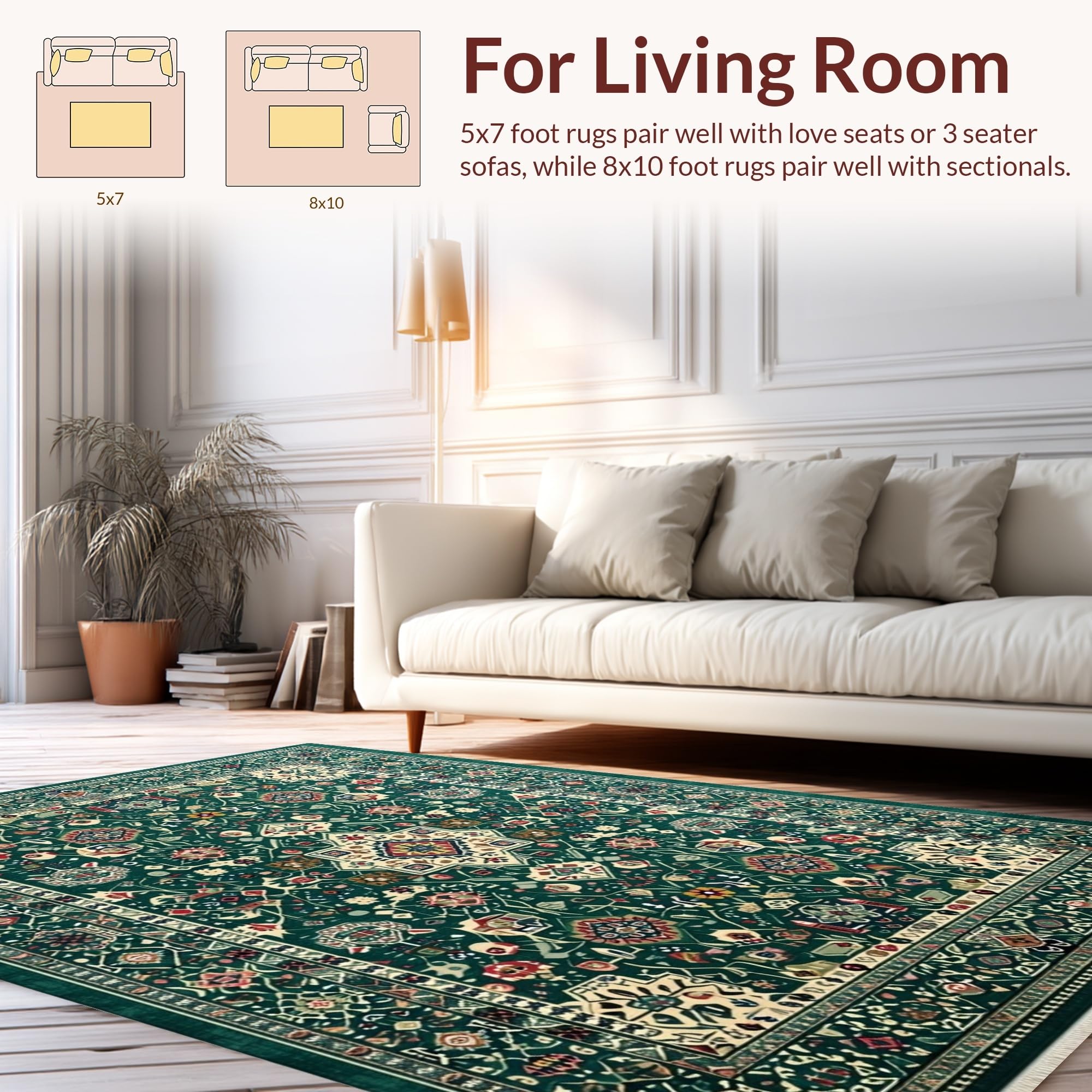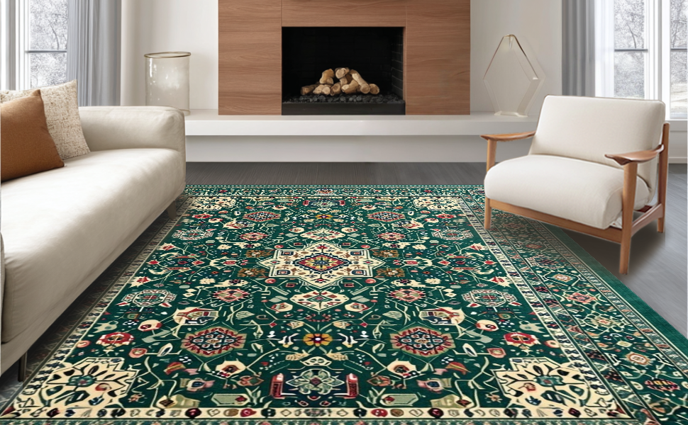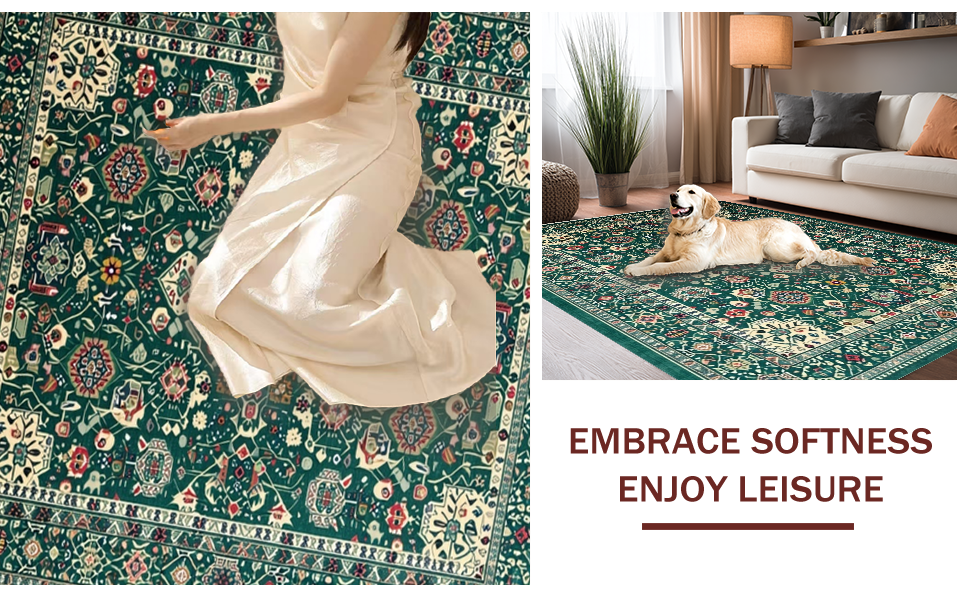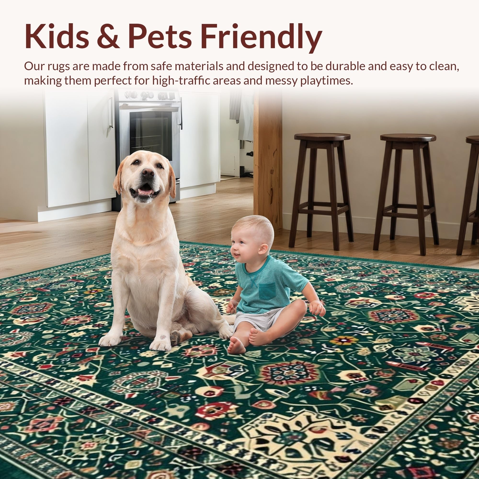 Ultra Soft Area Rug, Non Slip, Stain Resistant, Washable Area Rugs for Living Room, Bedroom, Artful Abstract Green Palette(Green) Overview: