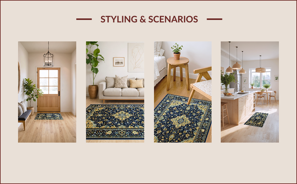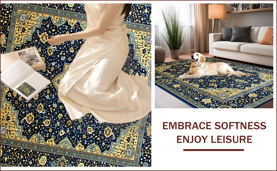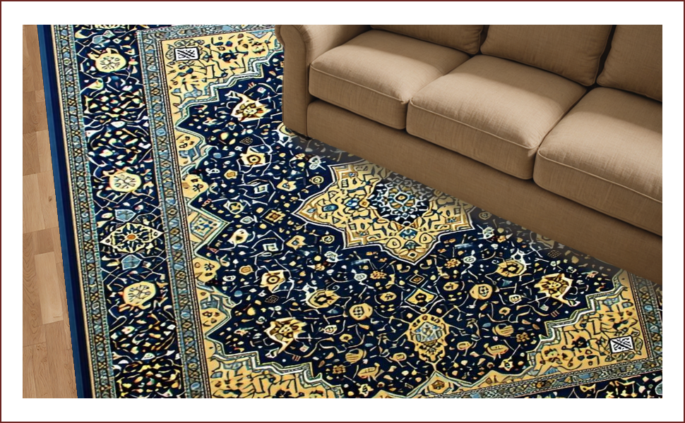 Ultra Soft Area Rug, Non Slip, Stain Resistant, Washable Area Rugs for Living Room, Bedroom, Artful Blue Tiled Elegance(Blue) Overview: