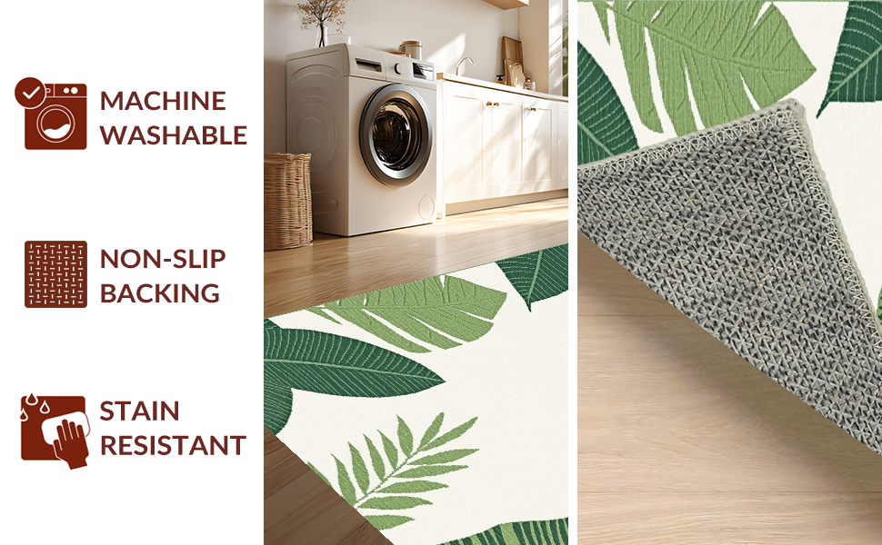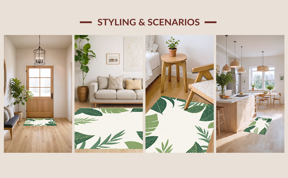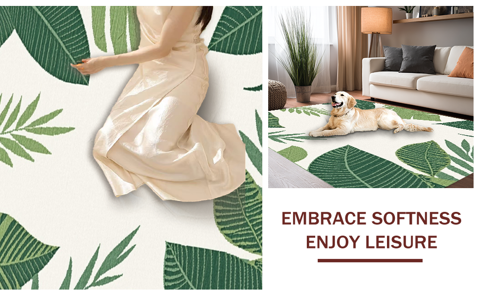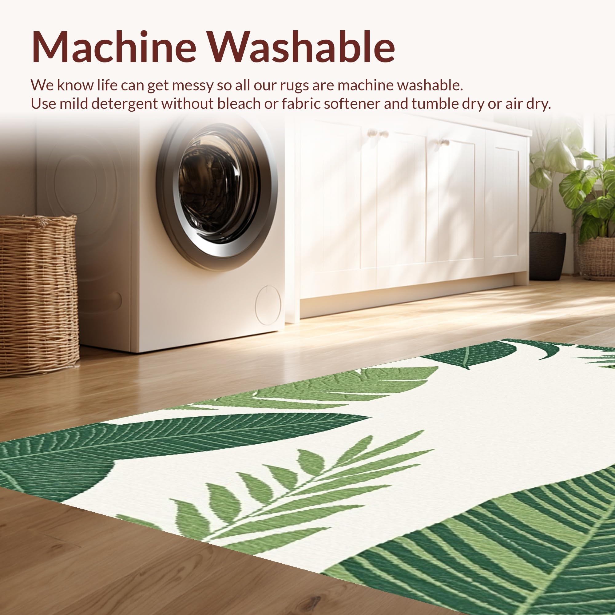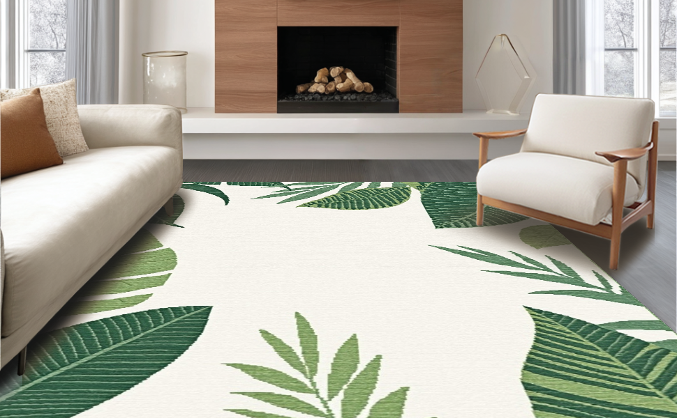 Ultra Soft Area Rug, Non Slip, Stain Resistant, Washable Area Rugs for Living Room, Bedroom, Artful Botanical Leaf Arrangement(Green) Overview: