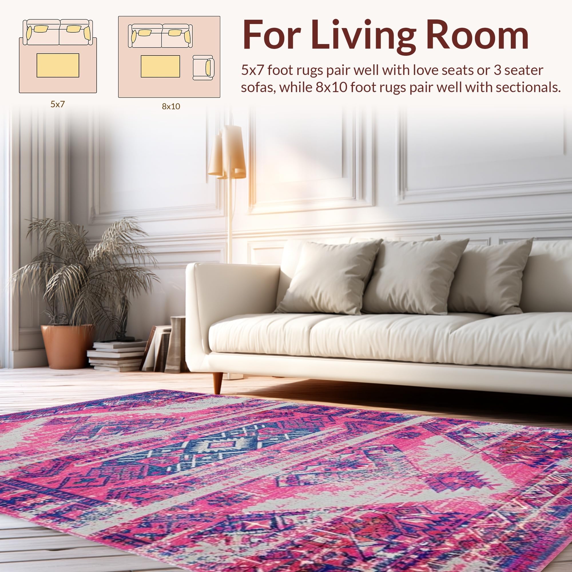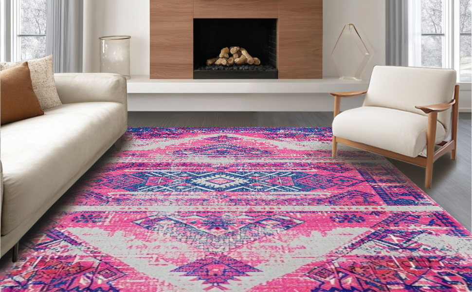 Ultra Soft Area Rug, Non Slip, Stain Resistant, Washable Area Rugs for Living Room, Bedroom, Artful Bright Trellis Composition(Pink) Overview: