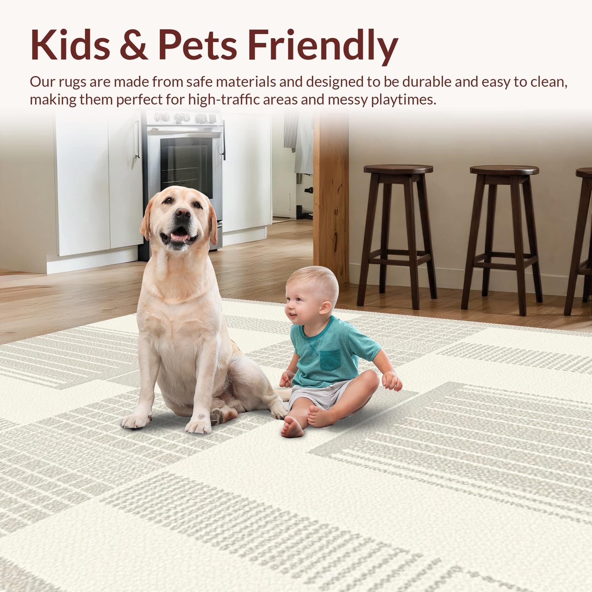 Ultra Soft Area Rug, Non Slip, Stain Resistant, Washable Area Rugs for Living Room, Bedroom, Artful Cream and Ivory Fusion(Beige) Overview: