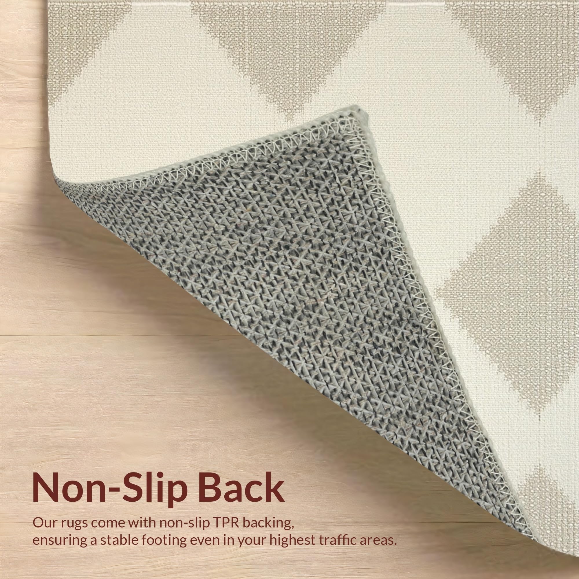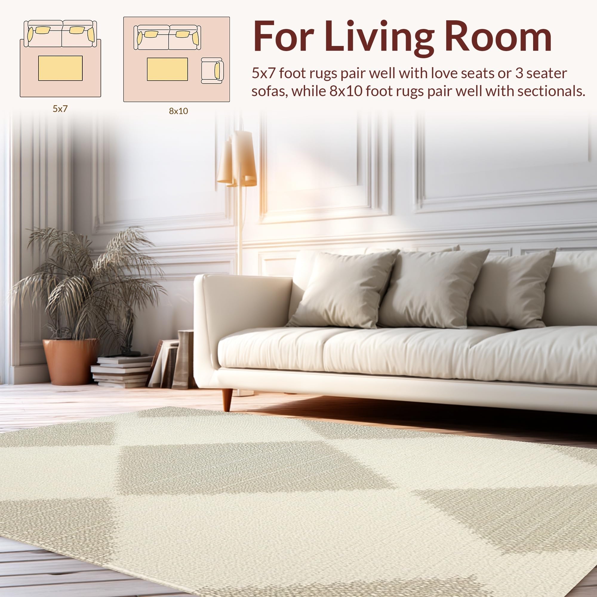 Ultra Soft Area Rug, Non Slip, Stain Resistant, Washable Area Rugs for Living Room, Bedroom, Artful Creamy Abstract Composition(Beige) Overview:
