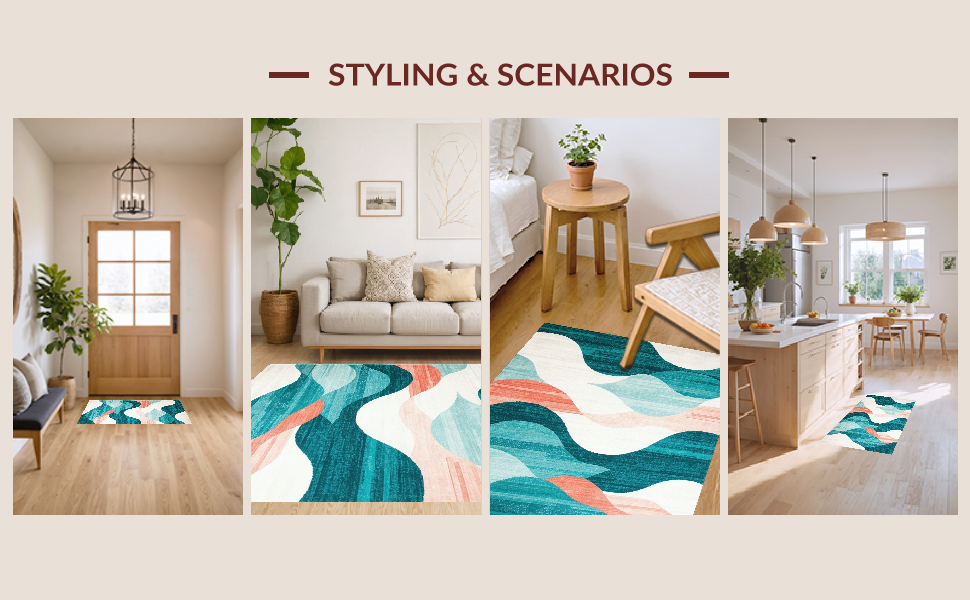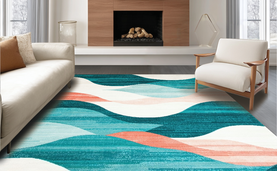 Ultra Soft Area Rug, Non Slip, Stain Resistant, Washable Area Rugs for Living Room, Bedroom, Artful Distressed Colorful Swirls(Blue) Overview: