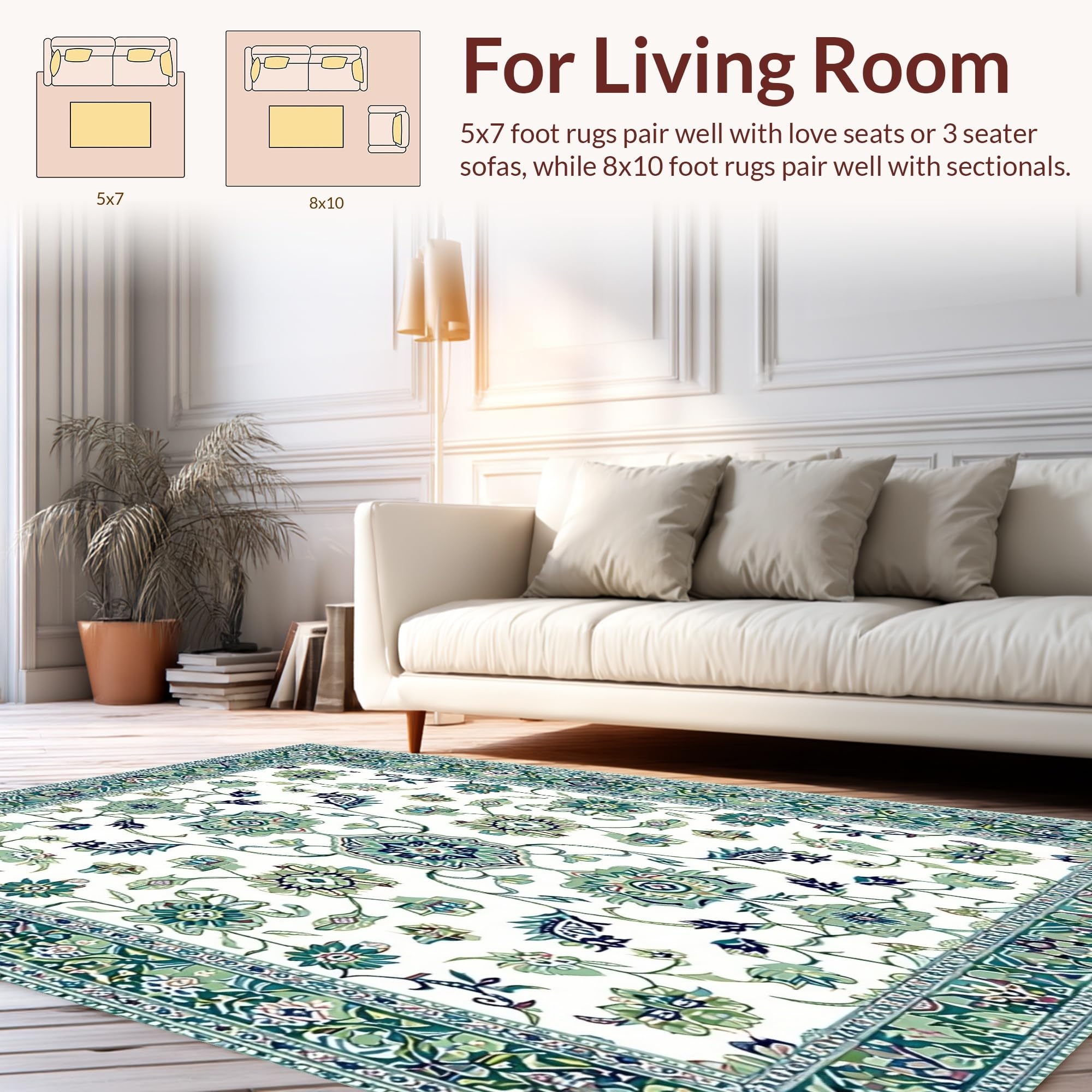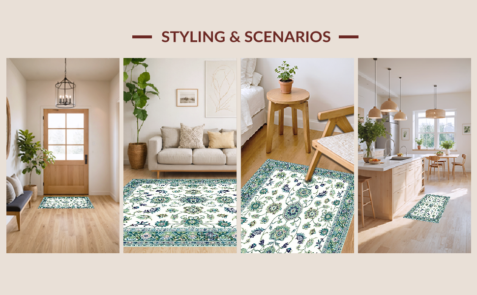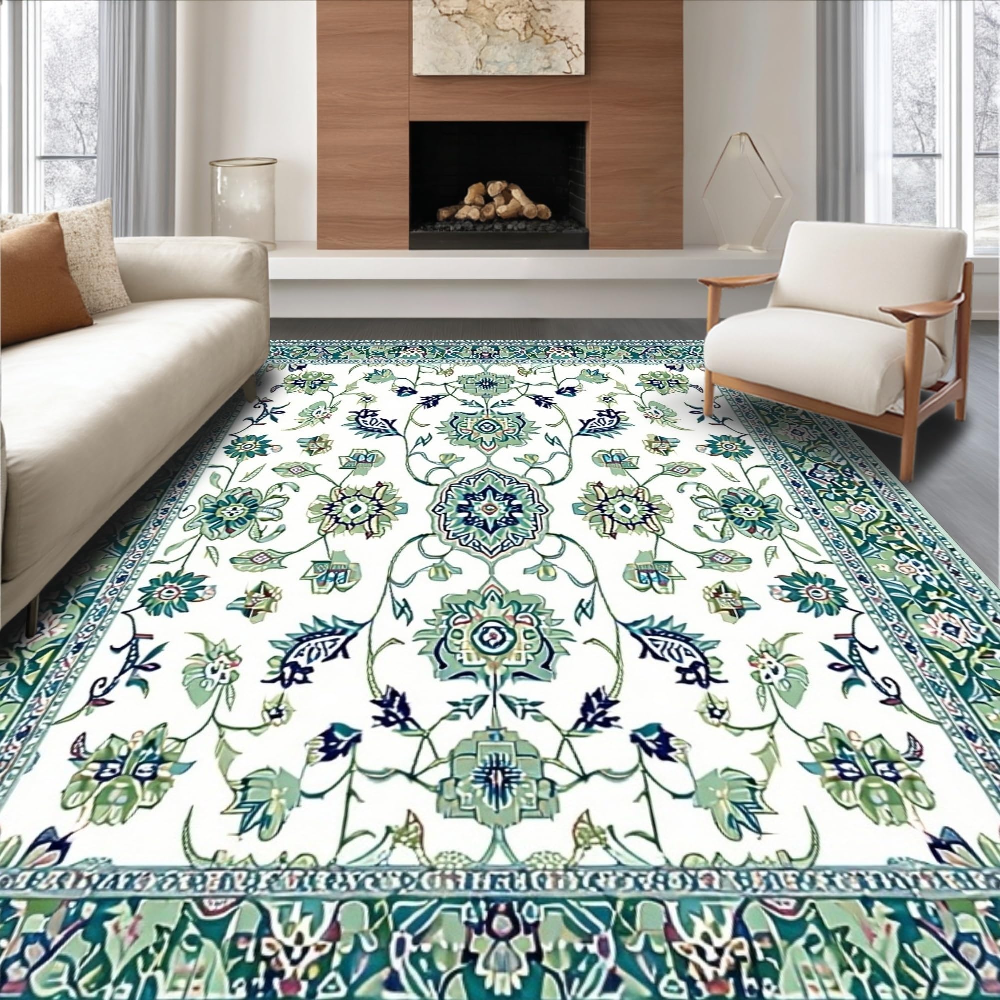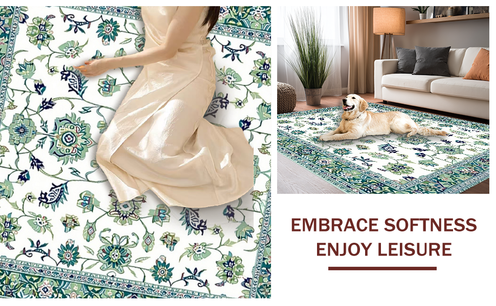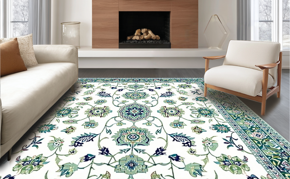 Ultra Soft Area Rug, Non Slip, Stain Resistant, Washable Area Rugs for Living Room, Bedroom, Artful Distressed Floral Display(White) Overview: