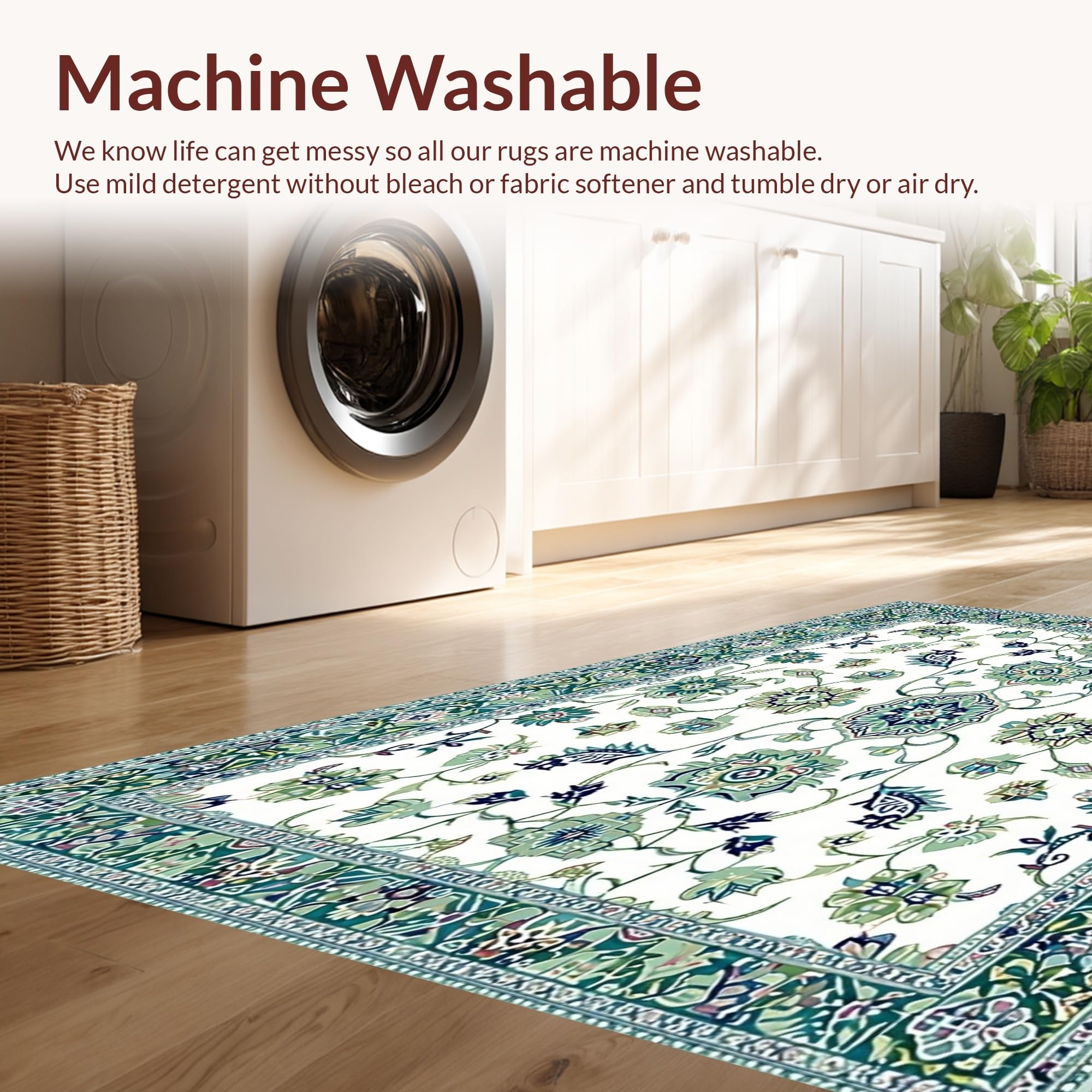 - Machine Washable: Our rugs can be easily thrown in the wash machine.