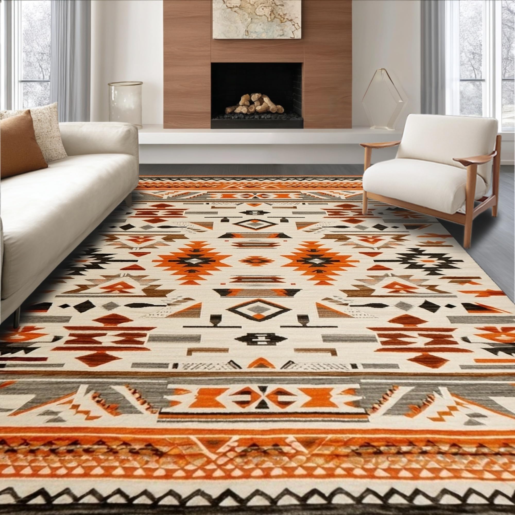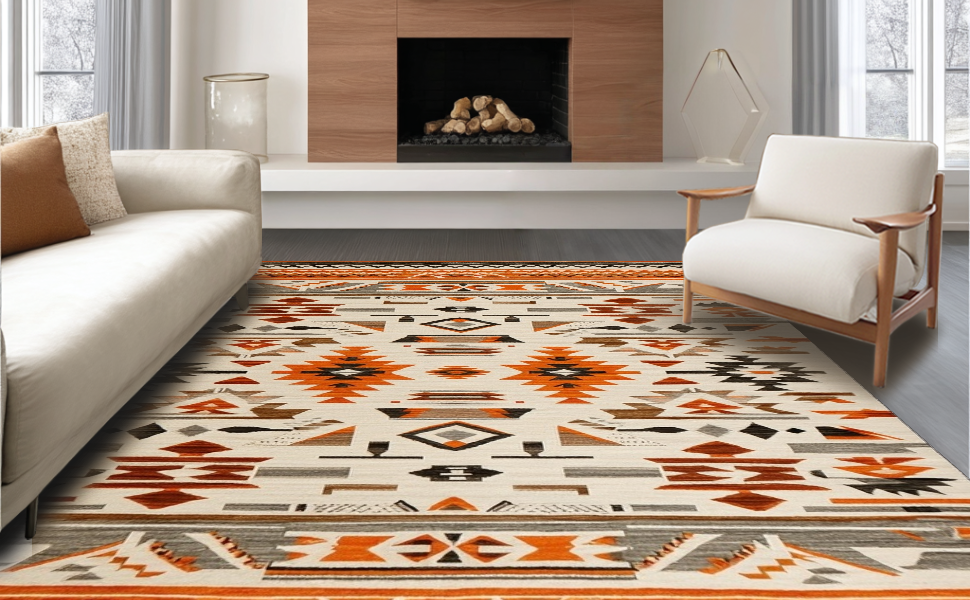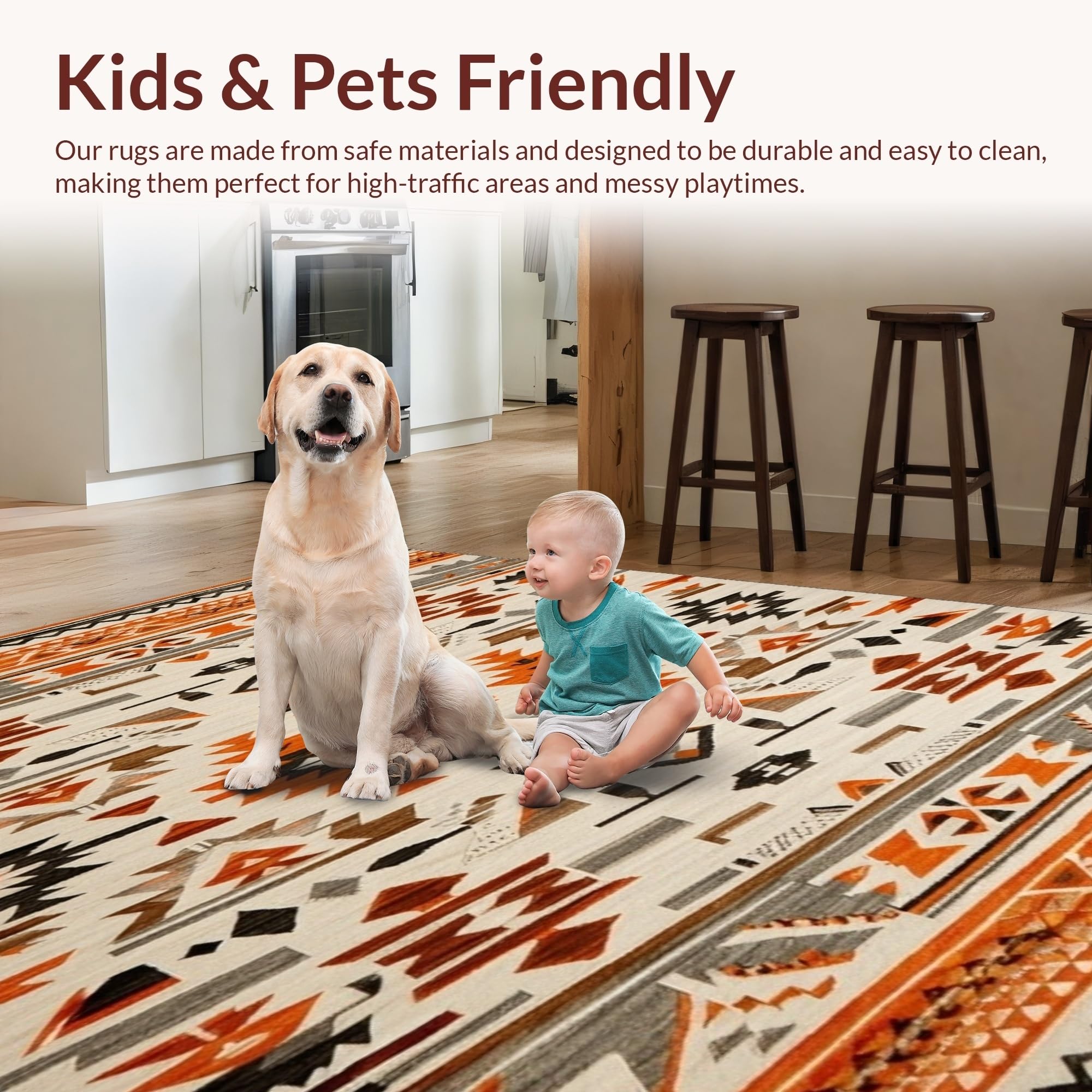 Ultra Soft Area Rug, Non Slip, Stain Resistant, Washable Area Rugs for Living Room, Bedroom, Artful Distressed Geometric Composition(Beige) Overview: