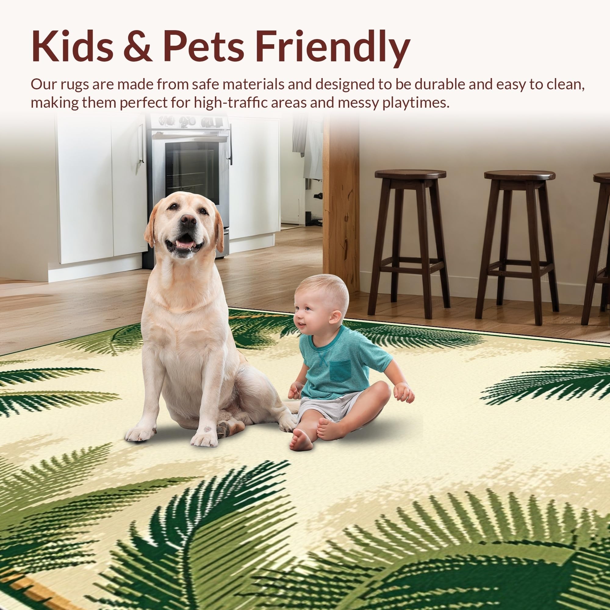 Ultra Soft Area Rug, Non Slip, Stain Resistant, Washable Area Rugs for Living Room, Bedroom, Artful Distressed Jungle Imagery(Beige) Overview: