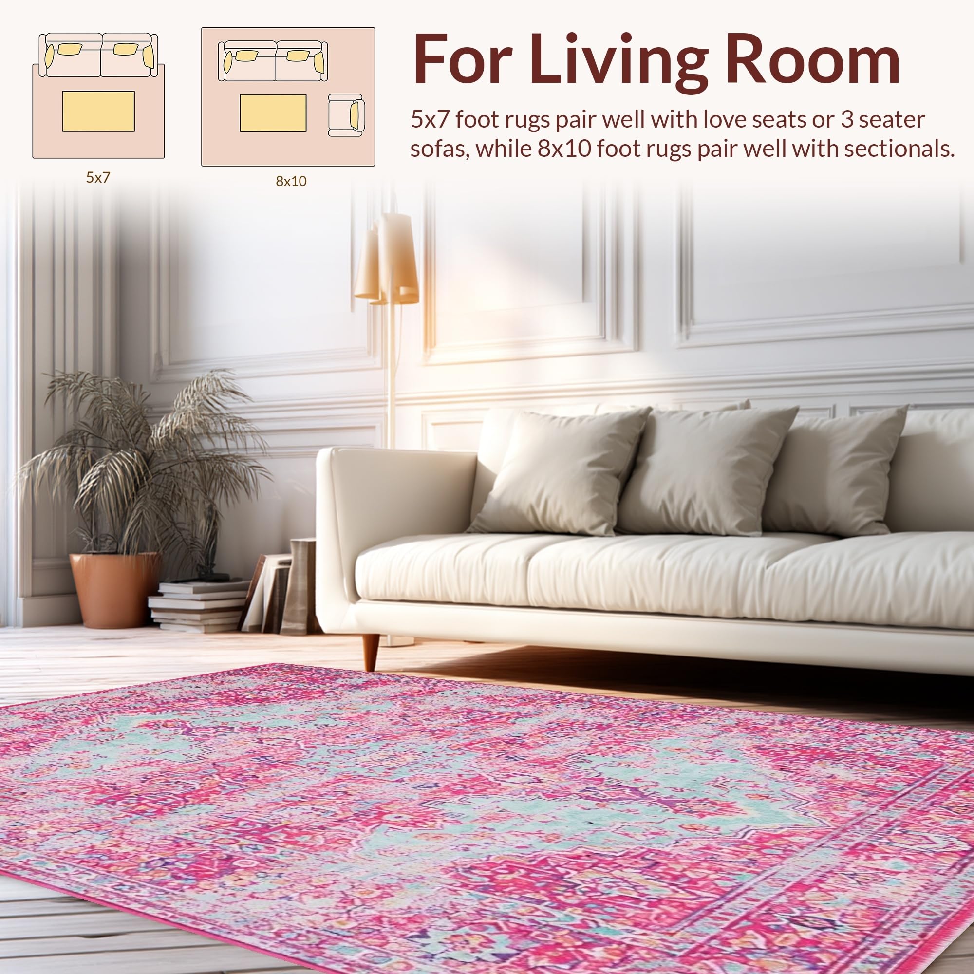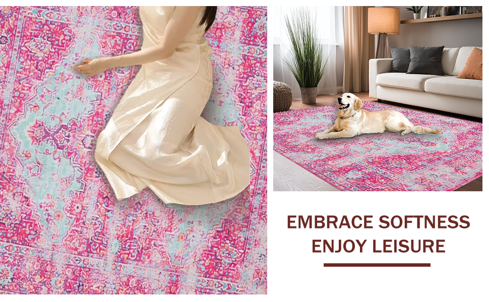 Ultra Soft Area Rug, Non Slip, Stain Resistant, Washable Area Rugs for Living Room, Bedroom, Artful Distressed Soft Color Palette(Pink) Overview: