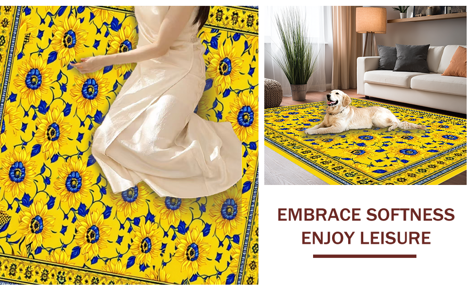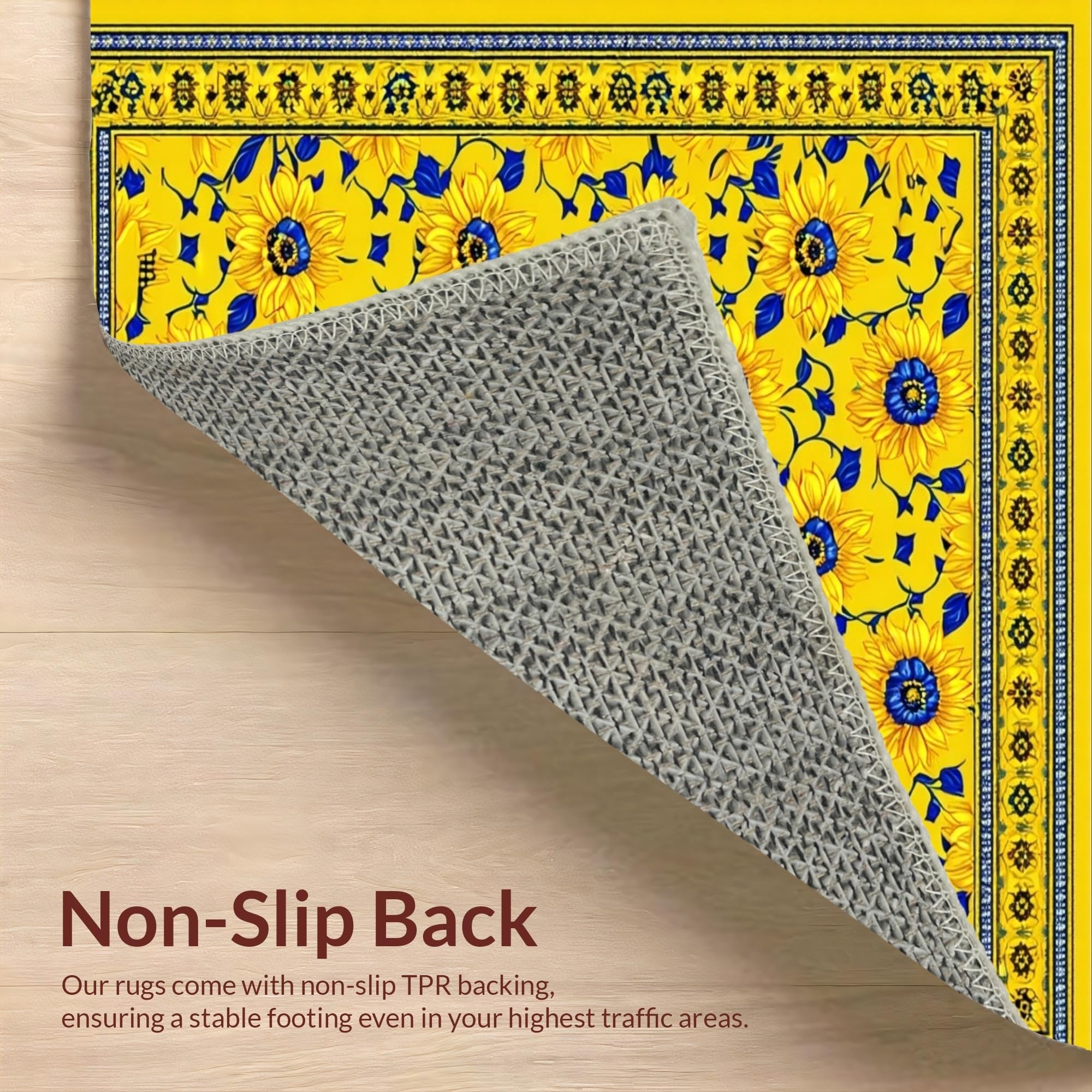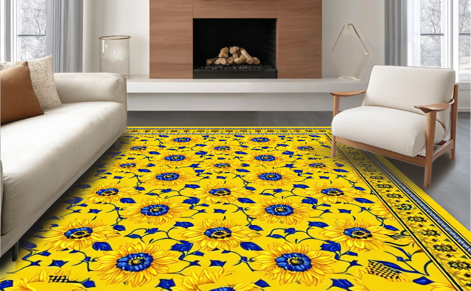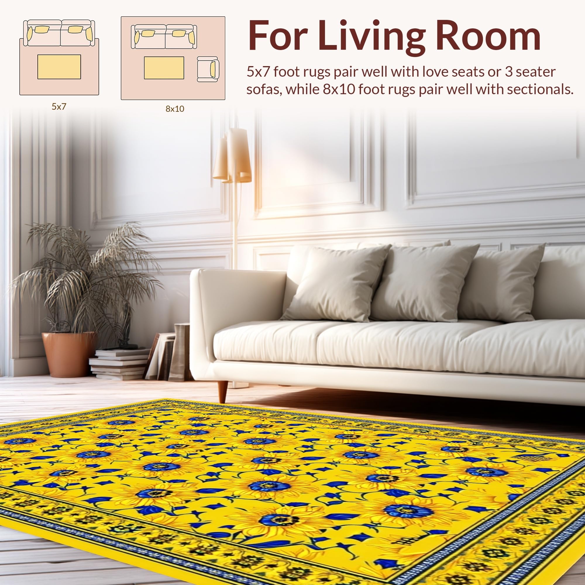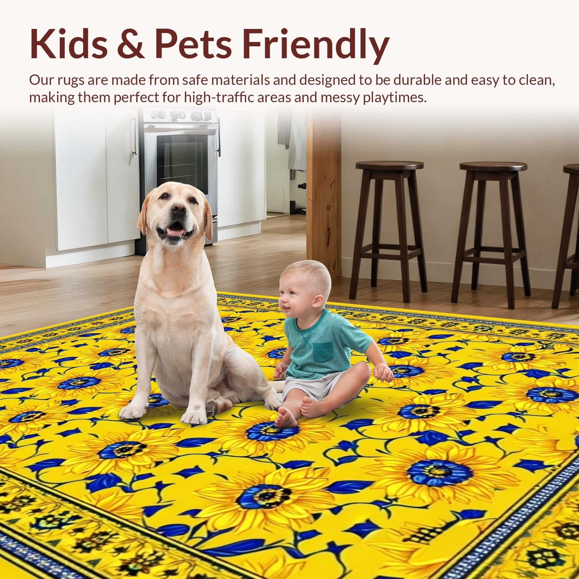 Ultra Soft Area Rug, Non Slip, Stain Resistant, Washable Area Rugs for Living Room, Bedroom, Artful Distressed Sunflower Theme(Yellow) Overview: