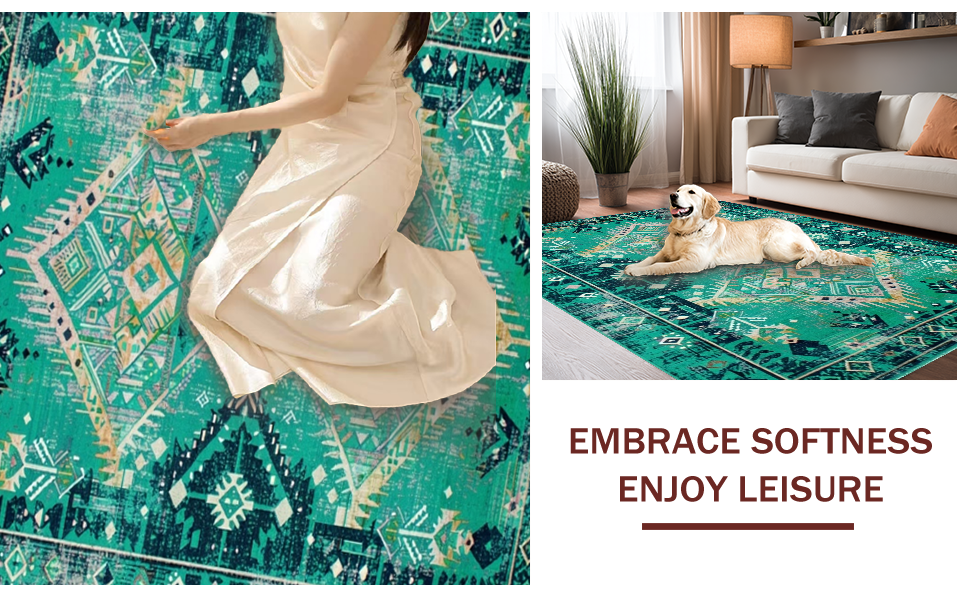 Ultra Soft Area Rug, Non Slip, Stain Resistant, Washable Area Rugs for Living Room, Bedroom, Artful Distressed Turquoise Style(Green) Overview: