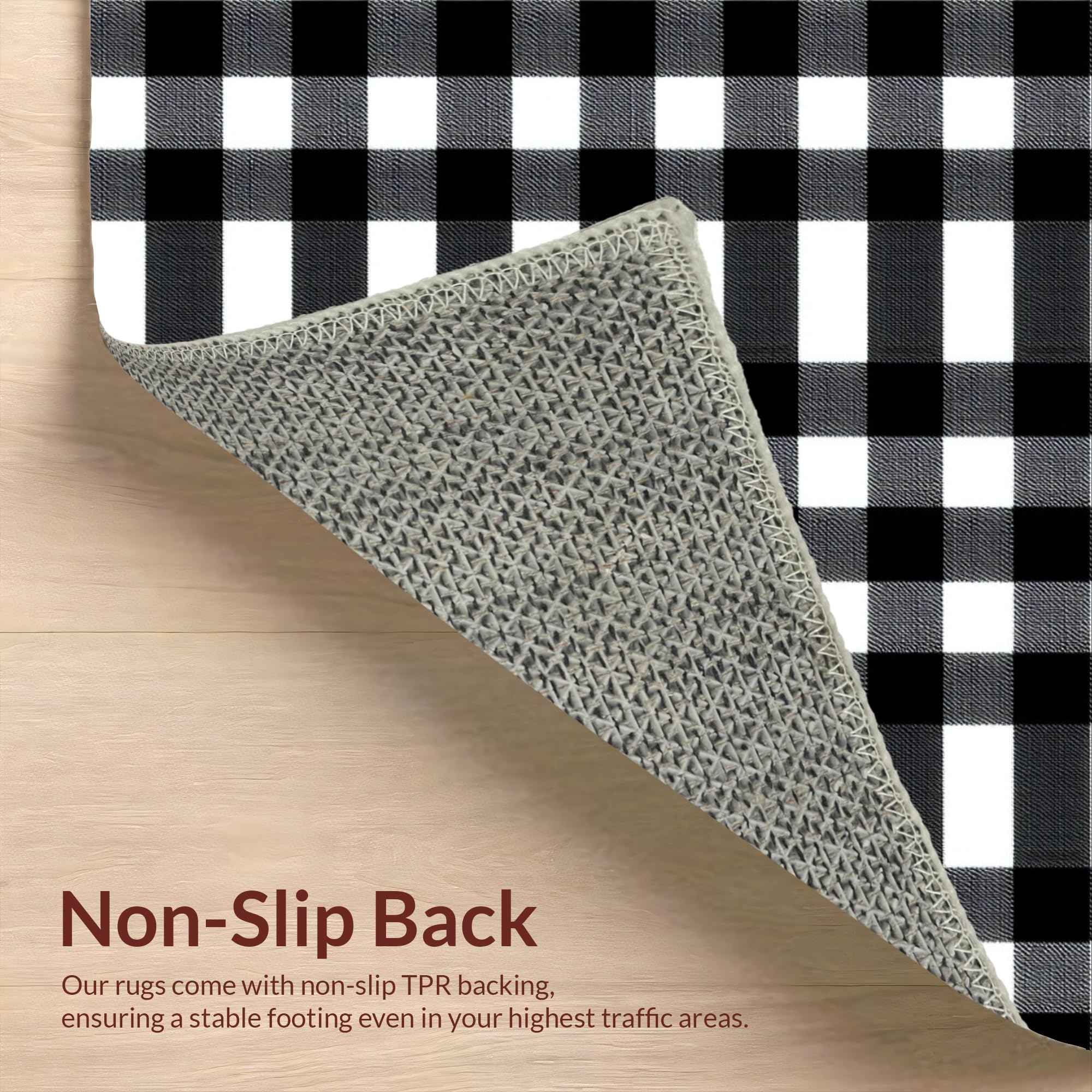Ultra Soft Area Rug, Non Slip, Stain Resistant, Washable Area Rugs for Living Room, Bedroom, Artful Dyed Geometric Contrast Elements(Black) Overview: