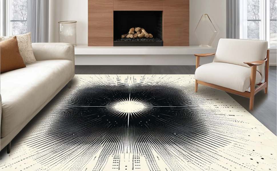 Ultra Soft Area Rug, Non Slip, Stain Resistant, Washable Area Rugs for Living Room, Bedroom, Artful Dynamic Linear Pattern Arrangement(Black) Overview: