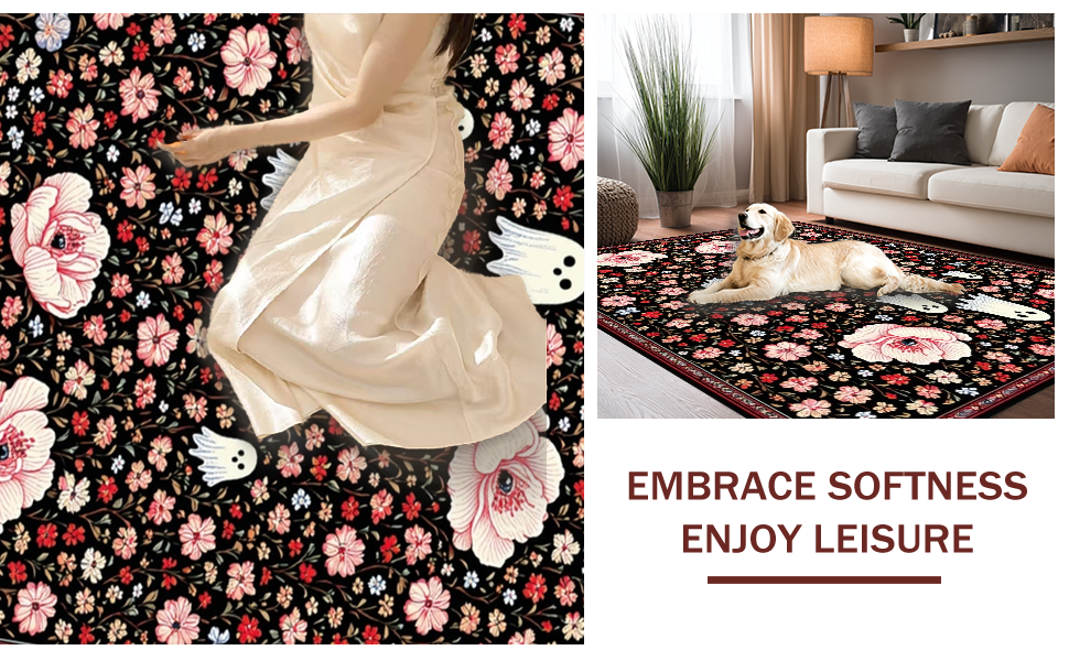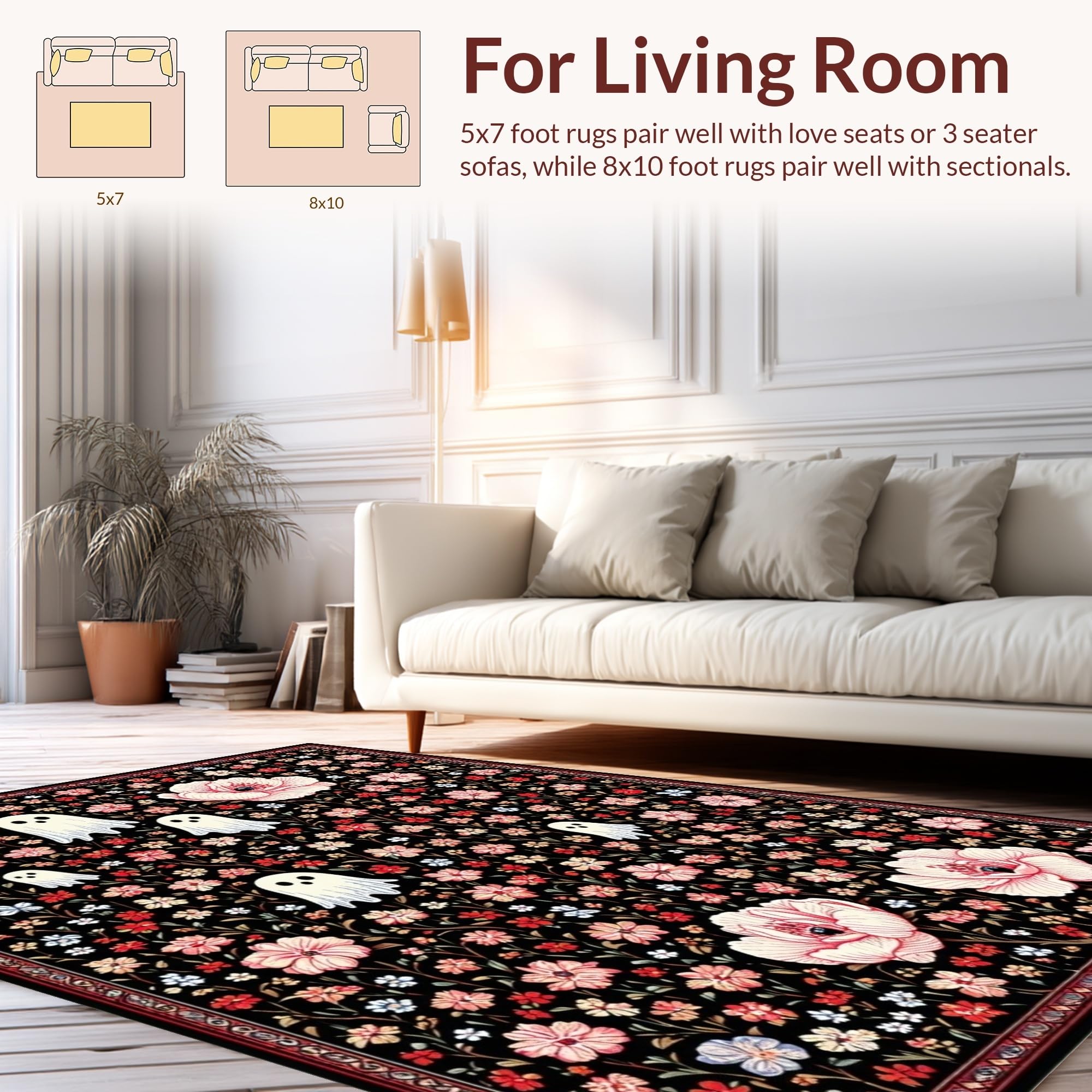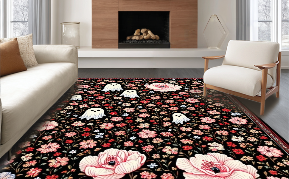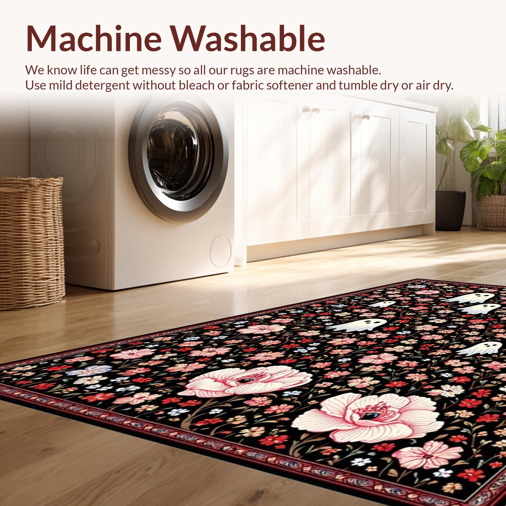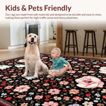 Ultra Soft Area Rug, Non Slip, Stain Resistant, Washable Area Rugs for Living Room, Bedroom, Artful Eccentric Flower Pattern(Black) Overview: