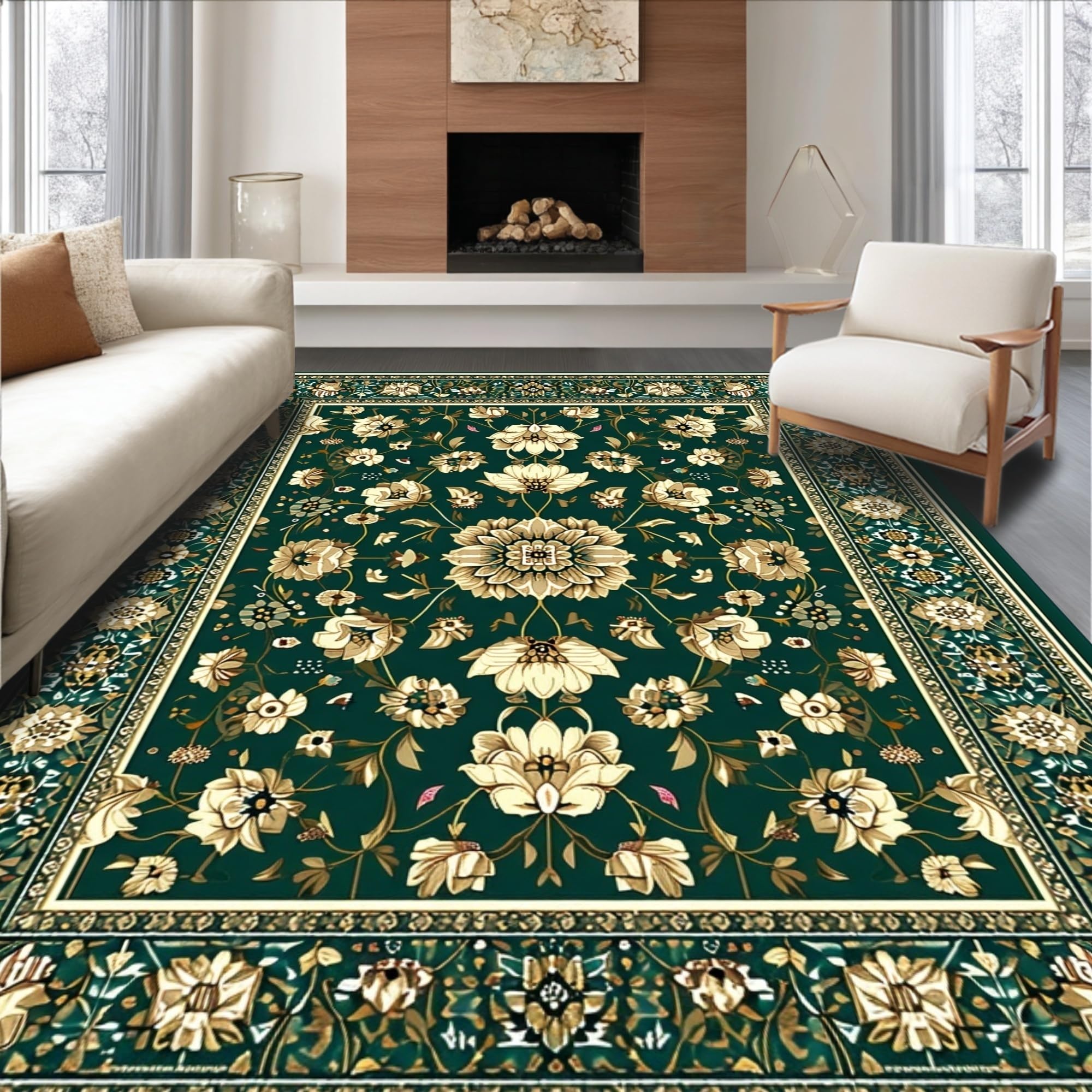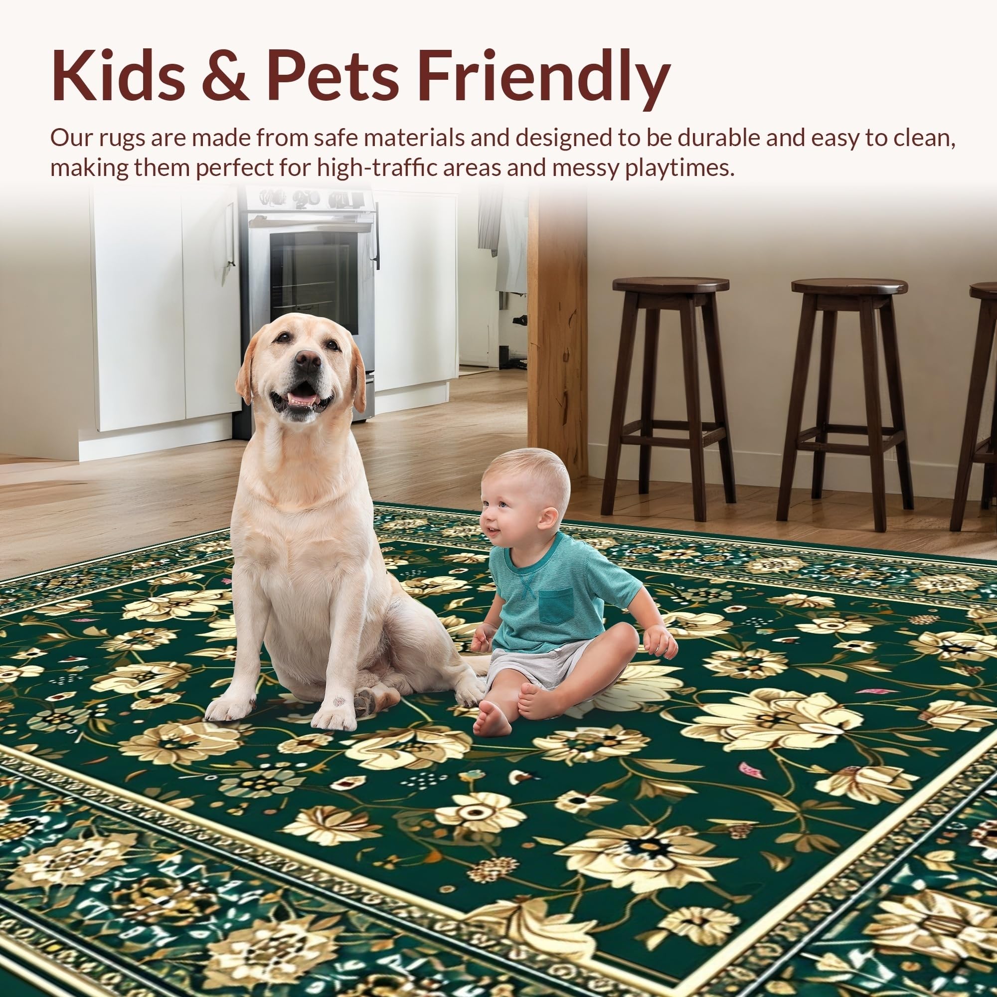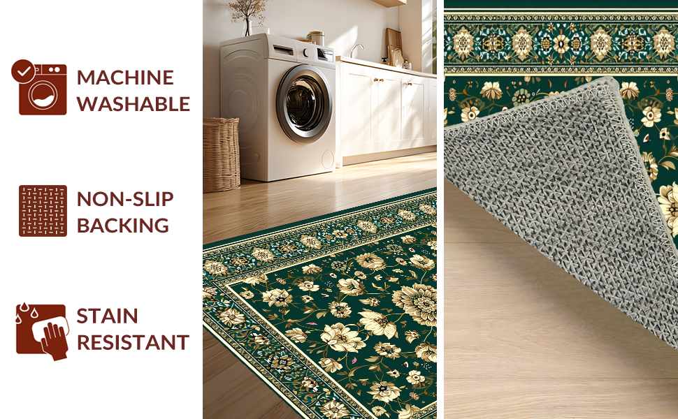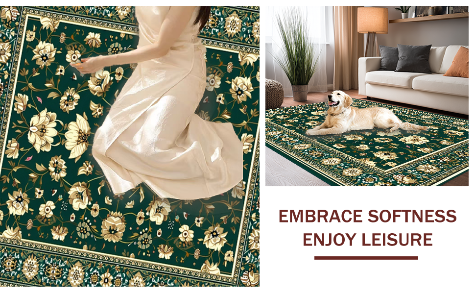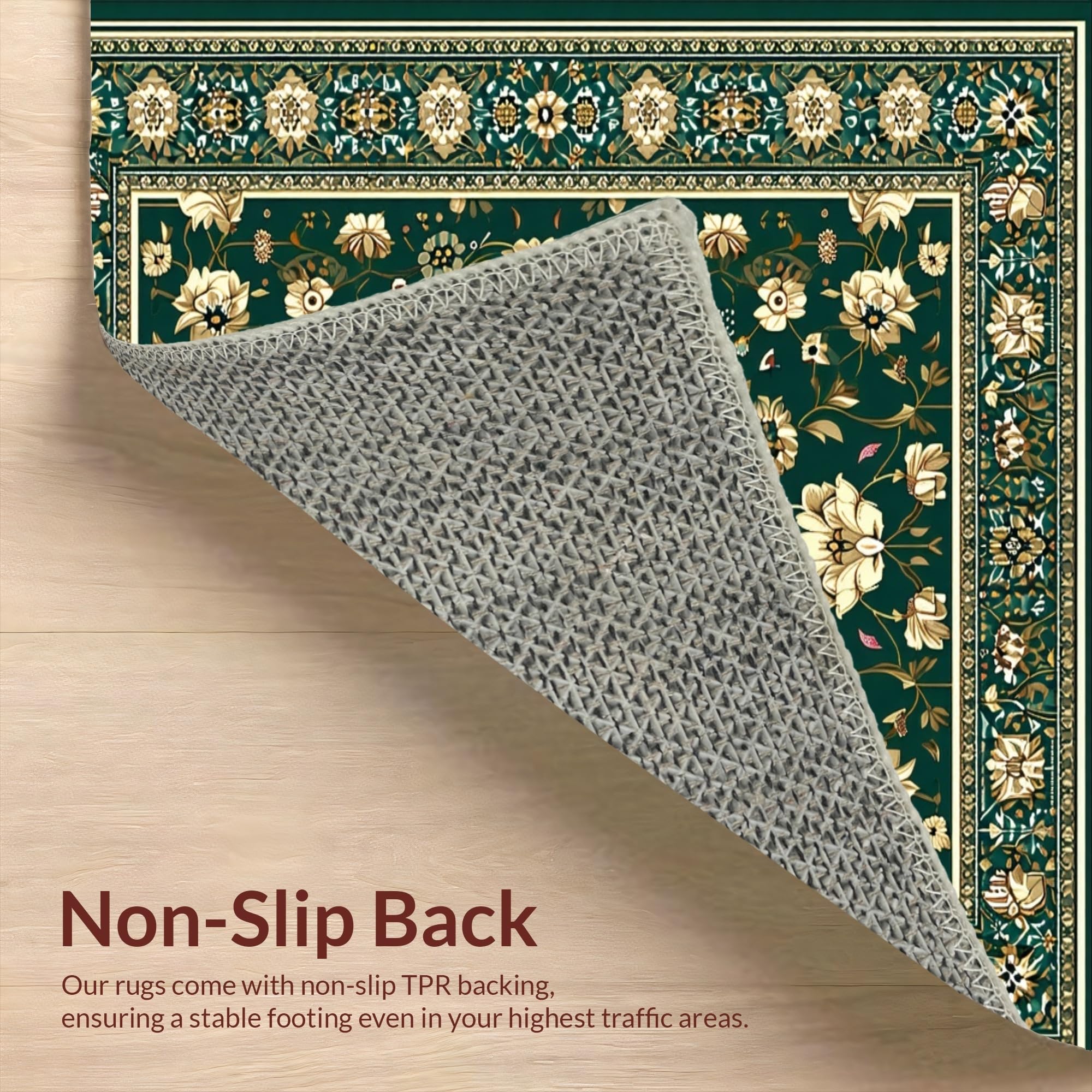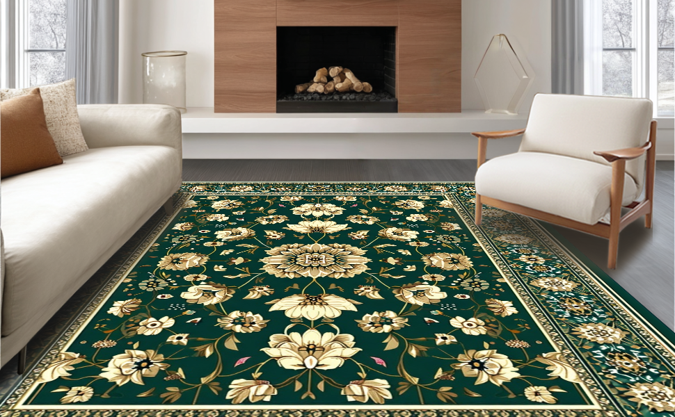 Ultra Soft Area Rug, Non Slip, Stain Resistant, Washable Area Rugs for Living Room, Bedroom, Artful Floral Lattice Composition(Green) Overview: