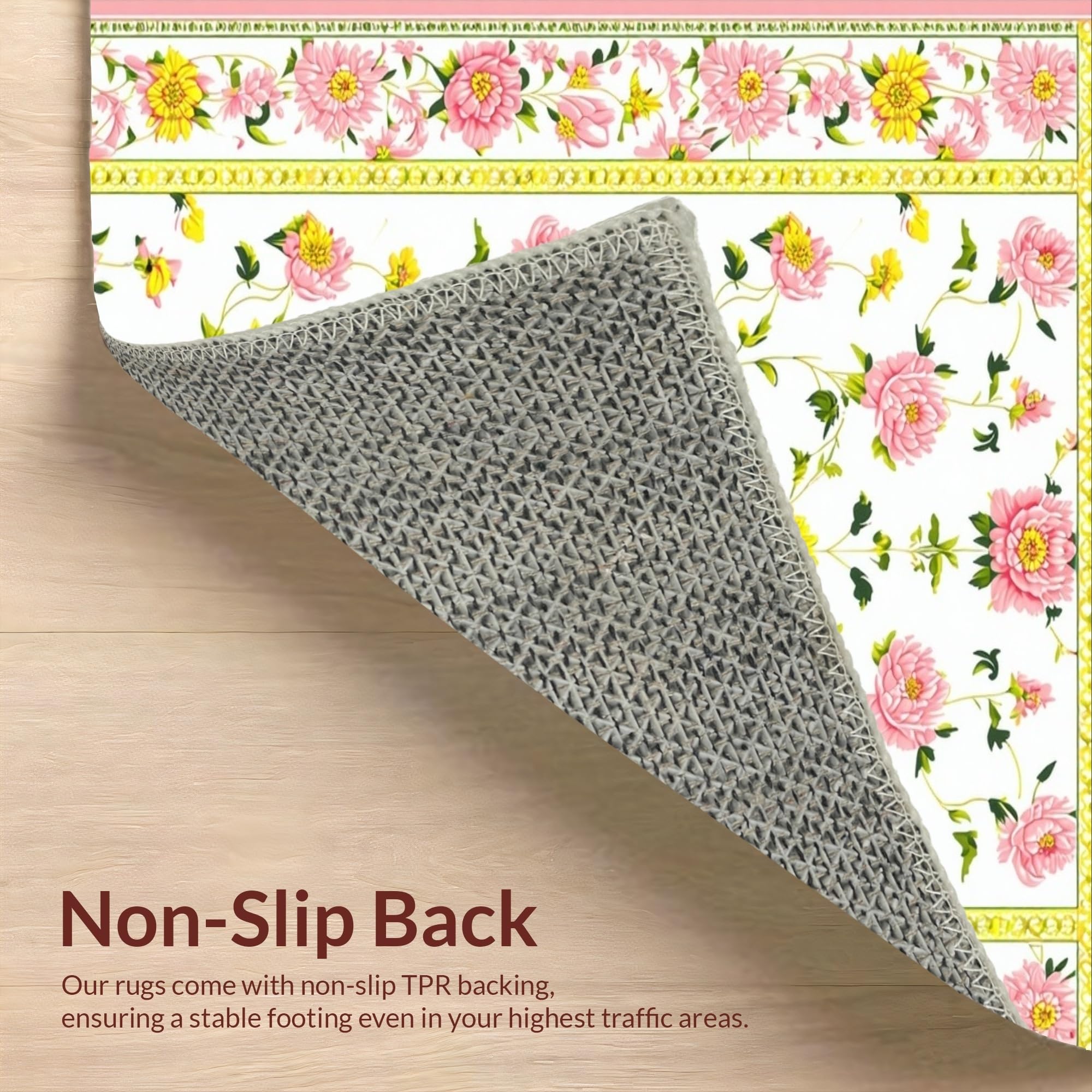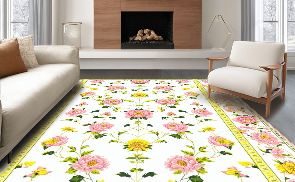 Ultra Soft Area Rug, Non Slip, Stain Resistant, Washable Area Rugs for Living Room, Bedroom, Artful Flower and Vase Ensemble(White) Overview: