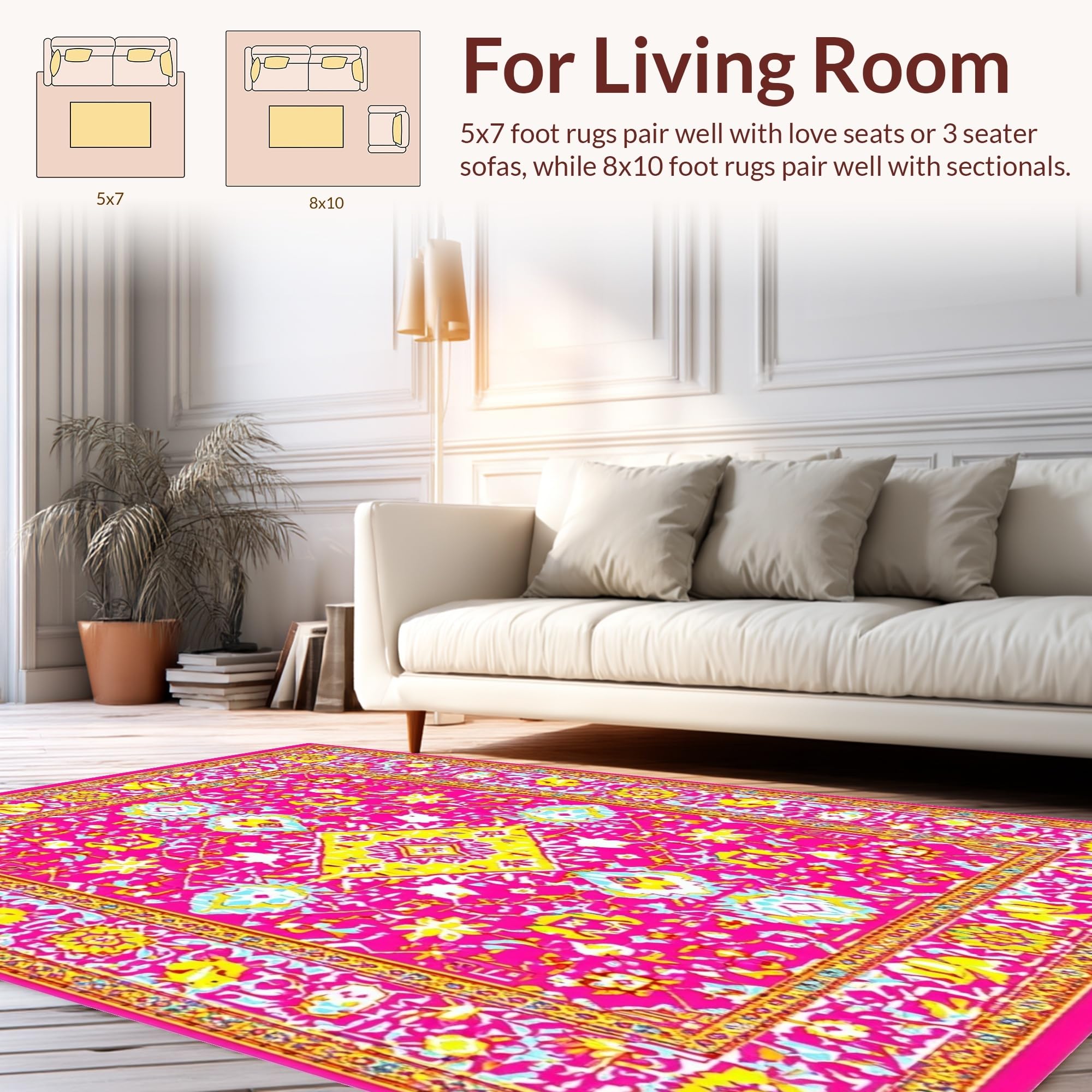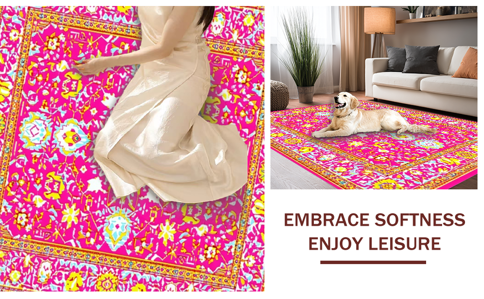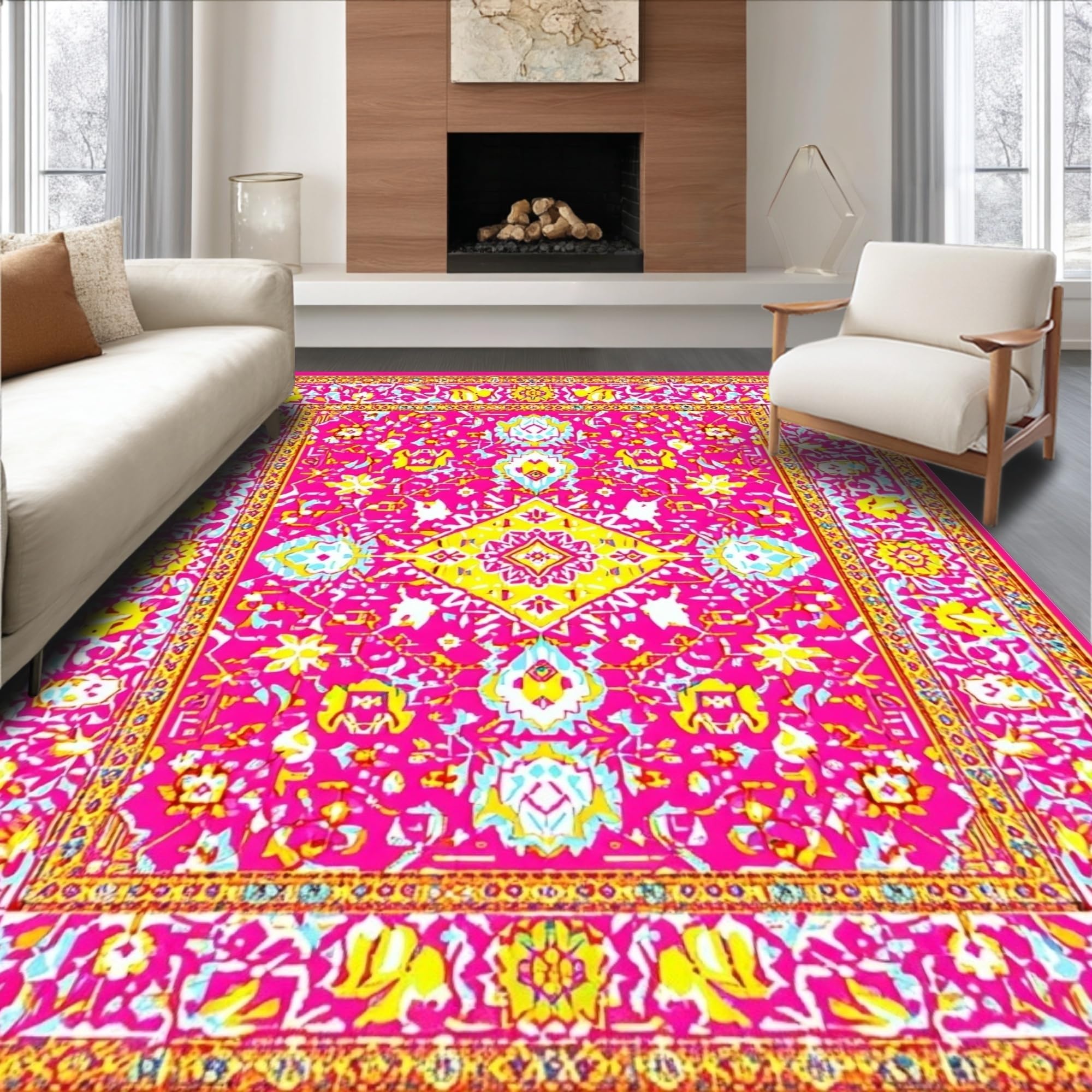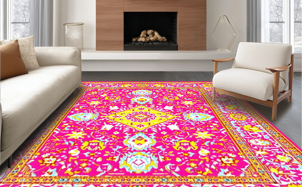 Ultra Soft Area Rug, Non Slip, Stain Resistant, Washable Area Rugs for Living Room, Bedroom, Artful Geometric Floral Composition(Pink) Overview: