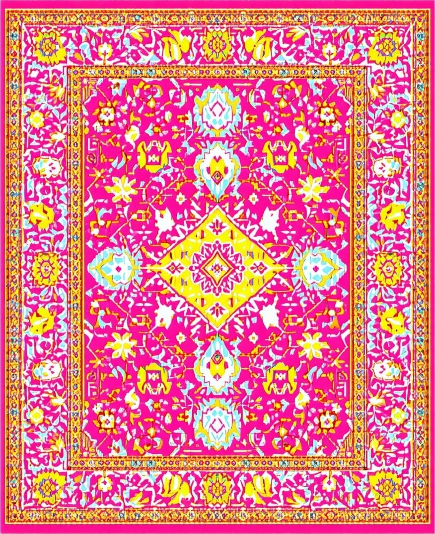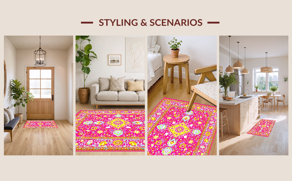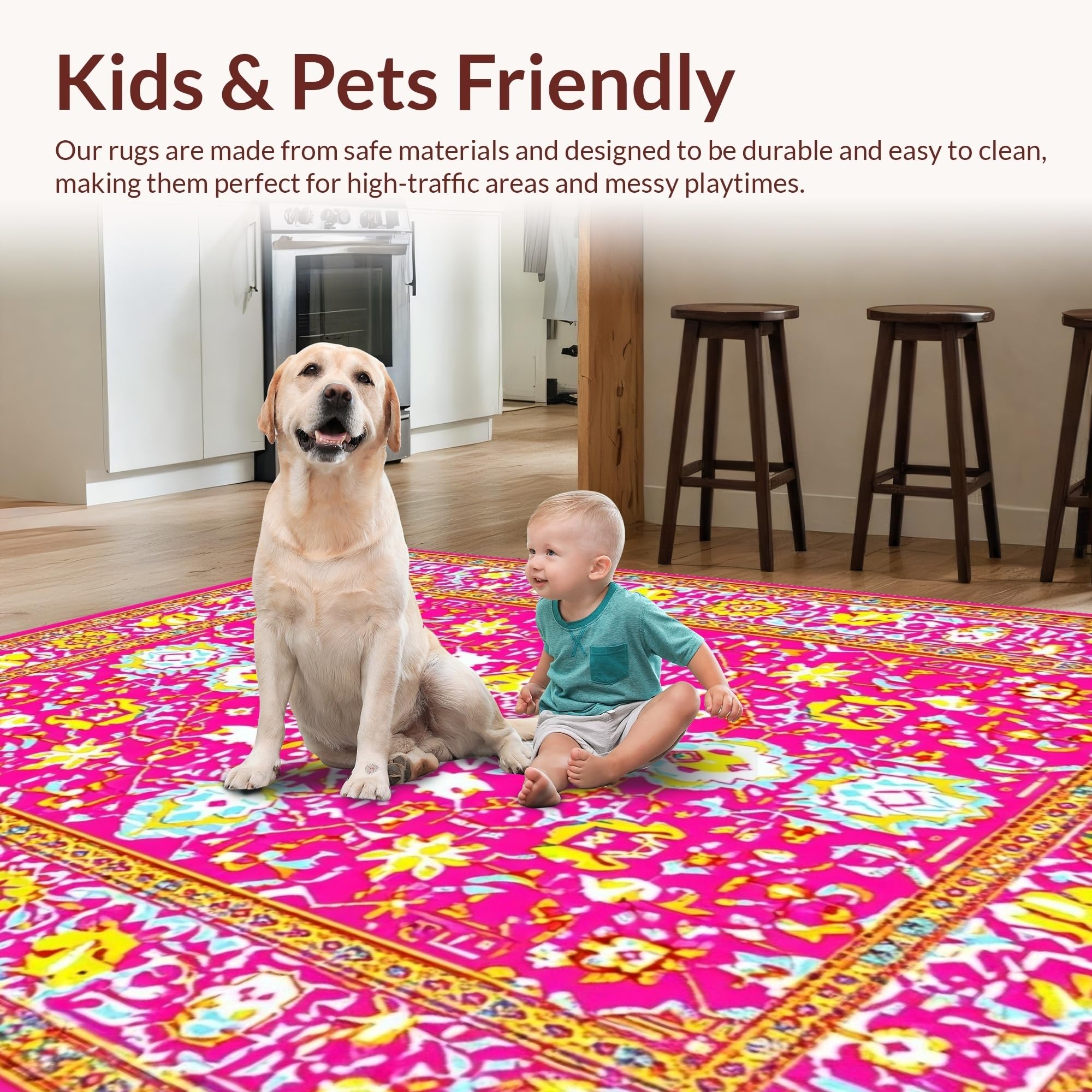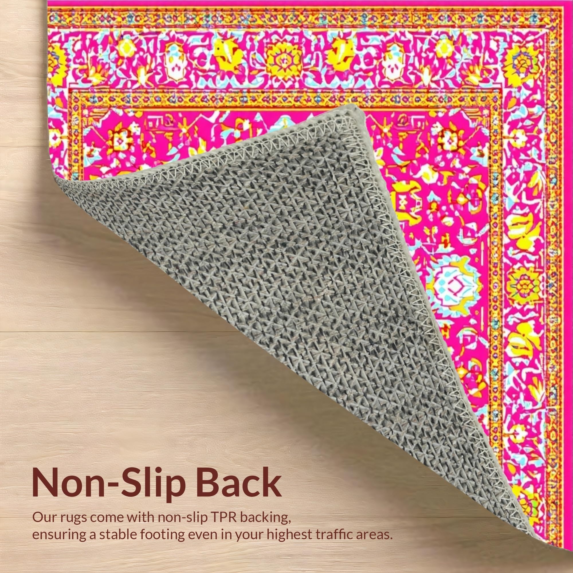 Ultra Soft Area Rug, Non Slip, Stain Resistant, Washable Area Rugs for Living Room, Bedroom, Artful Geometric Floral Composition(Pink) Overview: