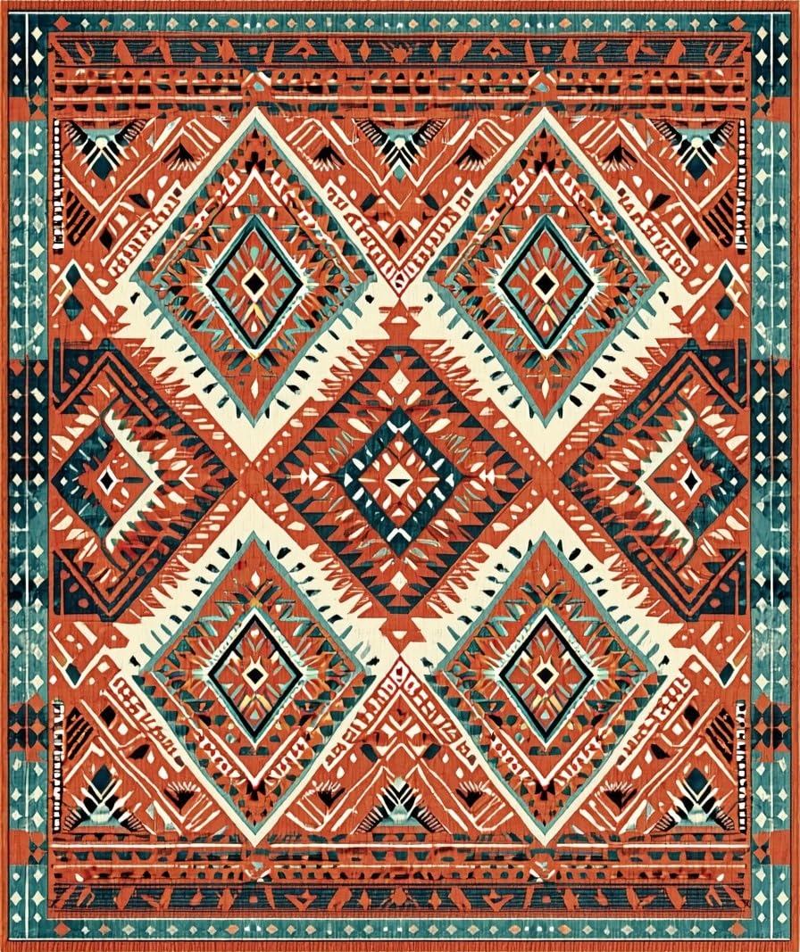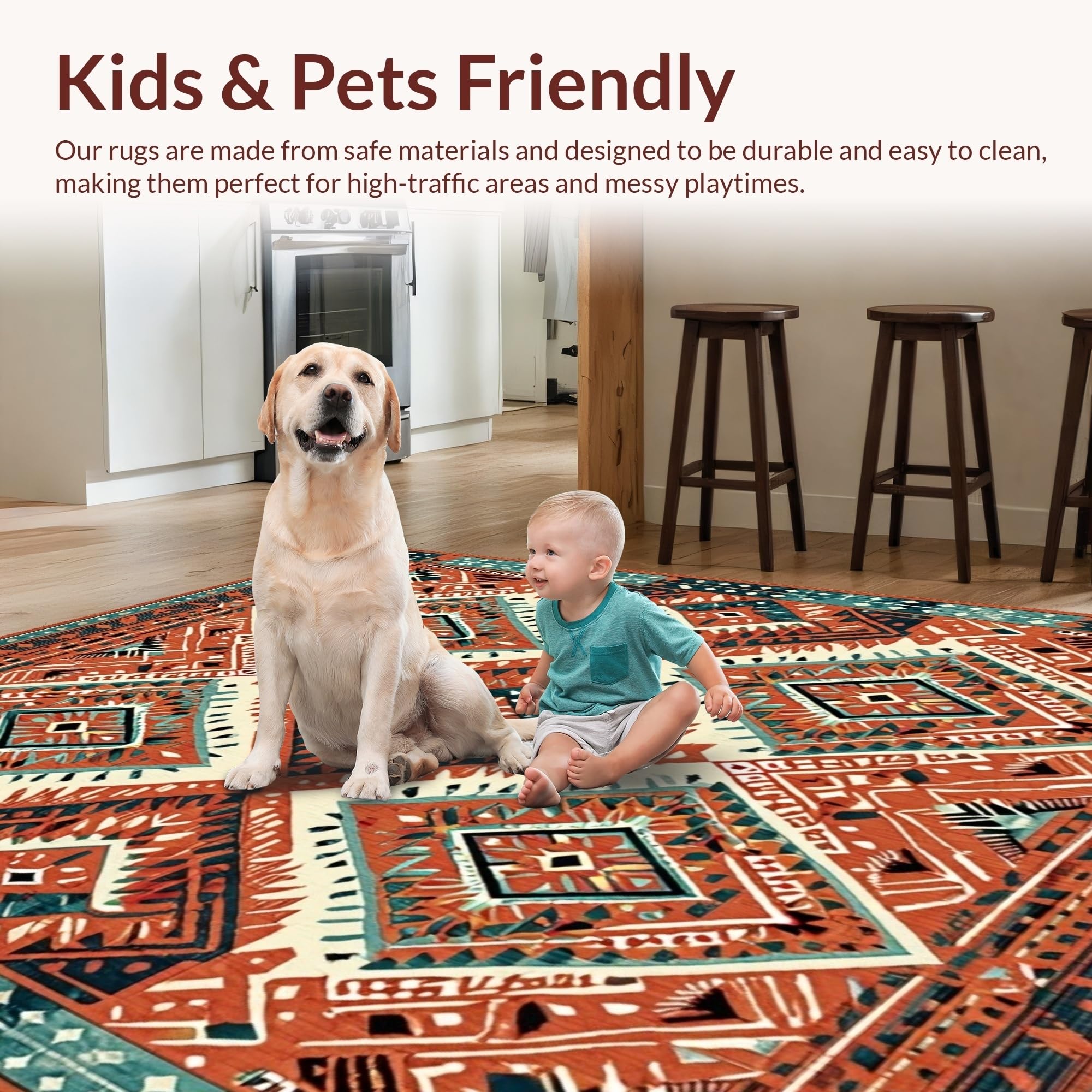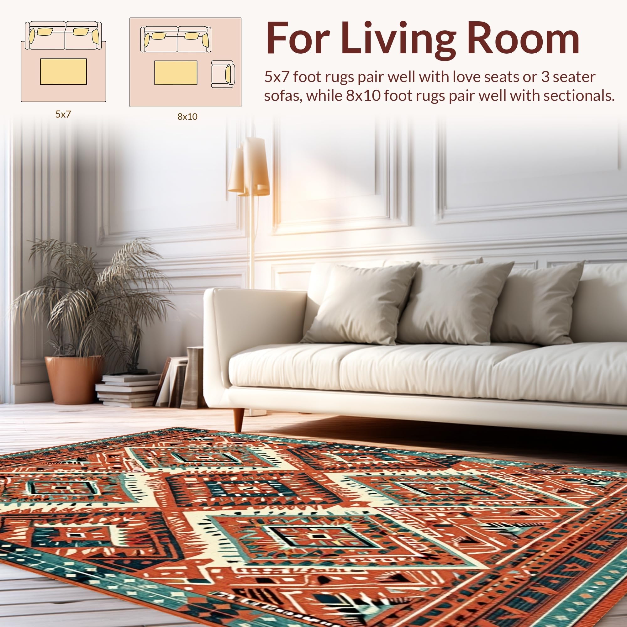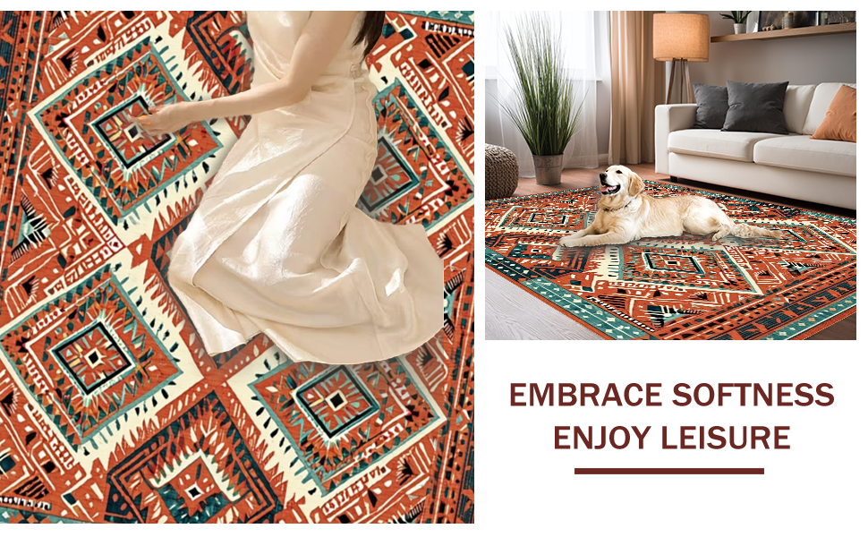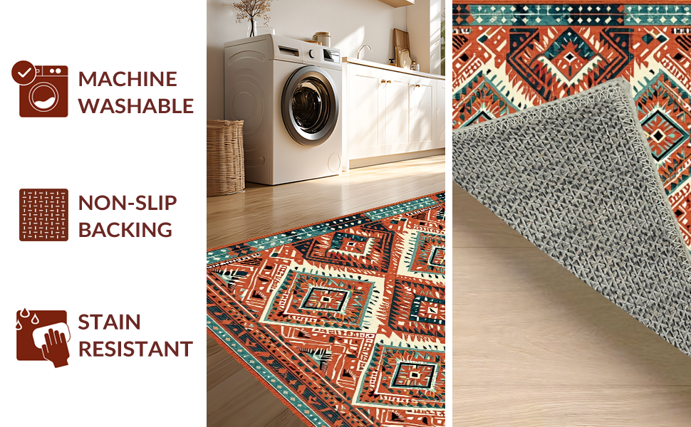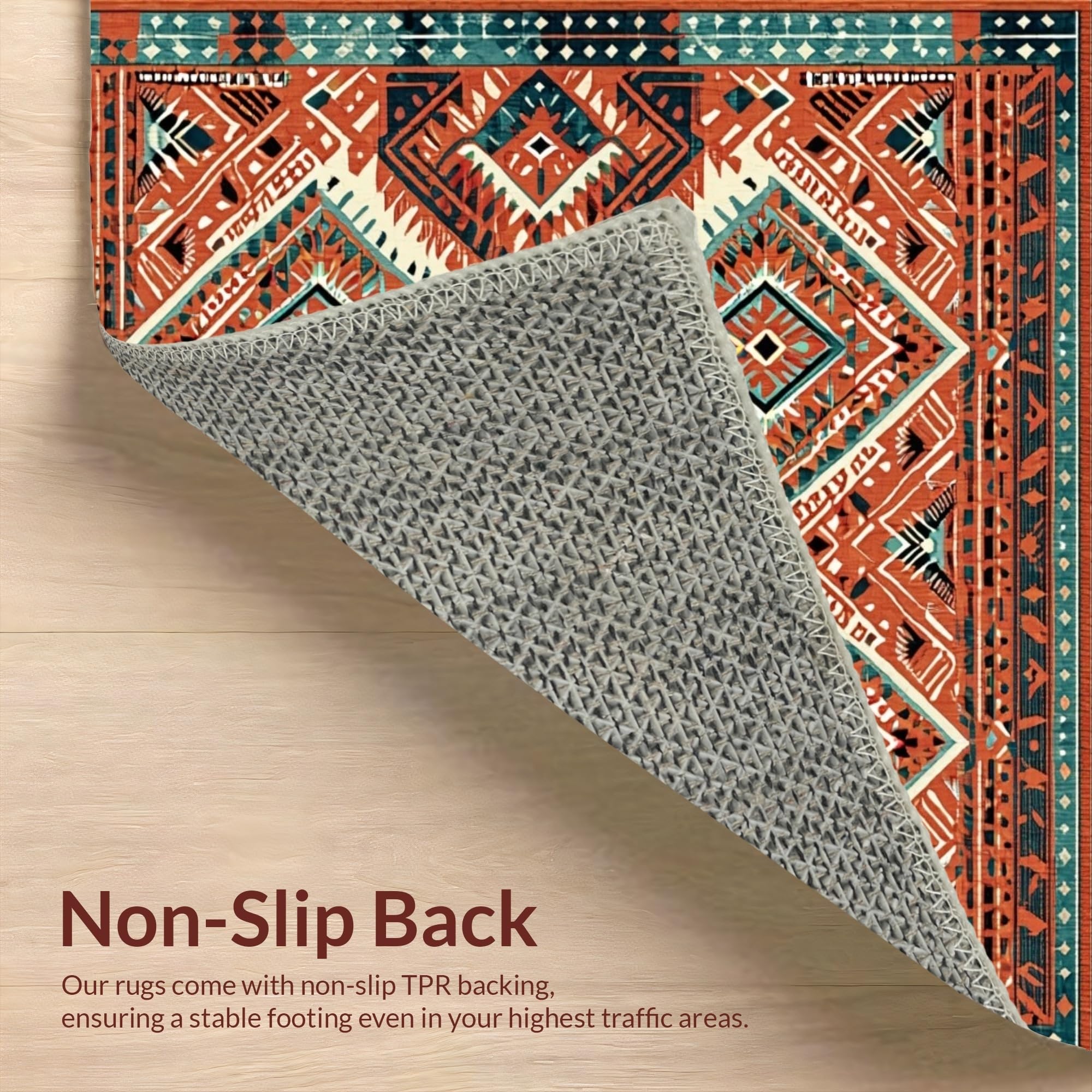 Ultra Soft Area Rug, Non Slip, Stain Resistant, Washable Area Rugs for Living Room, Bedroom, Artful Geometric Rustic Fusion(Red) Overview: