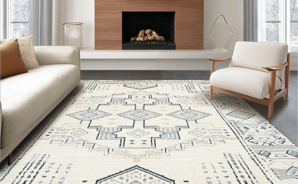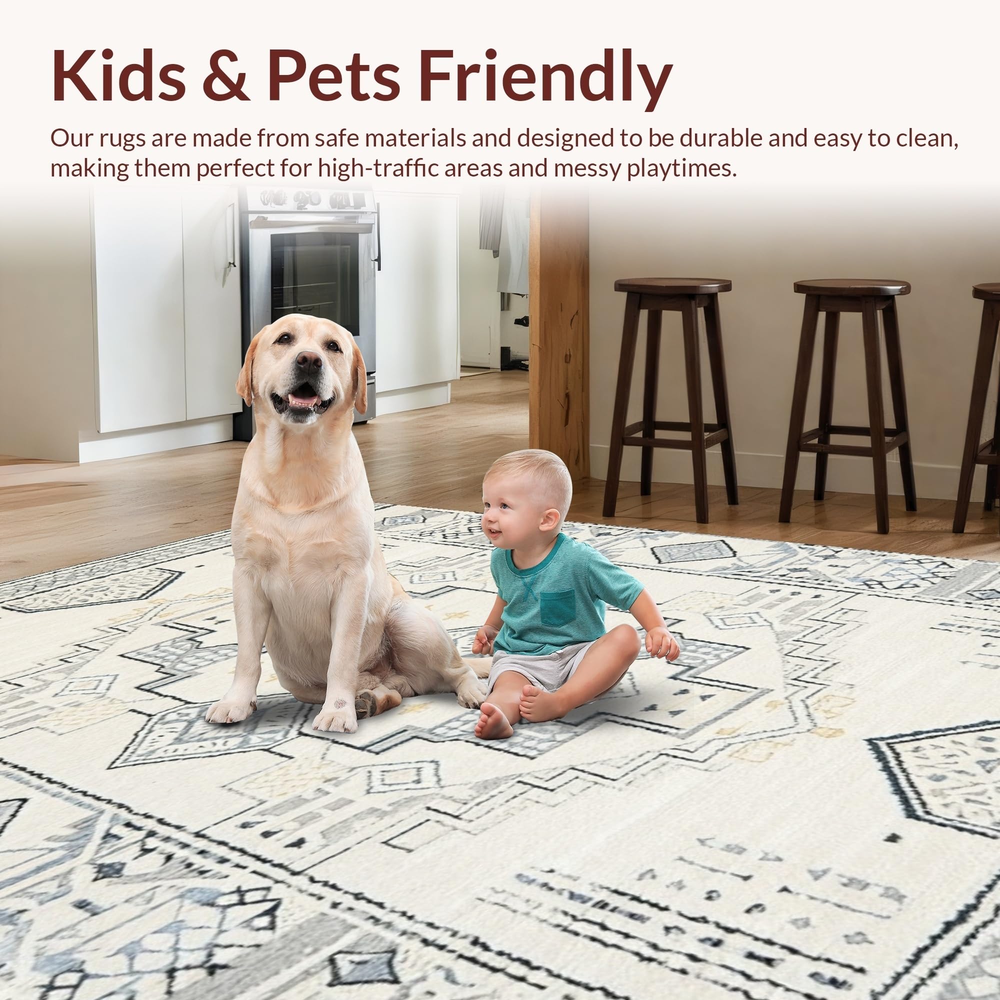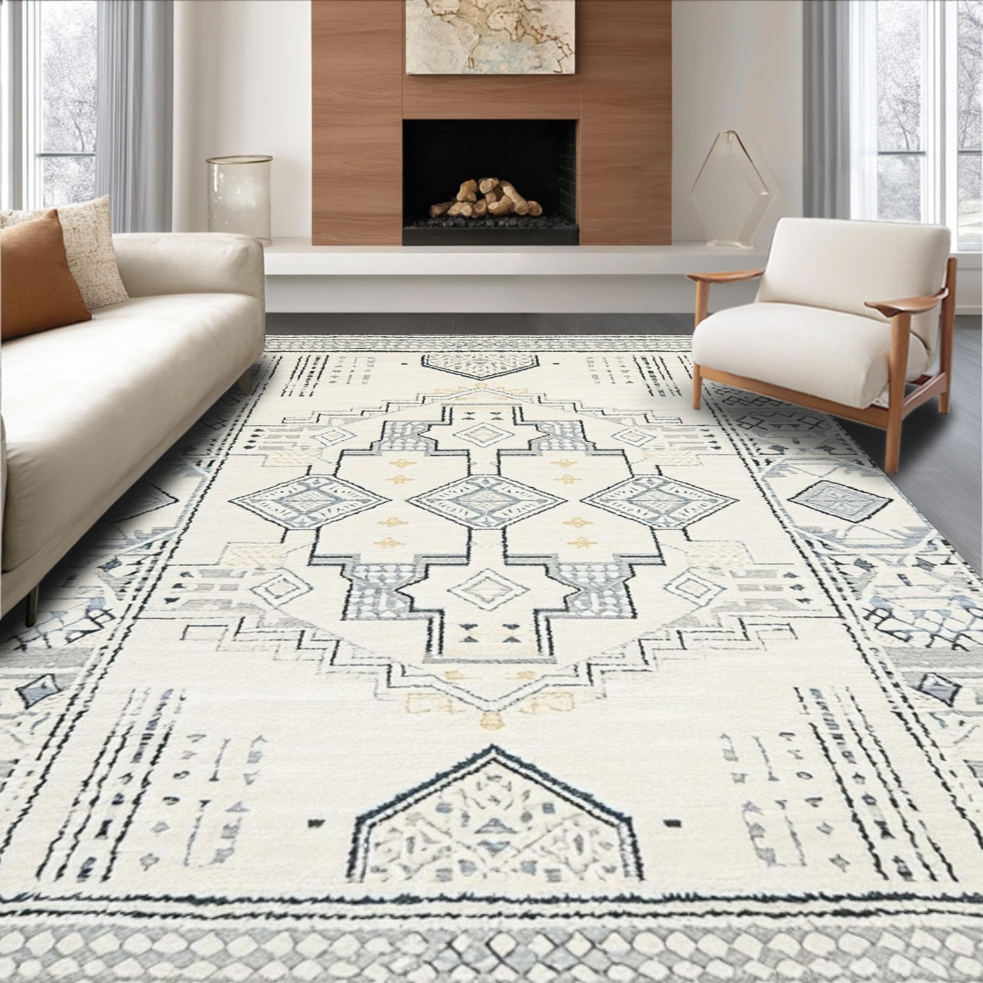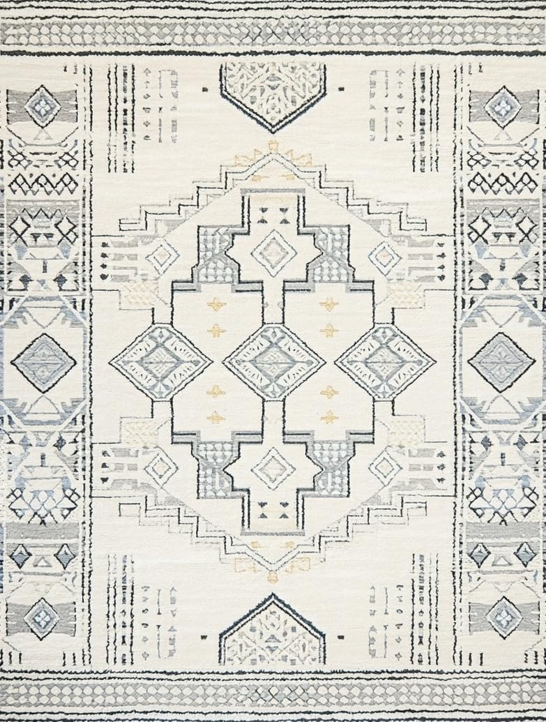 Ultra Soft Area Rug, Non Slip, Stain Resistant, Washable Area Rugs for Living Room, Bedroom, Artful Gray and Cream Overlay(White) Overview: