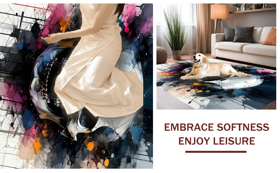 Ultra Soft Area Rug, Non Slip, Stain Resistant, Washable Area Rugs for Living Room, Bedroom, Artful Grey and Black Motif(Black) Overview: