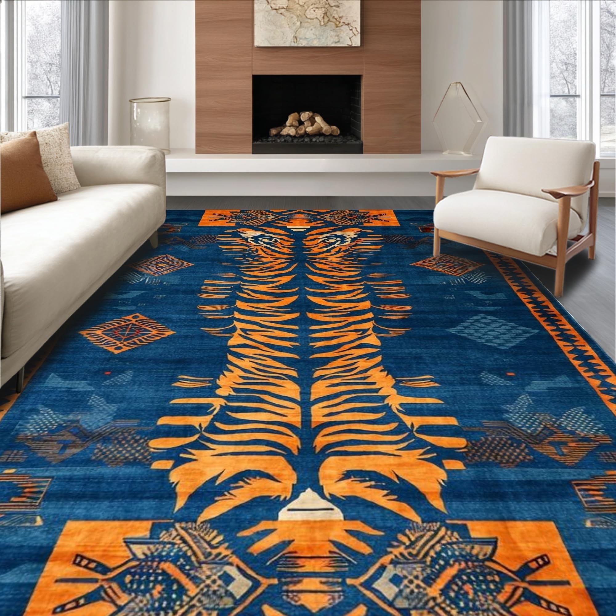 Ultra Soft Area Rug, Non Slip, Stain Resistant, Washable Area Rugs for Living Room, Bedroom, Artful Minimalist Tiger Design(Blue) Overview: