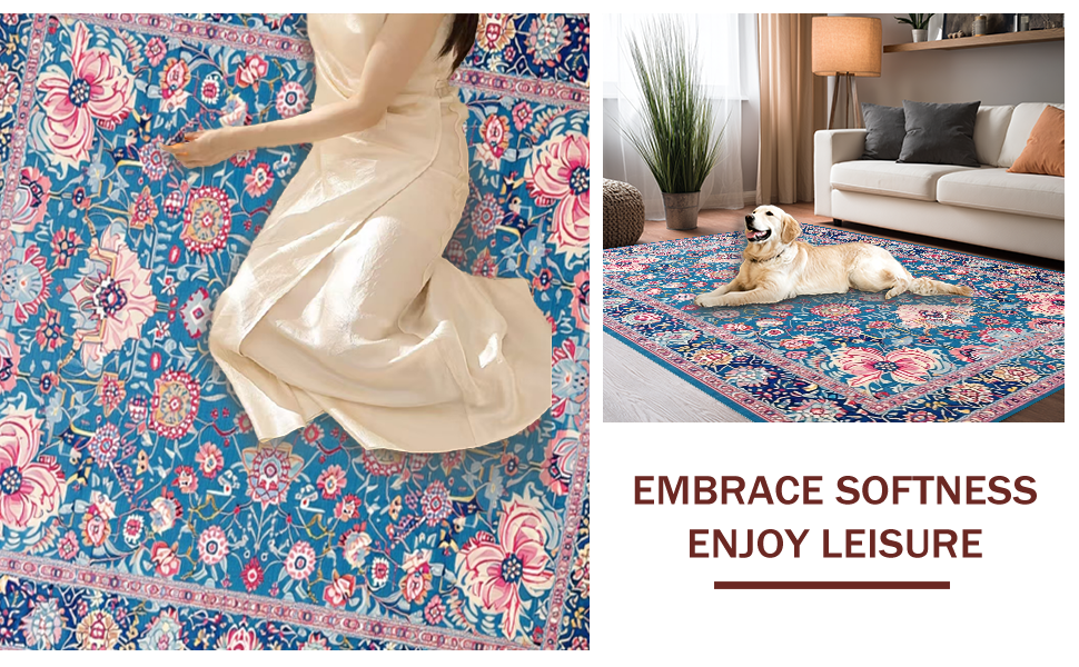 Ultra Soft Area Rug, Non Slip, Stain Resistant, Washable Area Rugs for Living Room, Bedroom, Artful Mixed-Hue Textile Design(Blue) Overview:
