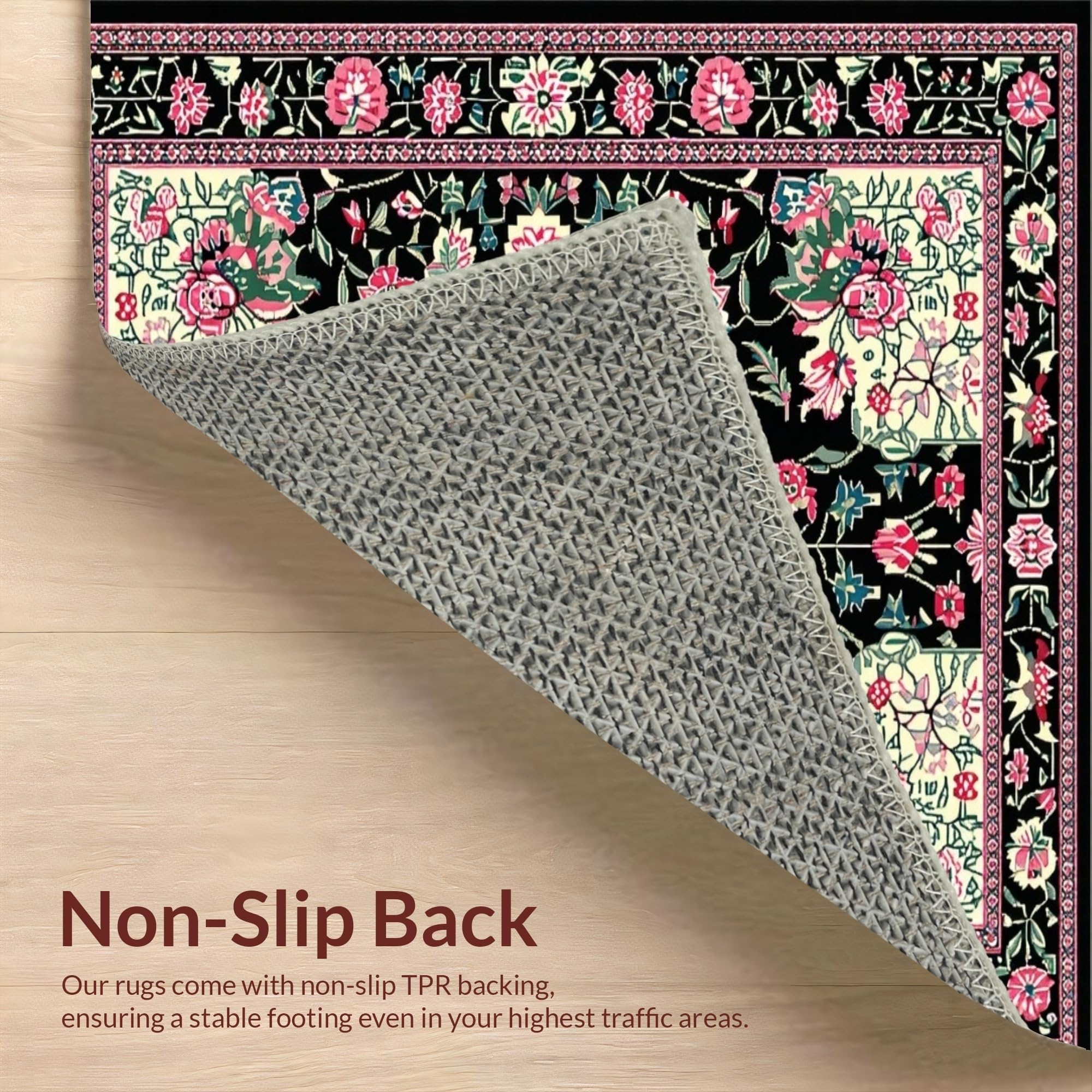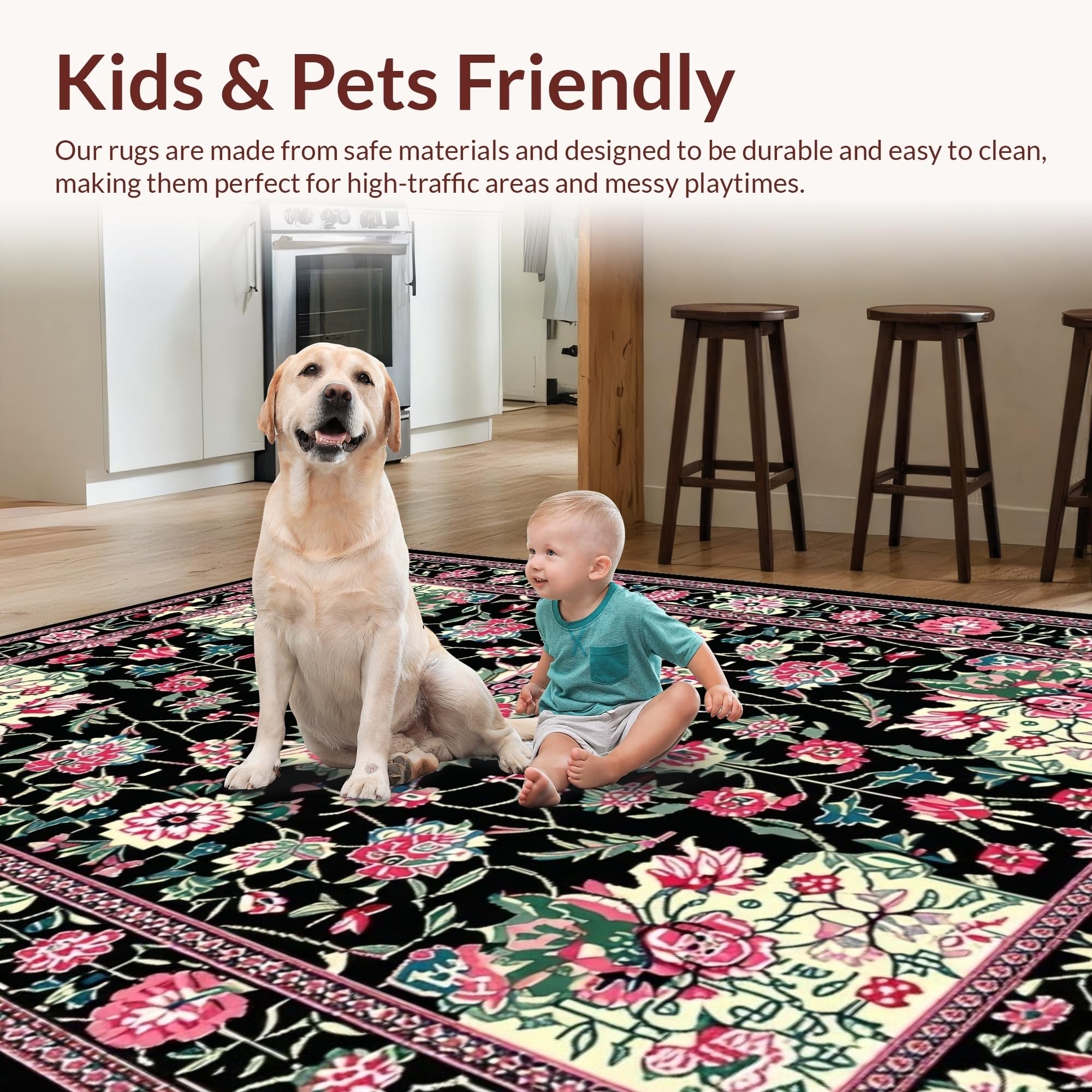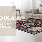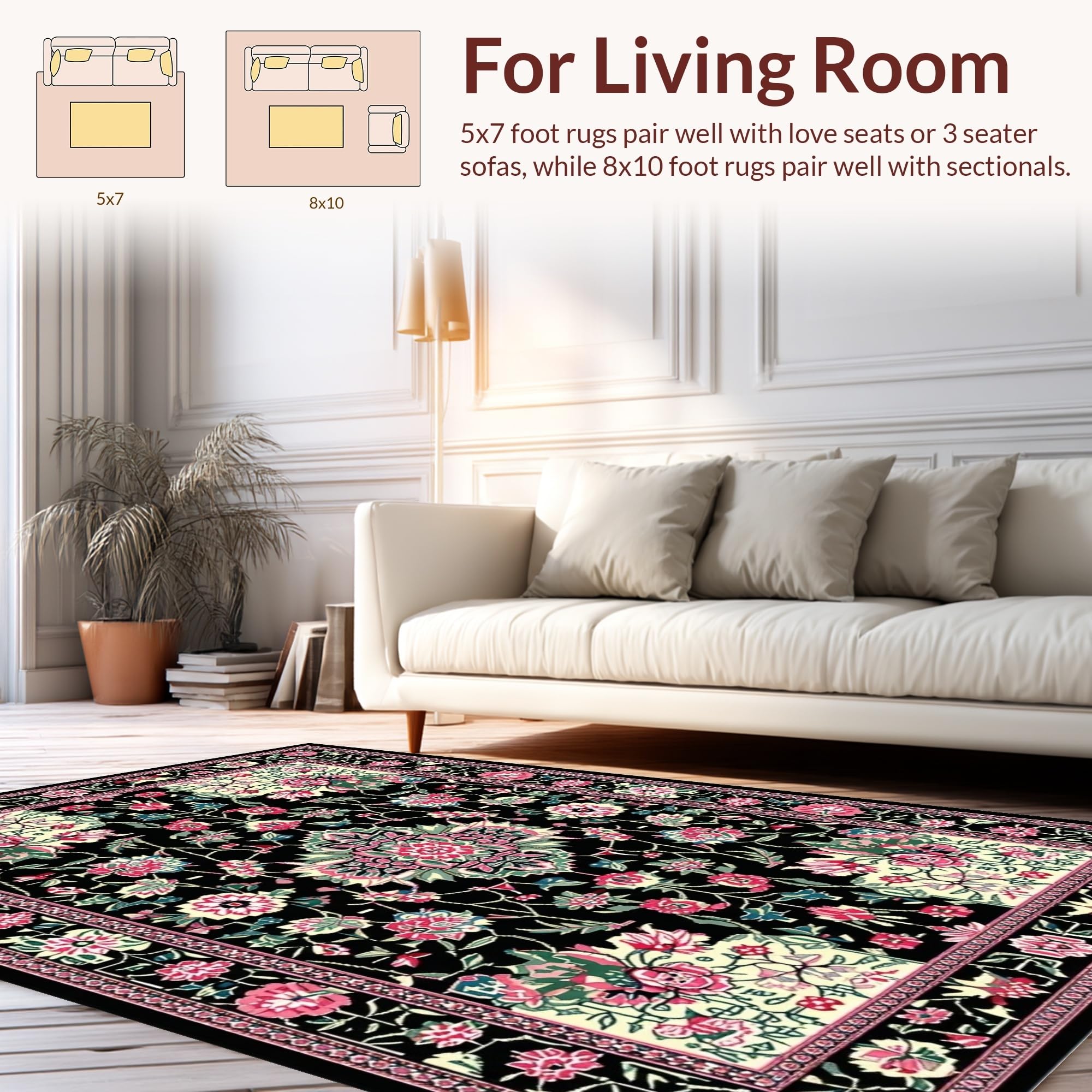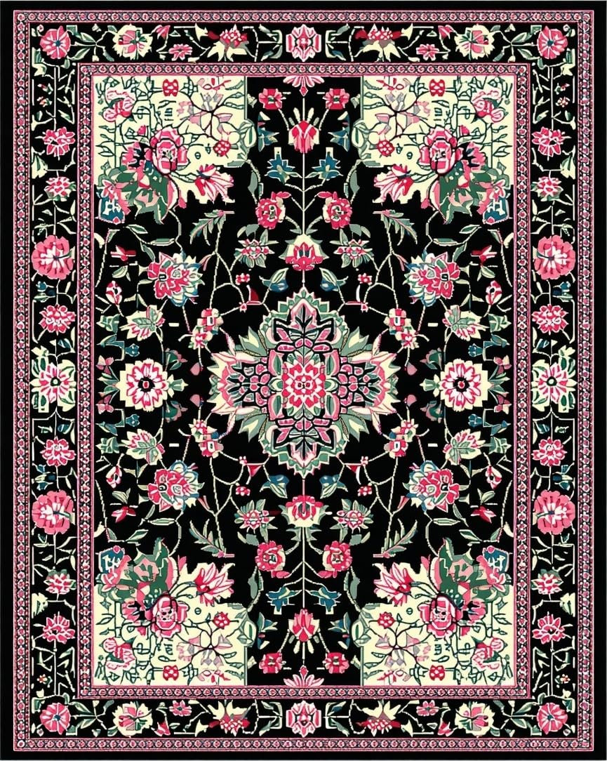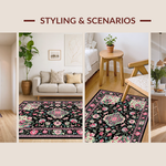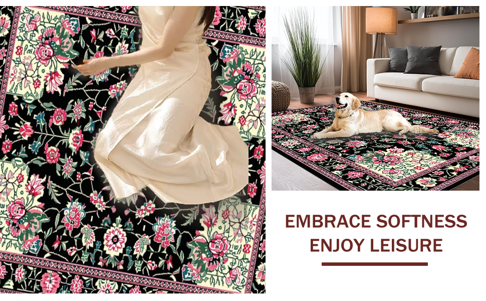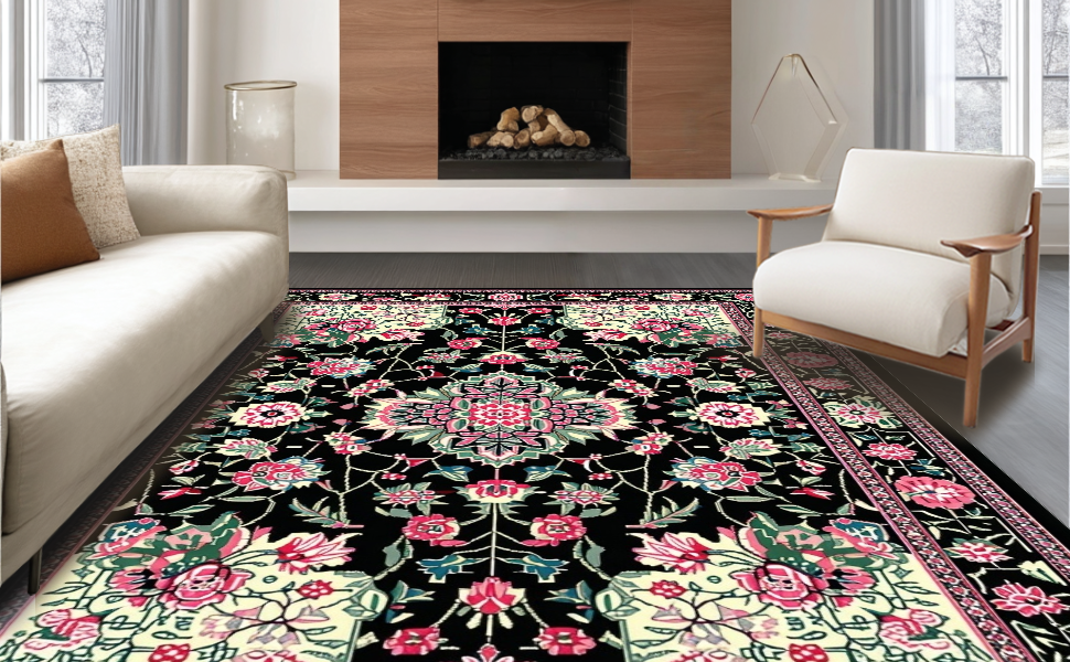 Ultra Soft Area Rug, Non Slip, Stain Resistant, Washable Area Rugs for Living Room, Bedroom, Artful Nature-Inspired Pattern(Black) Overview: