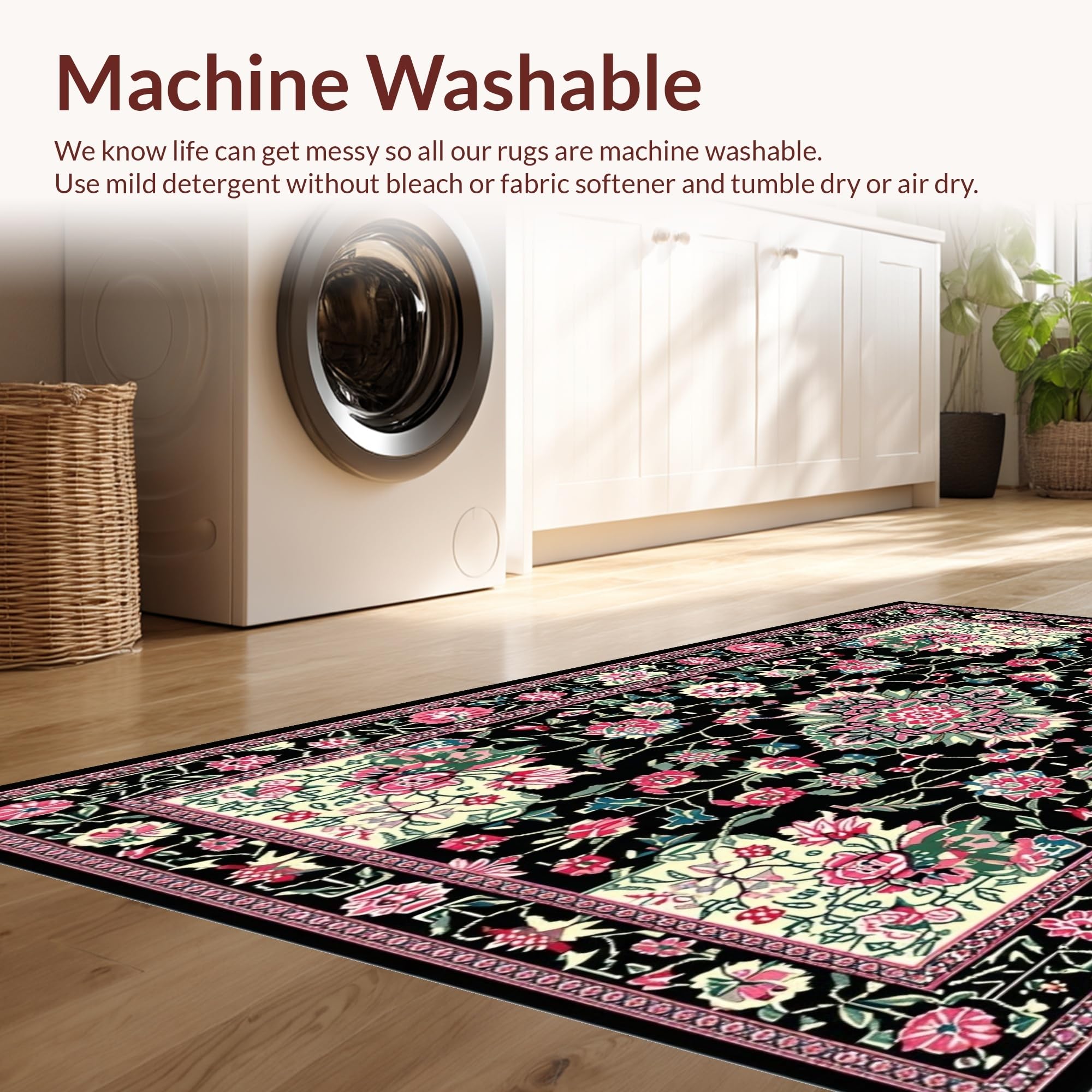- Machine Washable: Our rugs can be easily thrown in the wash machine.