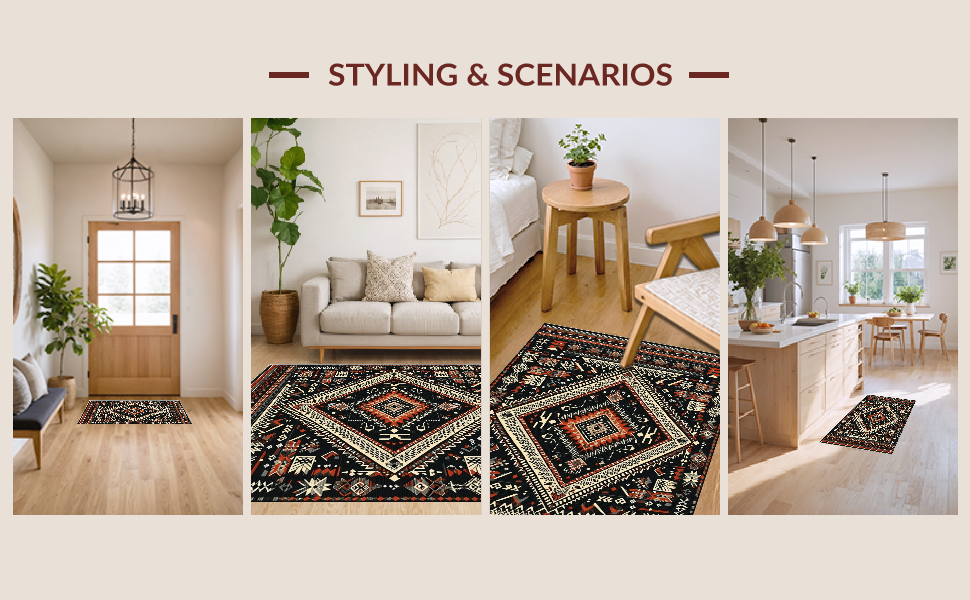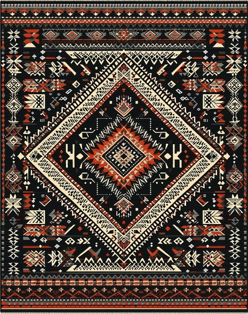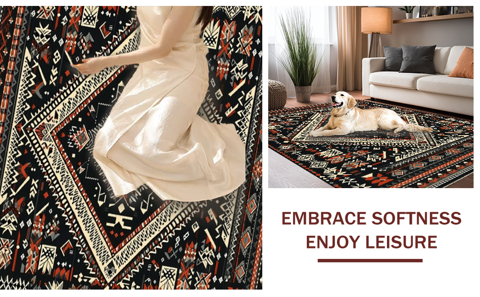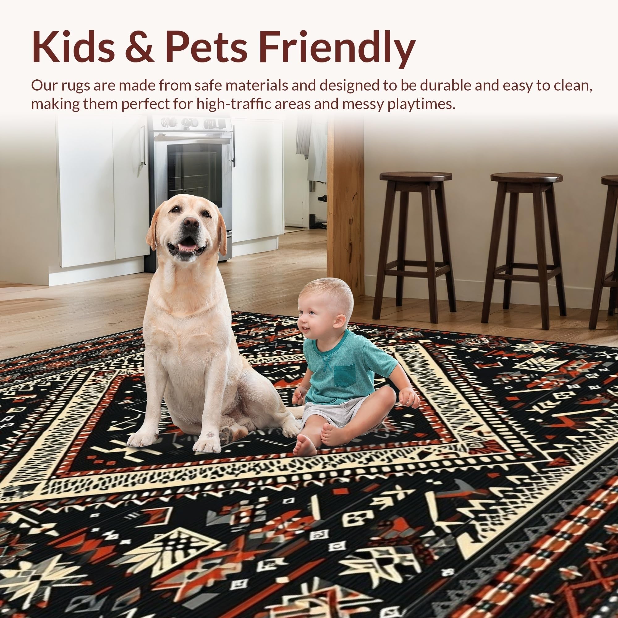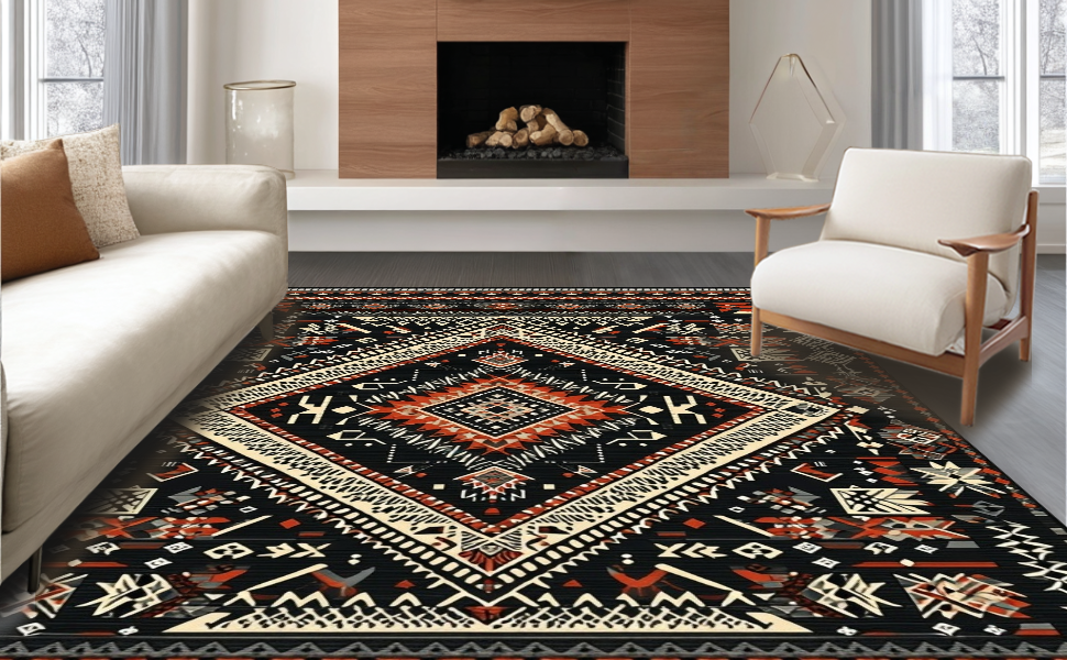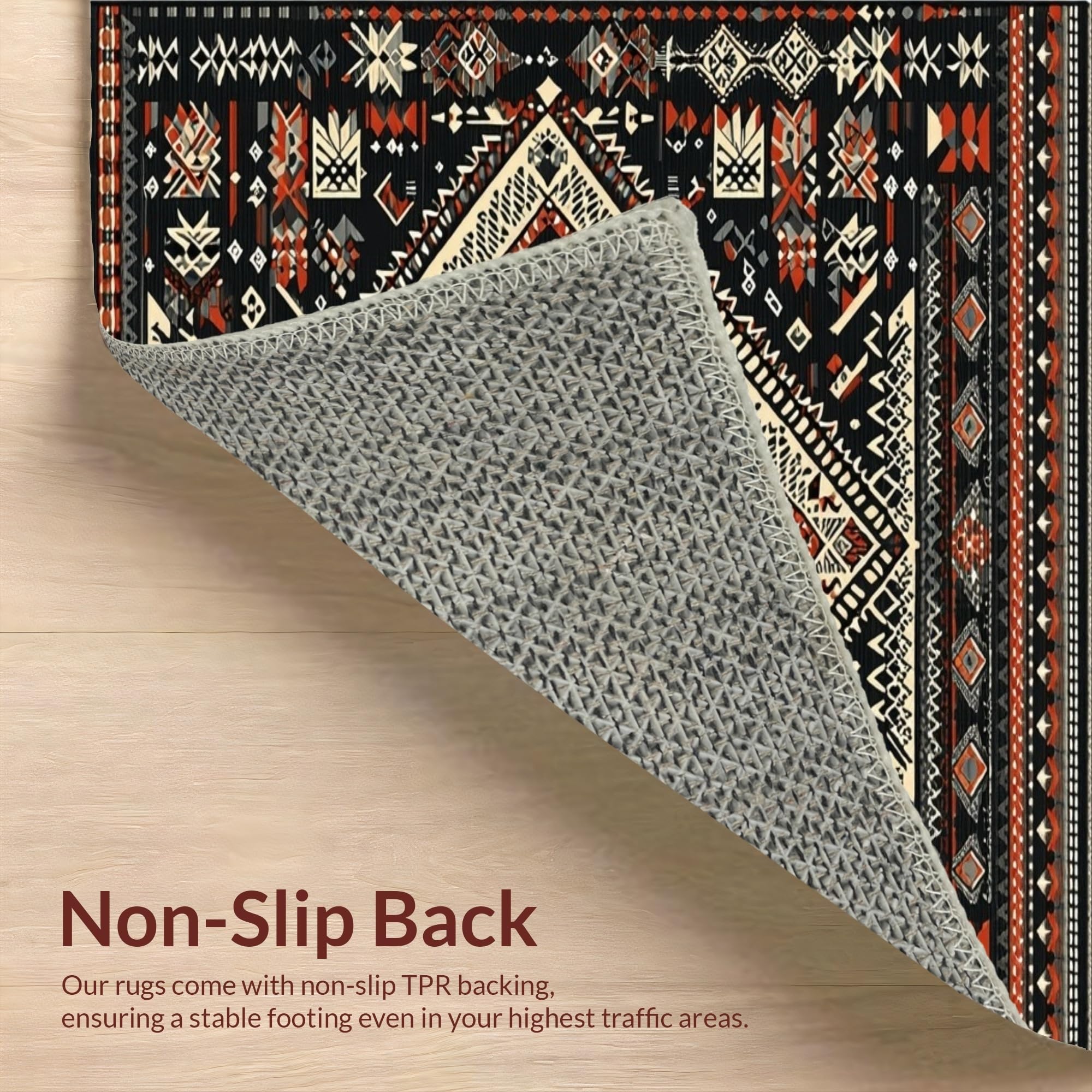 Ultra Soft Area Rug, Non Slip, Stain Resistant, Washable Area Rugs for Living Room, Bedroom, Artful Ogee Patterned Accent Piece(Black) Overview: