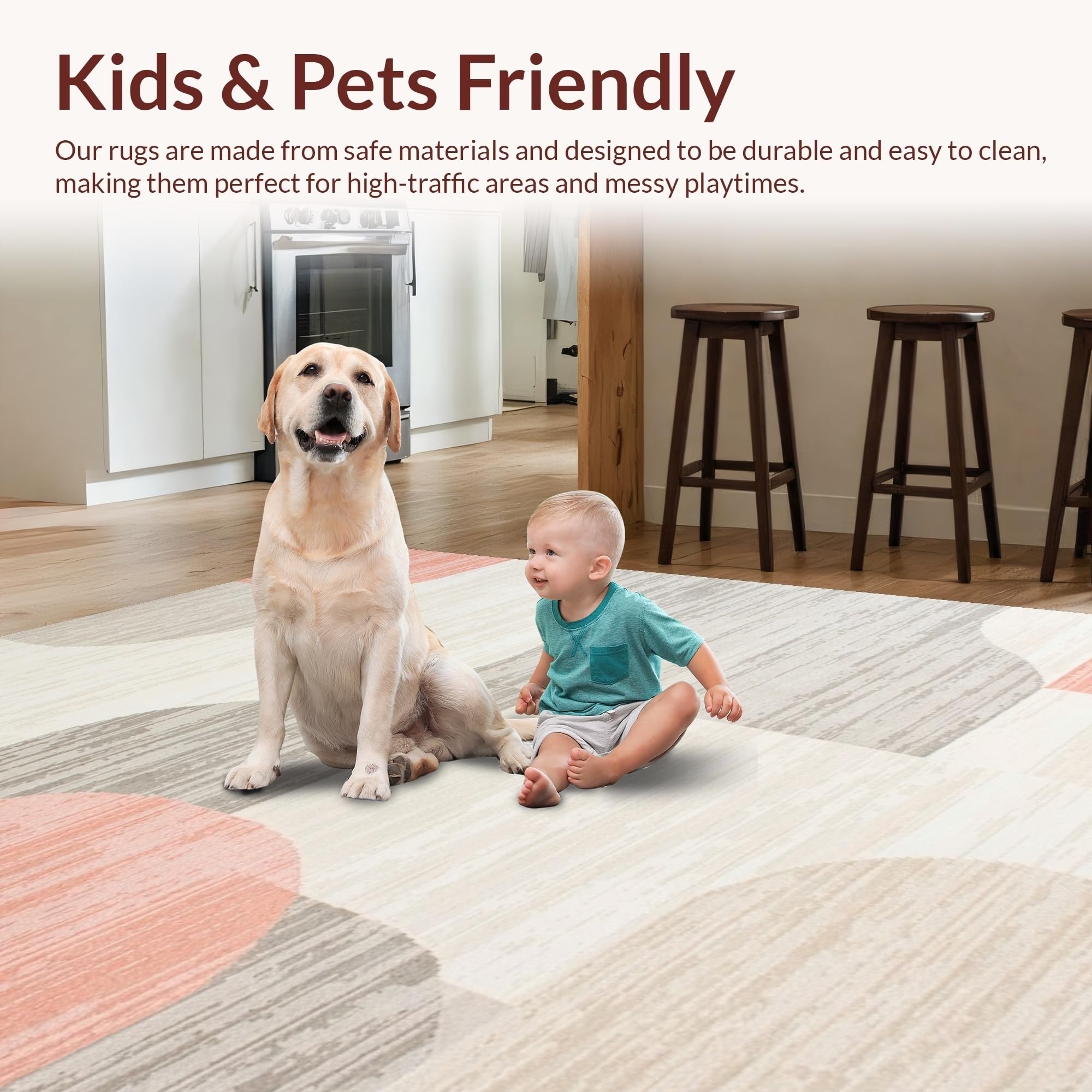 Ultra Soft Area Rug, Non Slip, Stain Resistant, Washable Area Rugs for Living Room, Bedroom, Artful Organic Curve Pattern(Red) Overview: