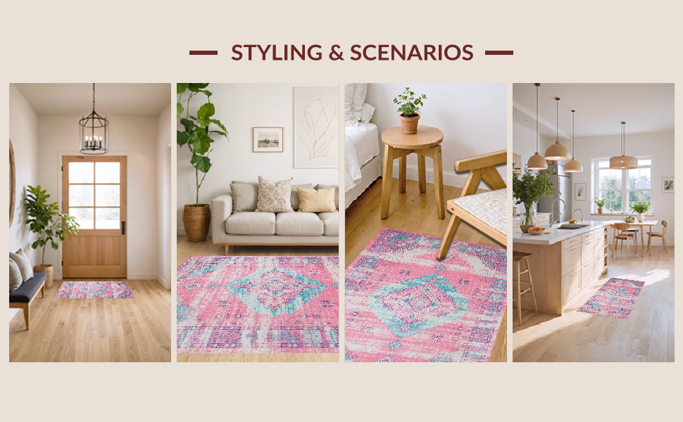 Ultra Soft Area Rug, Non Slip, Stain Resistant, Washable Area Rugs for Living Room, Bedroom, Artful Retro Hexagonal Layout(Pink) Overview: