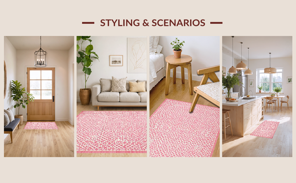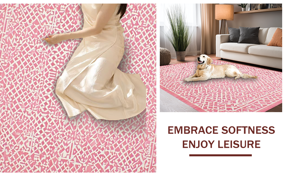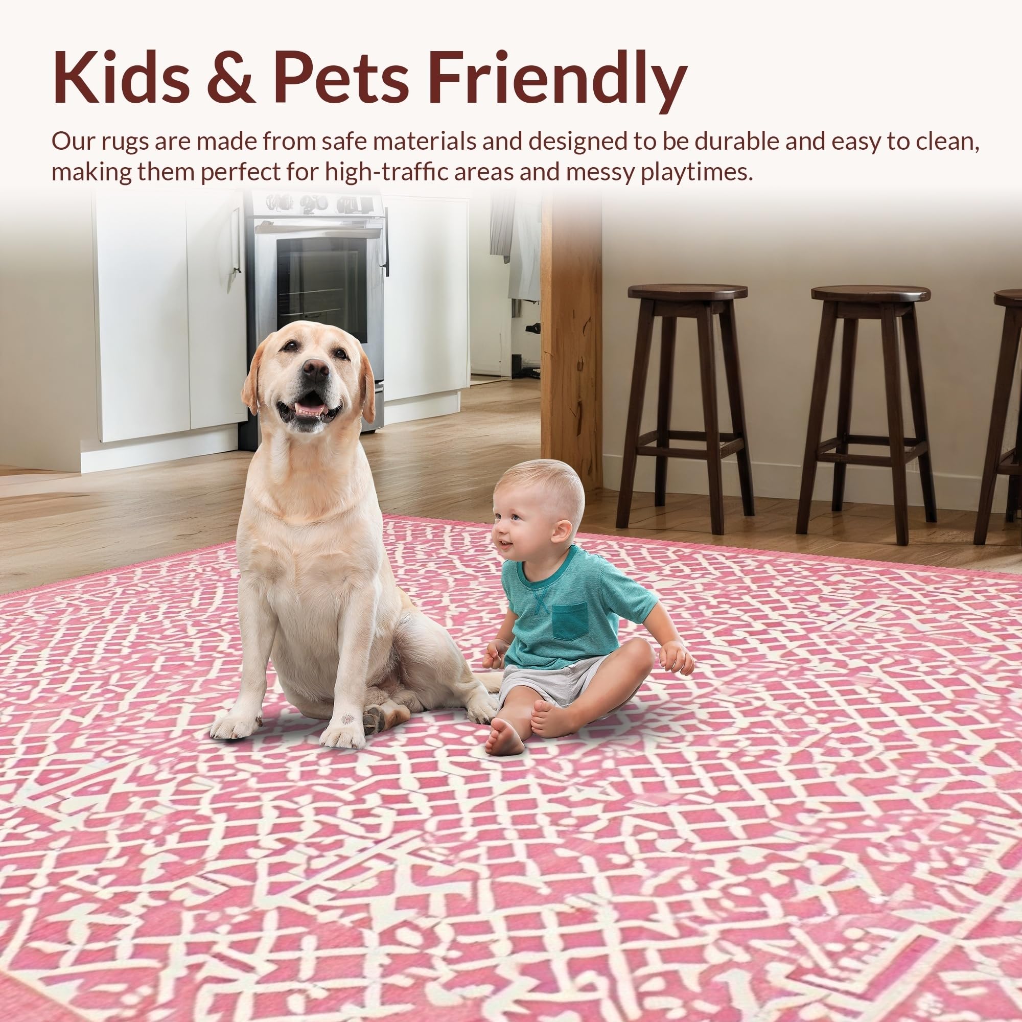 Ultra Soft Area Rug, Non Slip, Stain Resistant, Washable Area Rugs for Living Room, Bedroom, Artful Symmetrical Arrangement in Pink Tones(Pink) Overview: