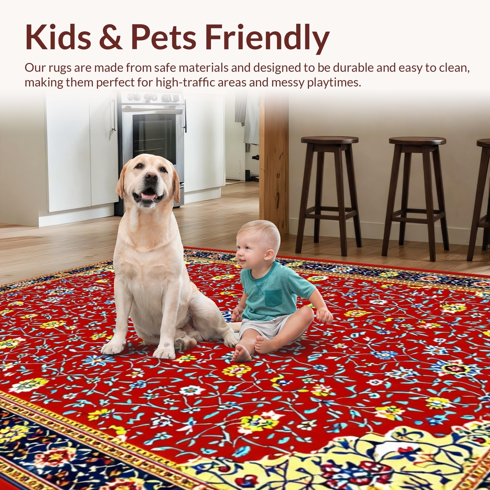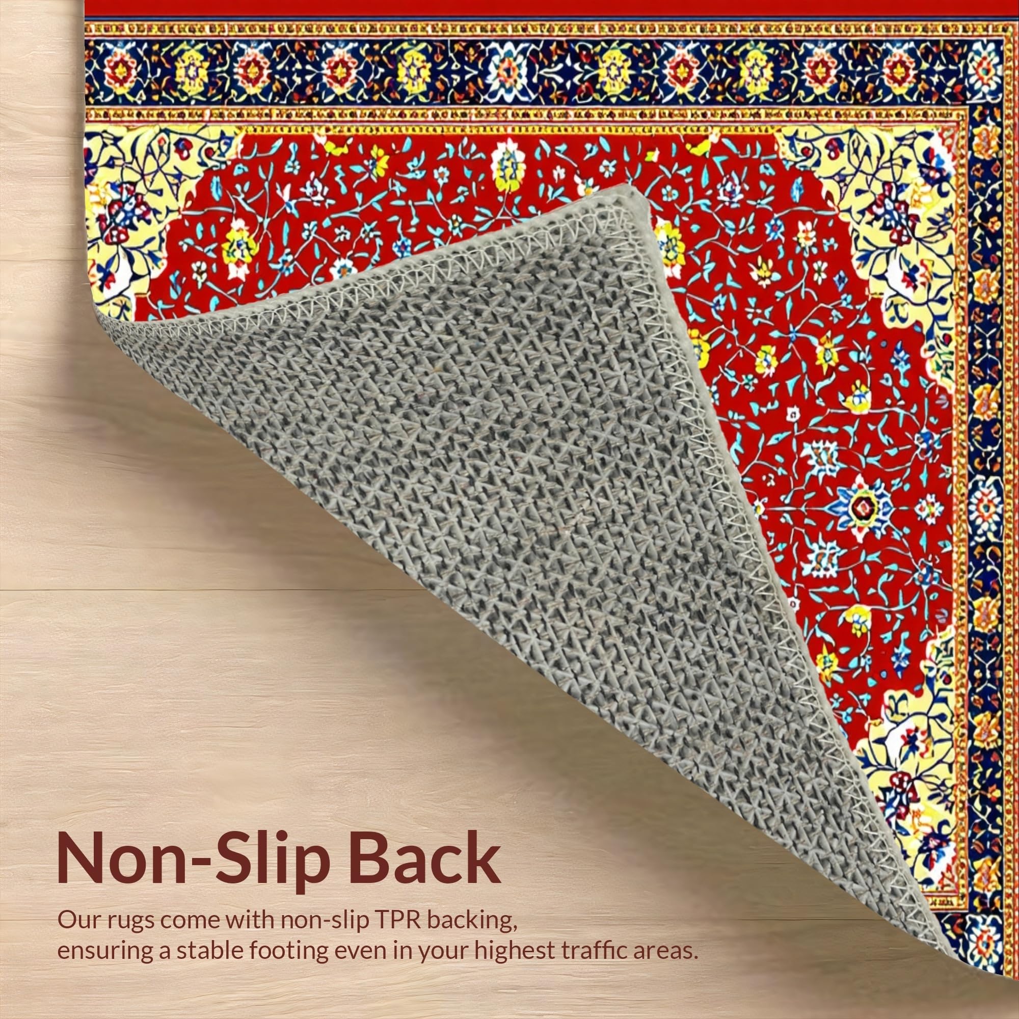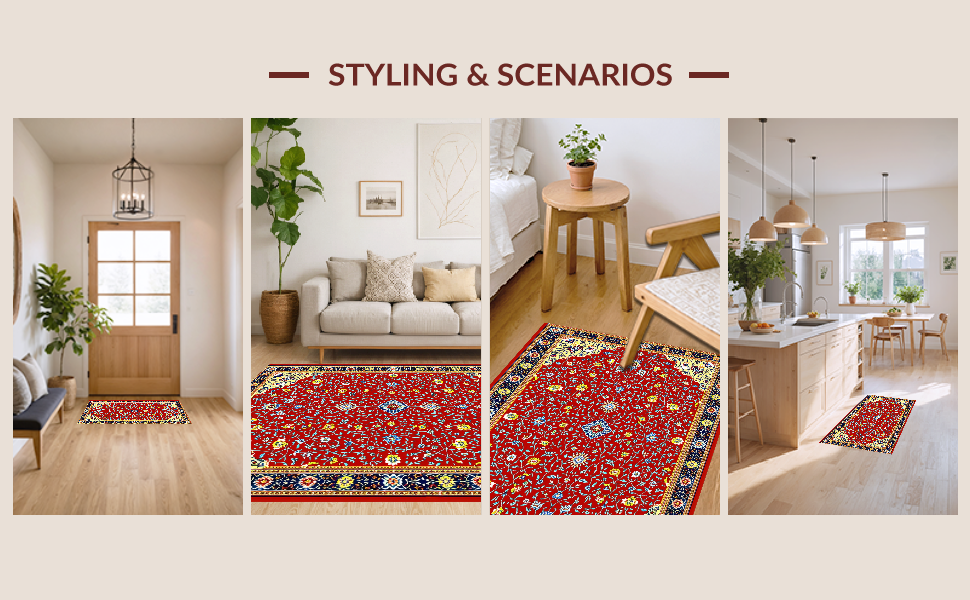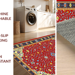 Ultra Soft Area Rug, Non Slip, Stain Resistant, Washable Area Rugs for Living Room, Bedroom, Artful Vintage Floral Display(Red) Overview: