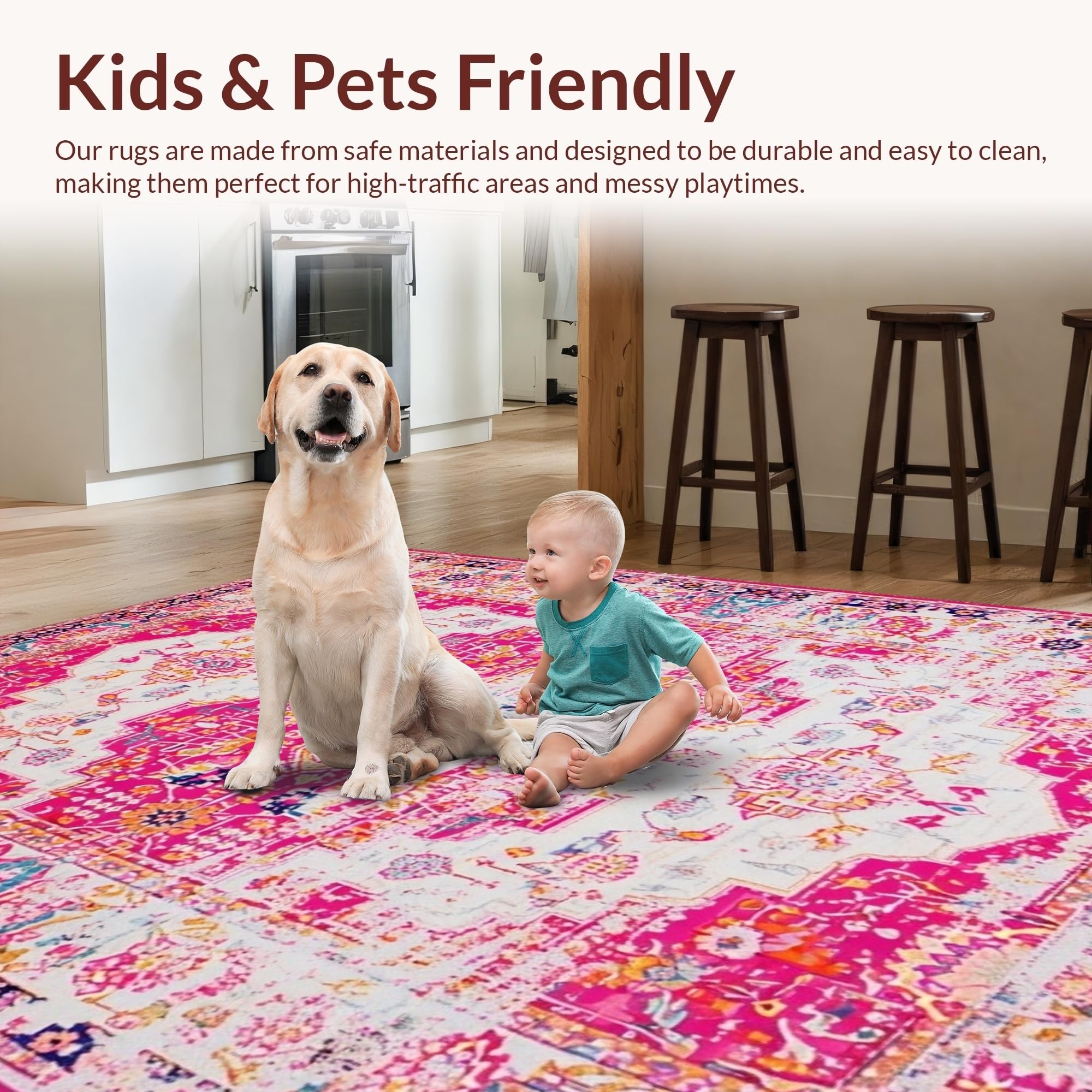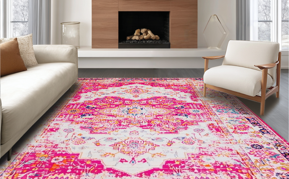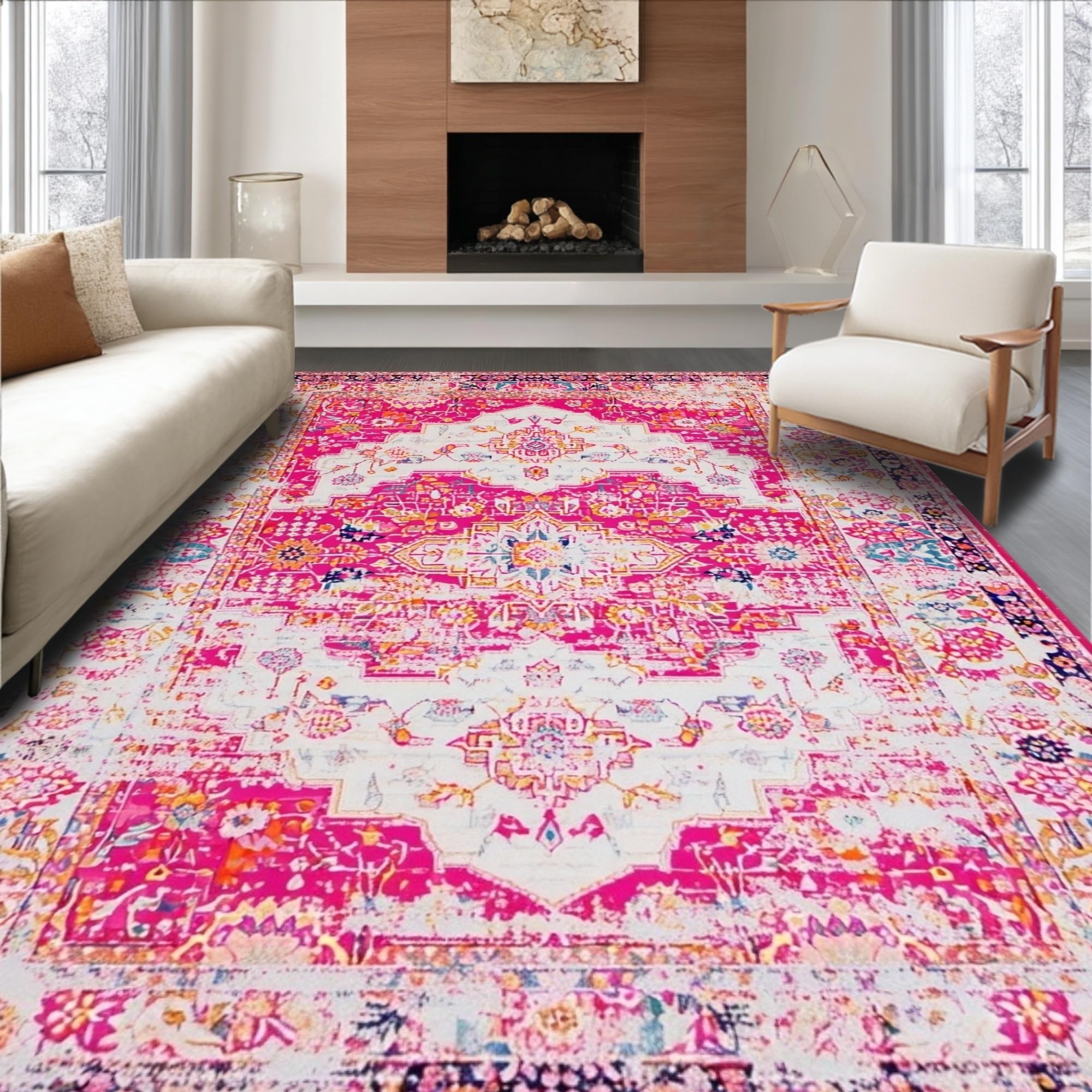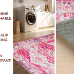 Ultra Soft Area Rug, Non Slip, Stain Resistant, Washable Area Rugs for Living Room, Bedroom, Artful Vintage Floral Fusion(Pink) Overview: