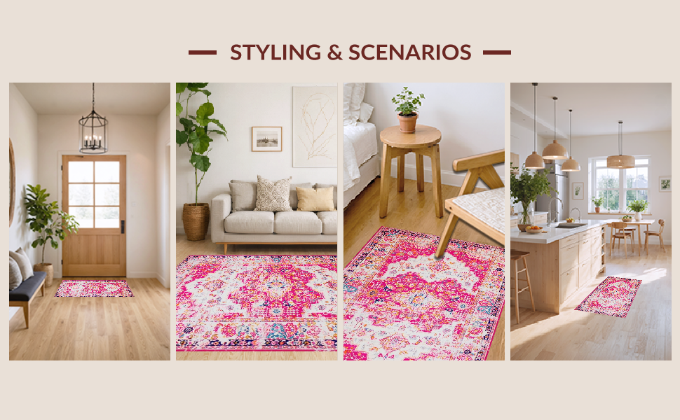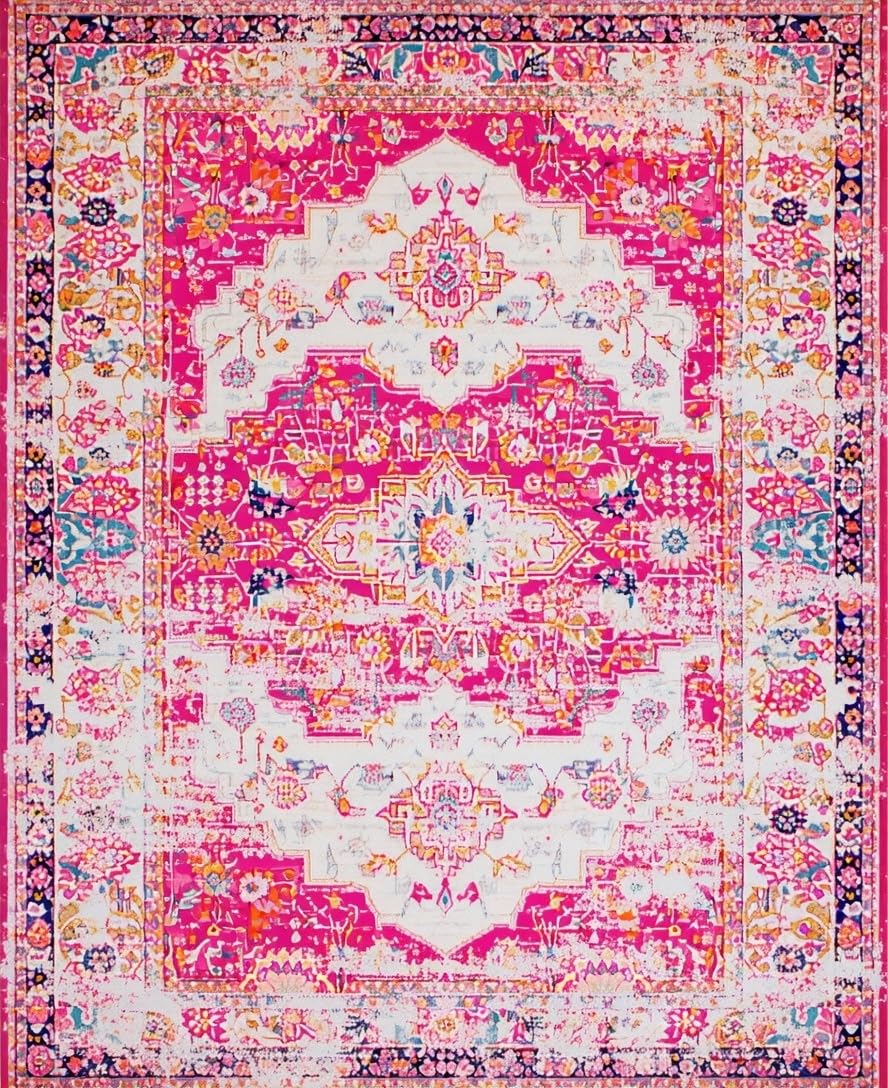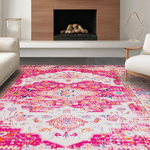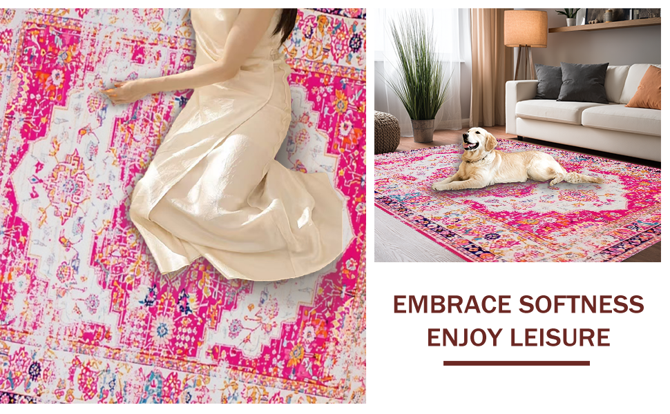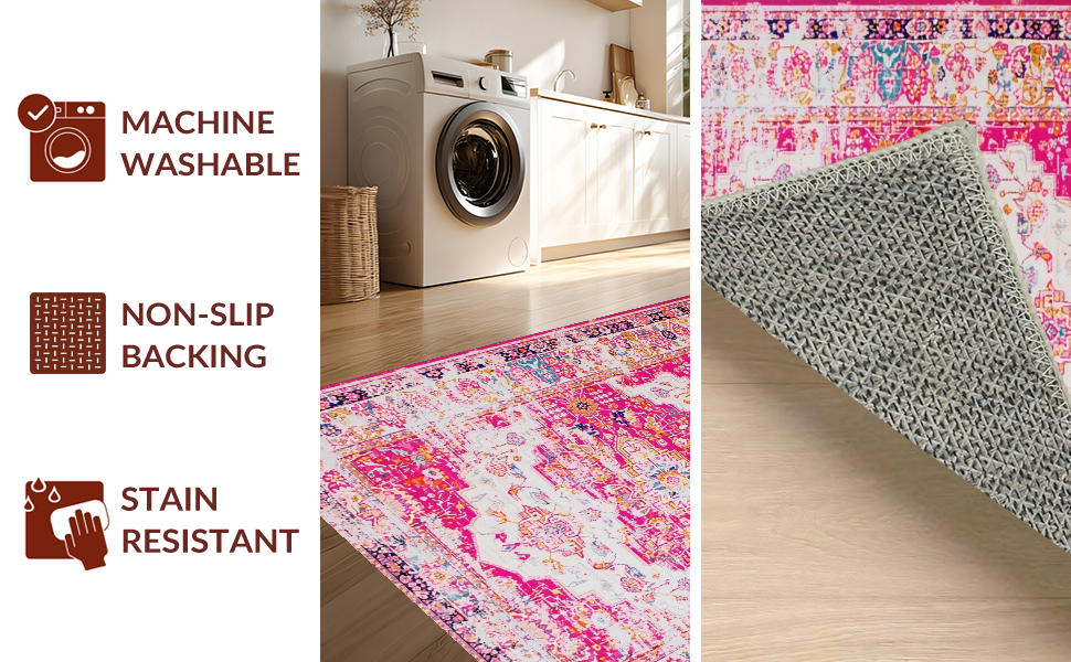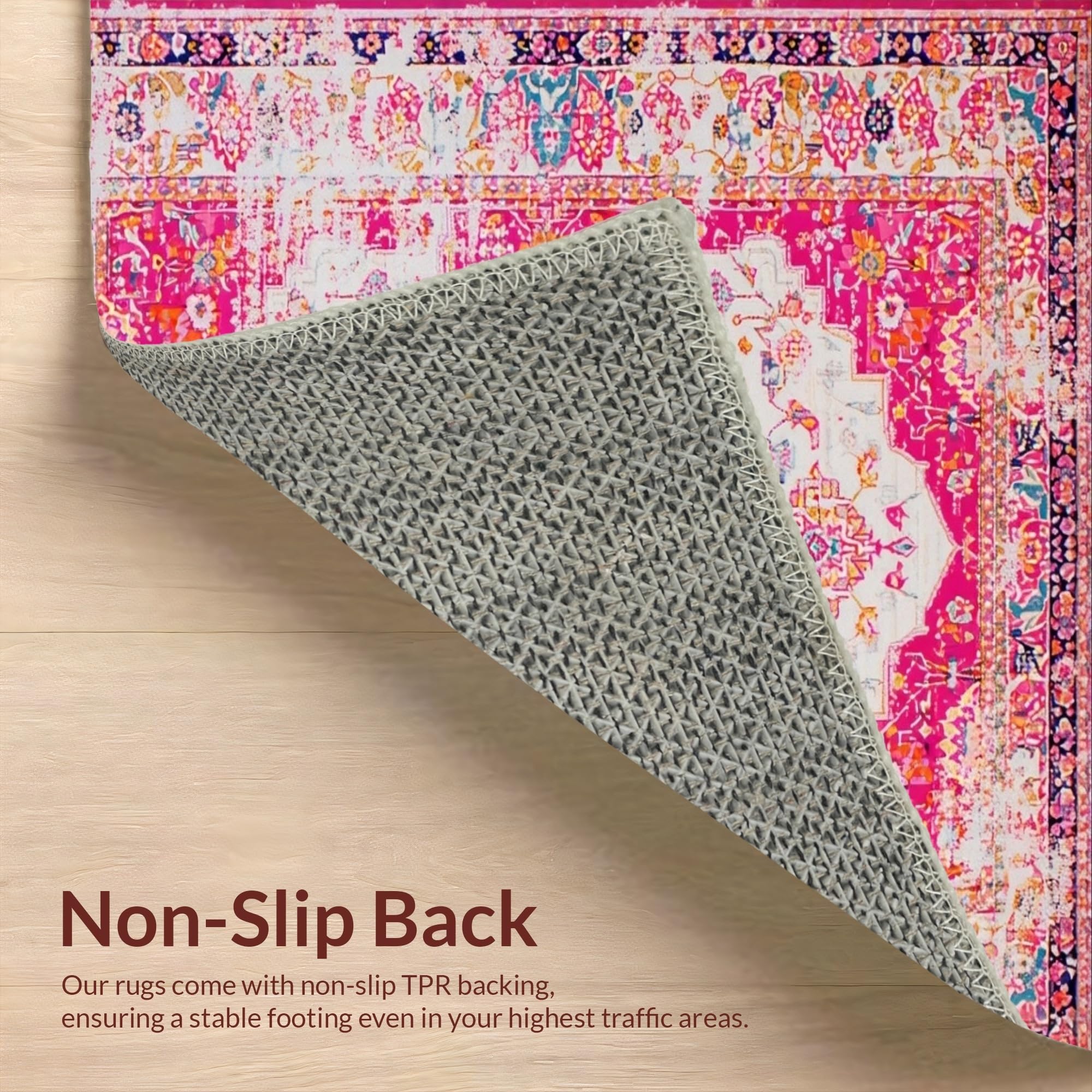 Ultra Soft Area Rug, Non Slip, Stain Resistant, Washable Area Rugs for Living Room, Bedroom, Artful Vintage Floral Fusion(Pink) Overview: