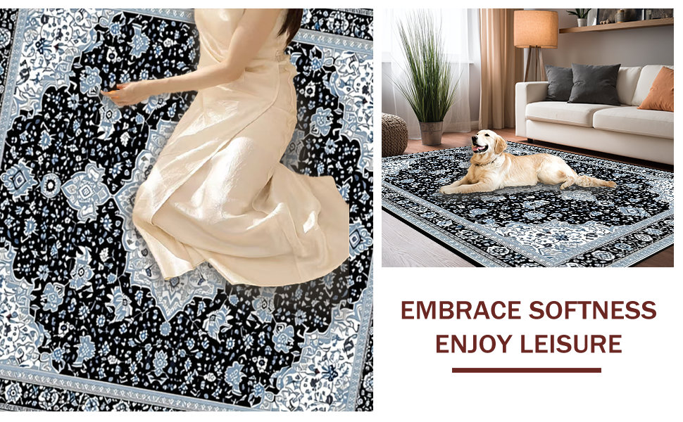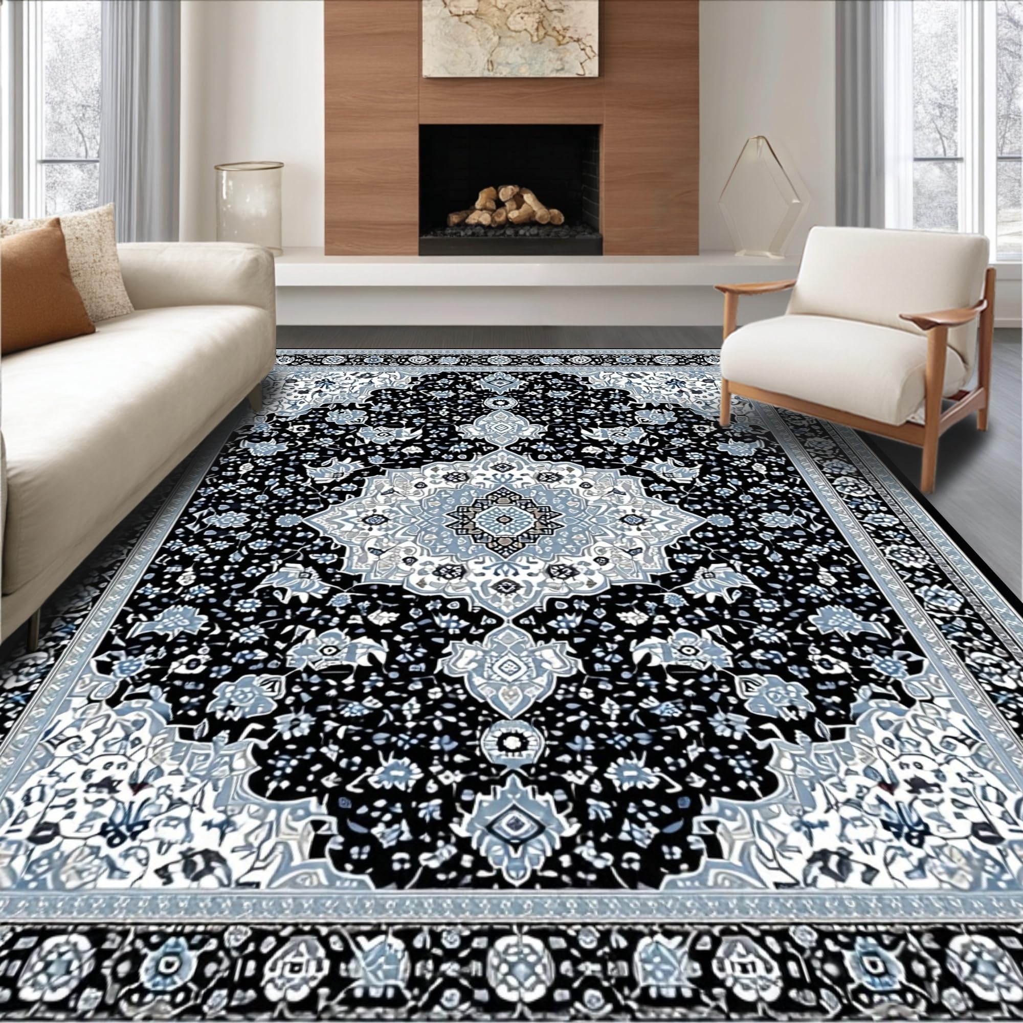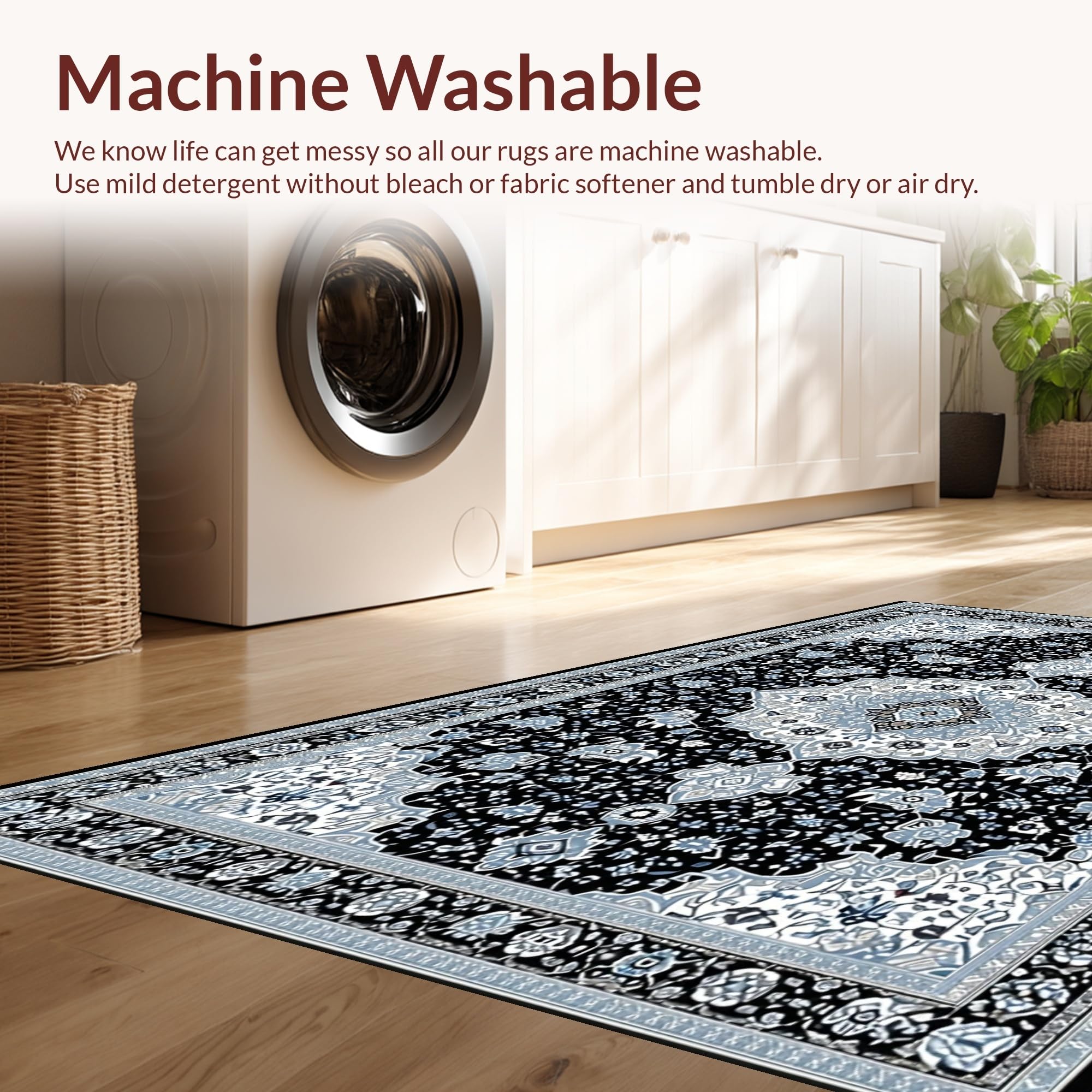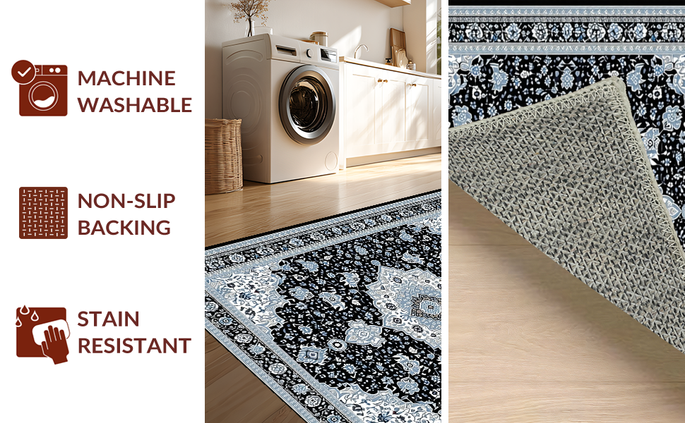 Ultra Soft Area Rug, Non Slip, Stain Resistant, Washable Area Rugs for Living Room, Bedroom, Artful Vintage Oriental Elegance(Black) Overview: