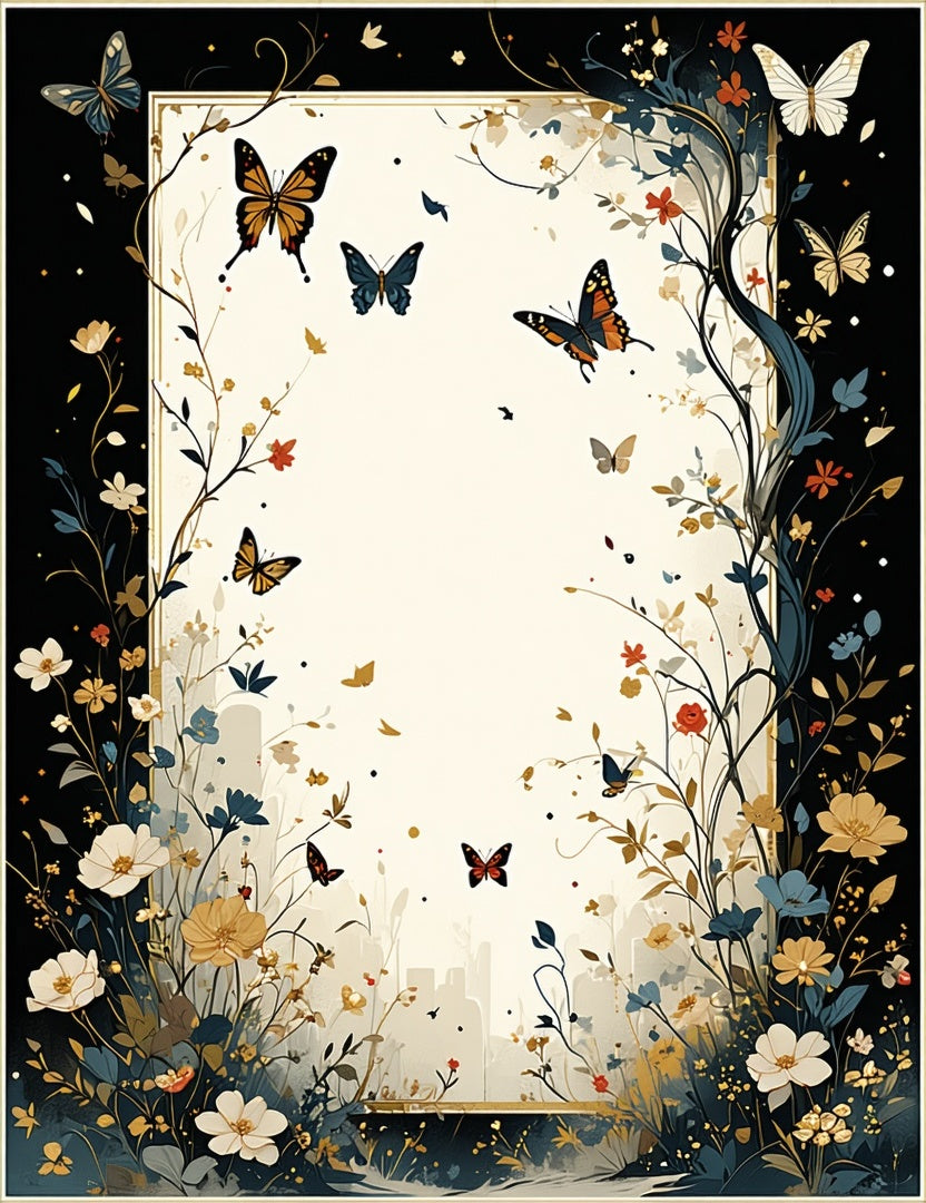 Artisan Black Boho with Fantastical Botanical and Moth Accents(Ivory)