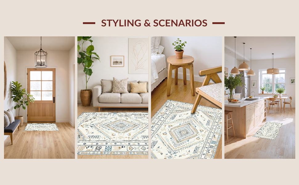 Ultra Soft Area Rug, Non Slip, Stain Resistant, Washable Area Rugs for Living Room, Bedroom, Artisan Crafted Floral Accent(Beige) Overview: