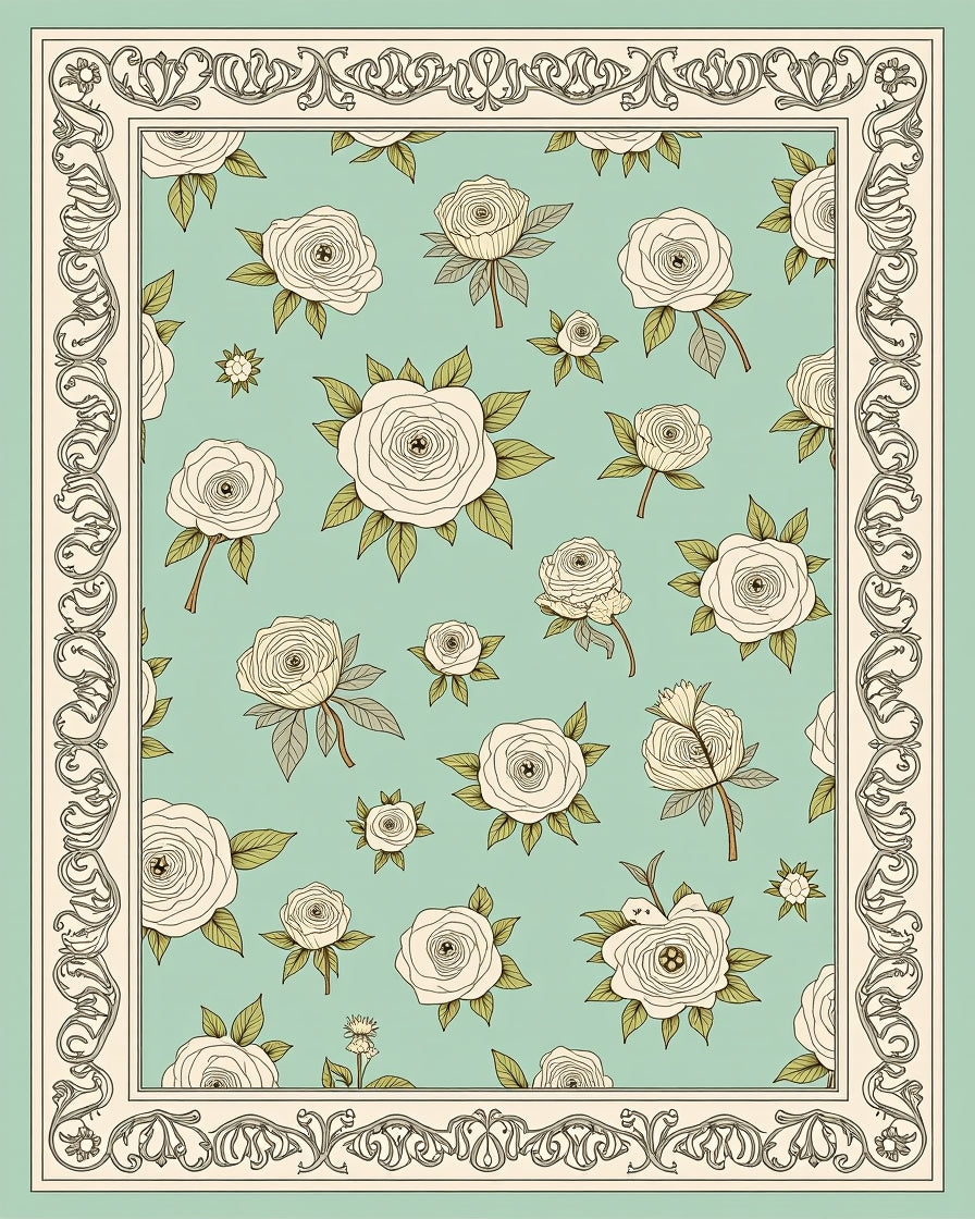 Artisan Crafted Floral Pathway with Vintage Charm Design(Green)