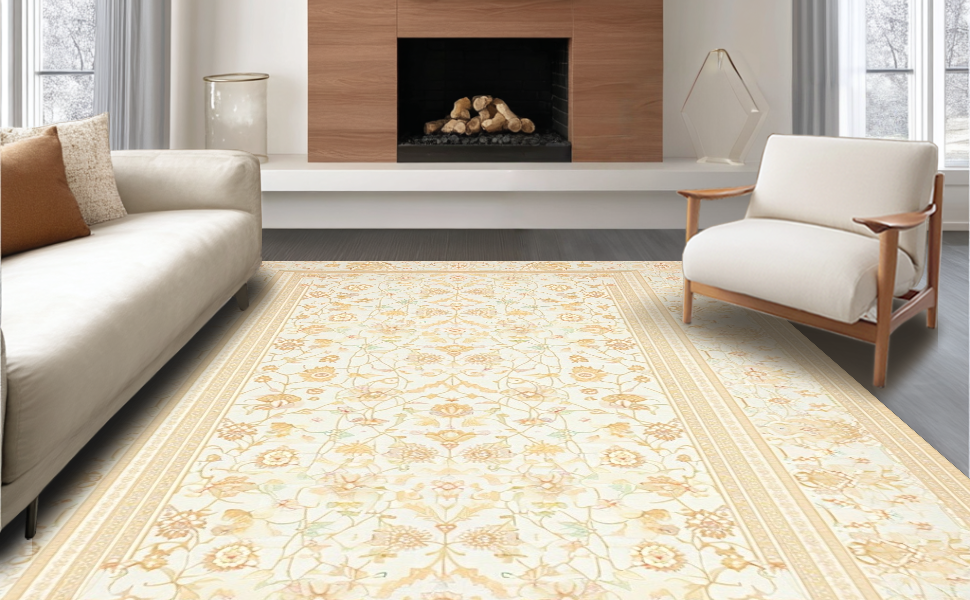 Ultra Soft Area Rug, Non Slip, Stain Resistant, Washable Area Rugs for Living Room, Bedroom, Artisan Crafted Linear Symmetry(Beige) Overview: