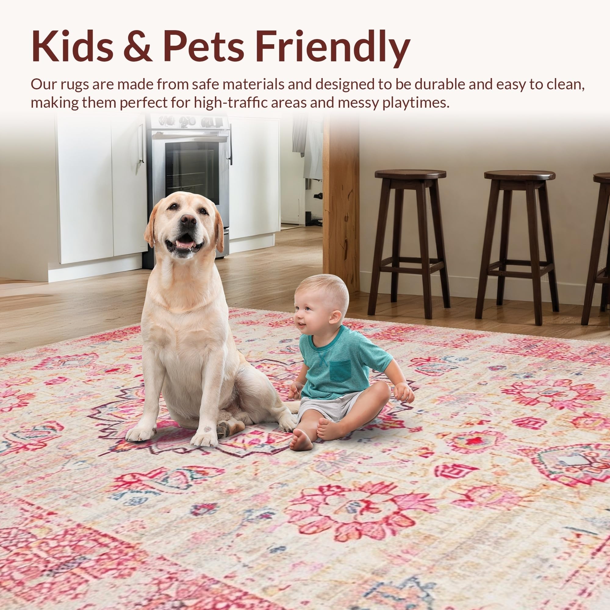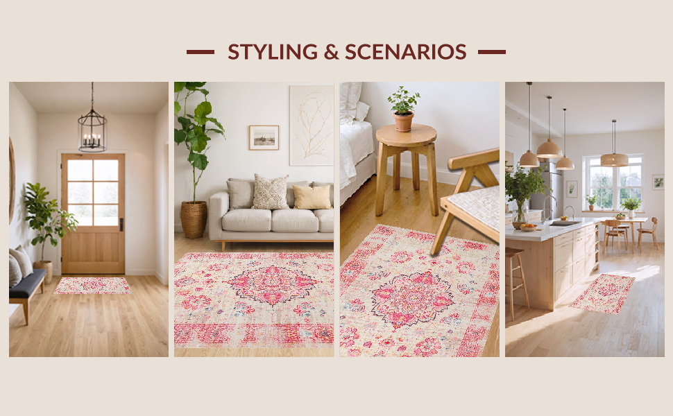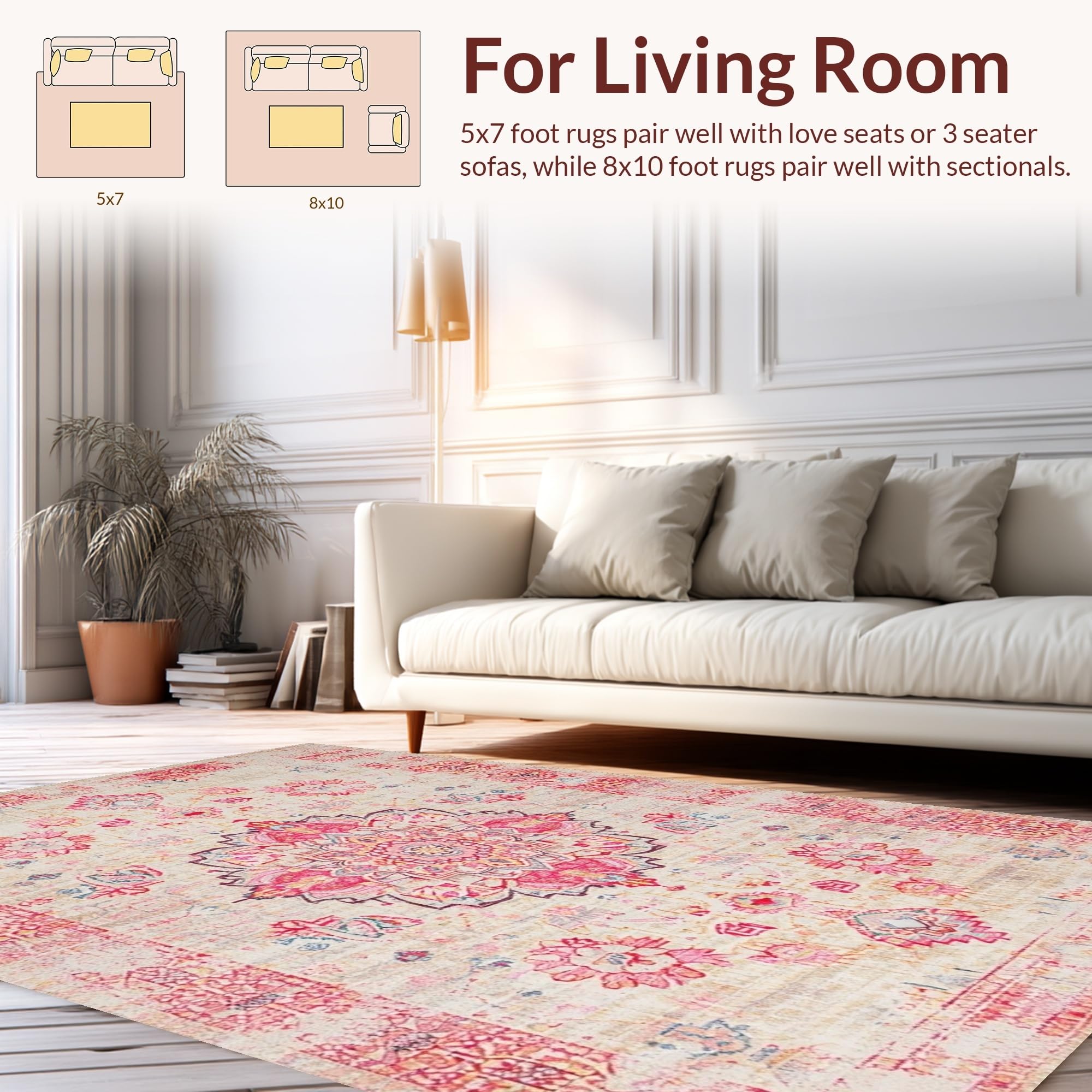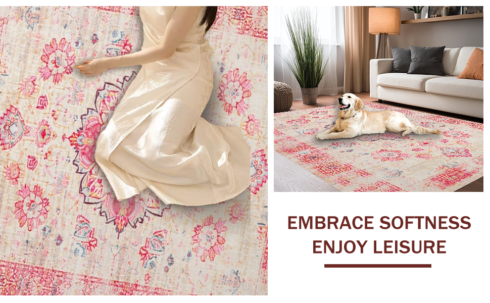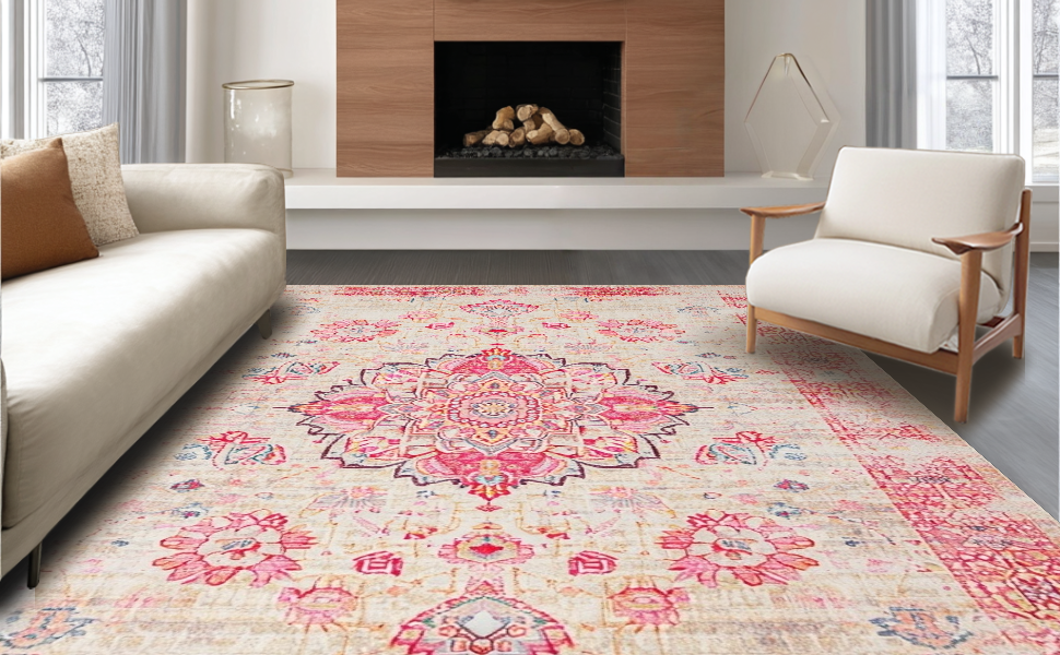 Ultra Soft Area Rug, Non Slip, Stain Resistant, Washable Area Rugs for Living Room, Bedroom, Artisan Crafted Vintage Elements(Ivory) Overview: