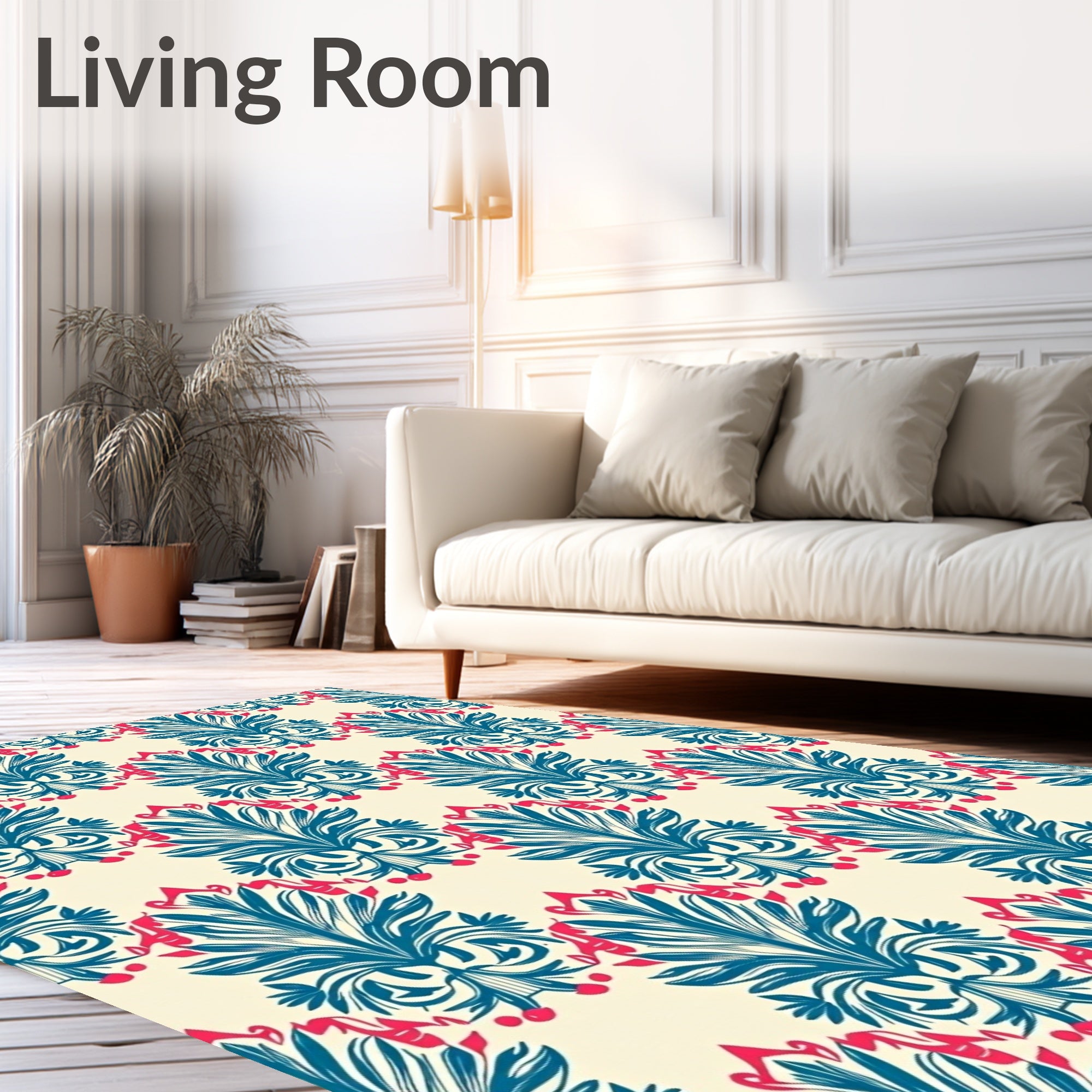 Ultra Soft Area Rug, Non Slip, Stain Resistant, Washable Area Rugs for Living Room, Bedroom, Artisan Damask Mosaic with Stylized Leaf Detailing(Ivory) Overview: