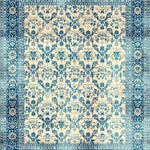 Artisan Distressed Blue Beige Latticework Vintage Botanical(Beige)