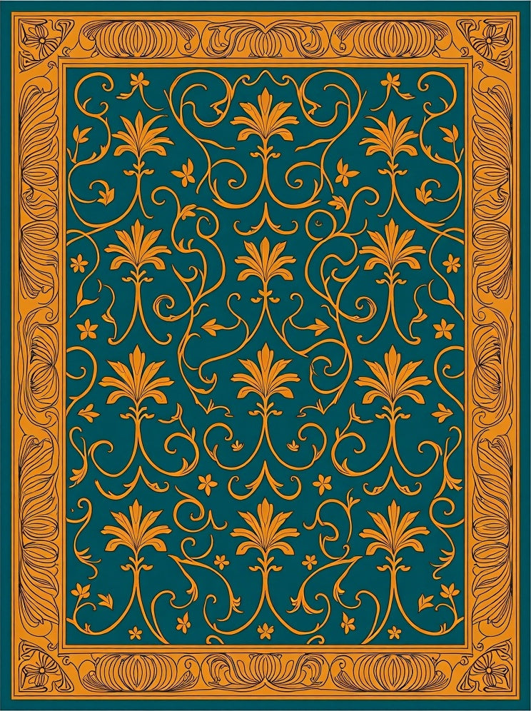 Artisan Floral Damask Vine Swirl Elegant Traditional Embellishment(Blue)