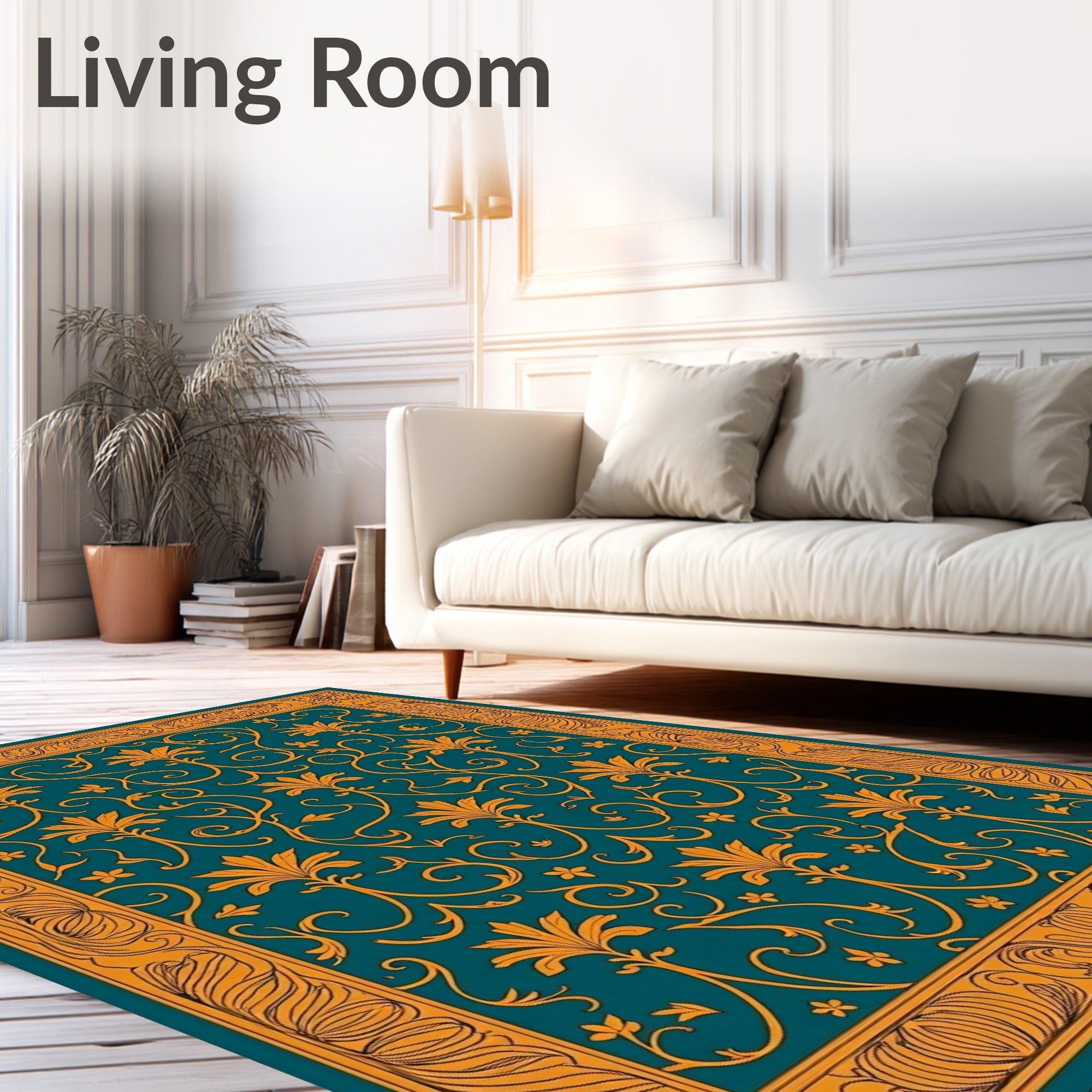 Ultra Soft Area Rug, Non Slip, Stain Resistant, Washable Area Rugs for Living Room, Bedroom, Artisan Floral Damask Vine Swirl Elegant Traditional Embellishment(Blue) Overview: