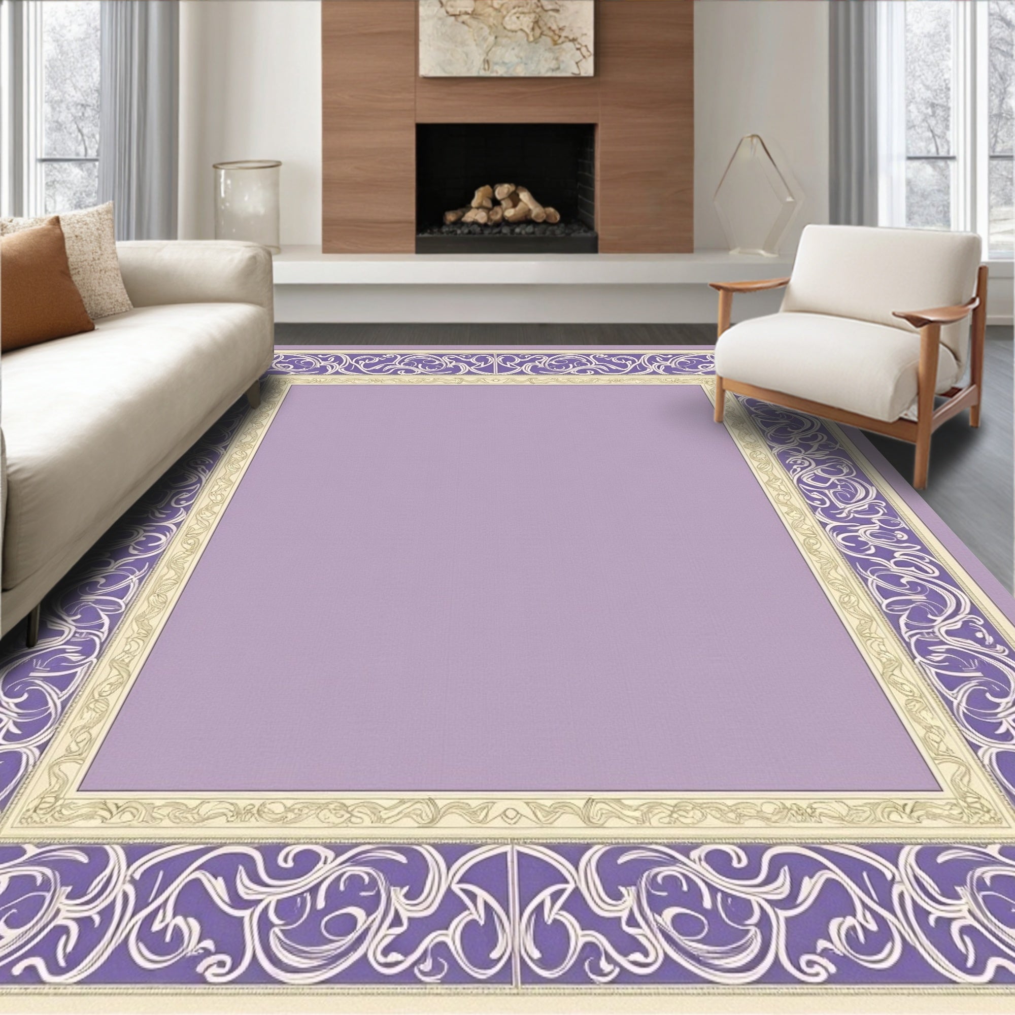Ultra Soft Area Rug, Non Slip, Stain Resistant, Washable Area Rugs for Living Room, Bedroom, Artisan Heritage Featuring Faded Baroque Filigree Motifs(Purple) Overview: